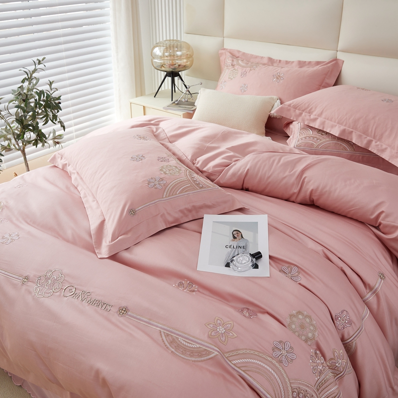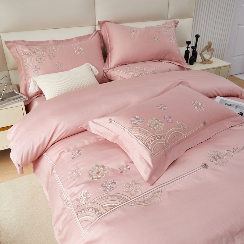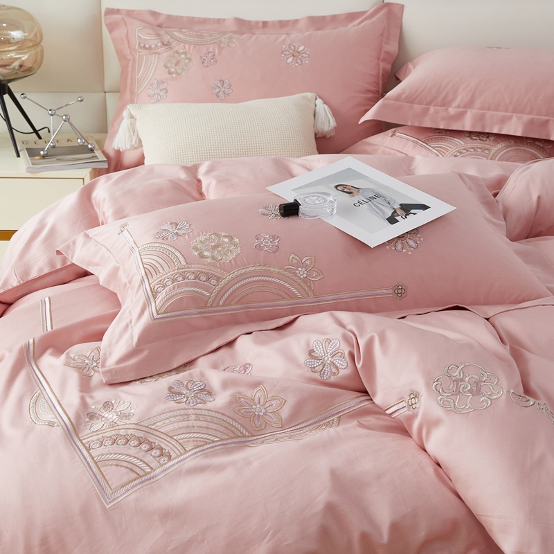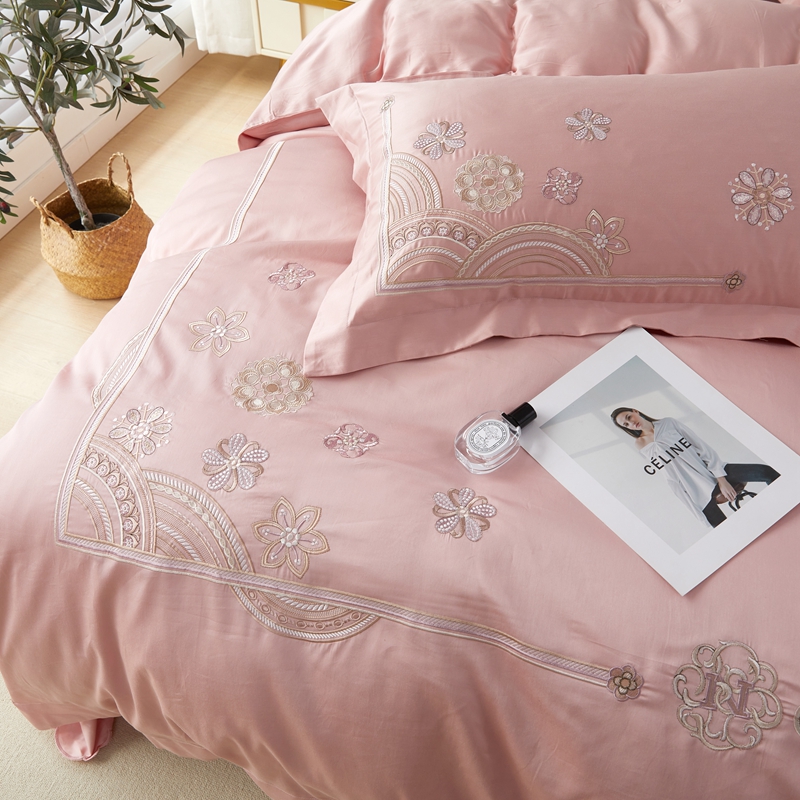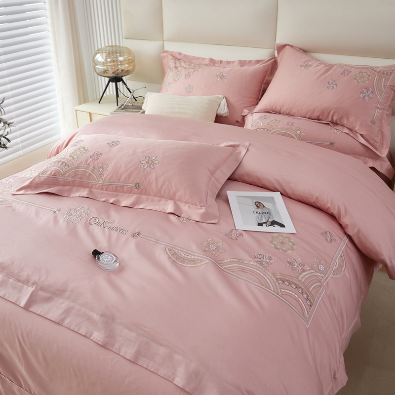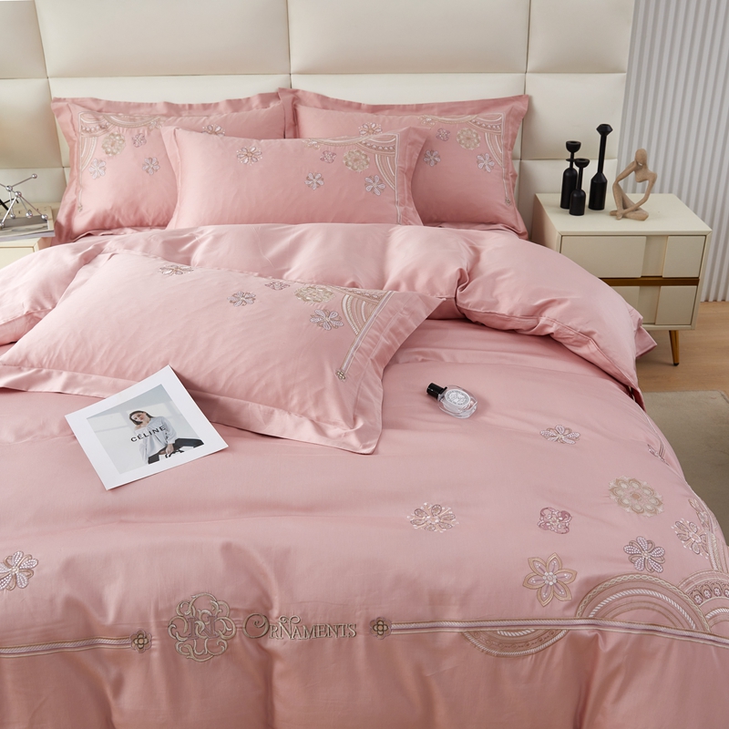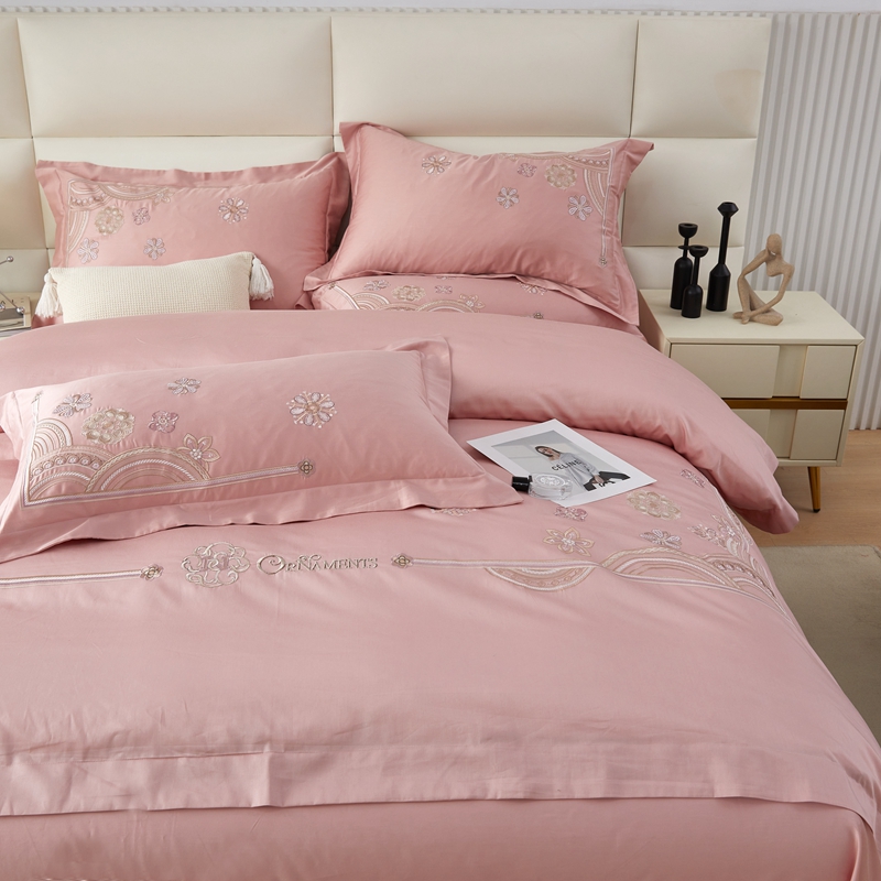 星尚 2023新款100支长绒棉绣花四件套-慕颜 粉豆沙