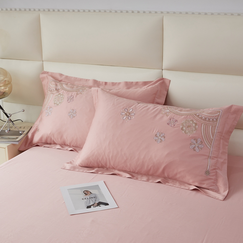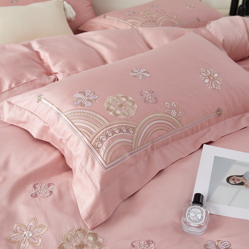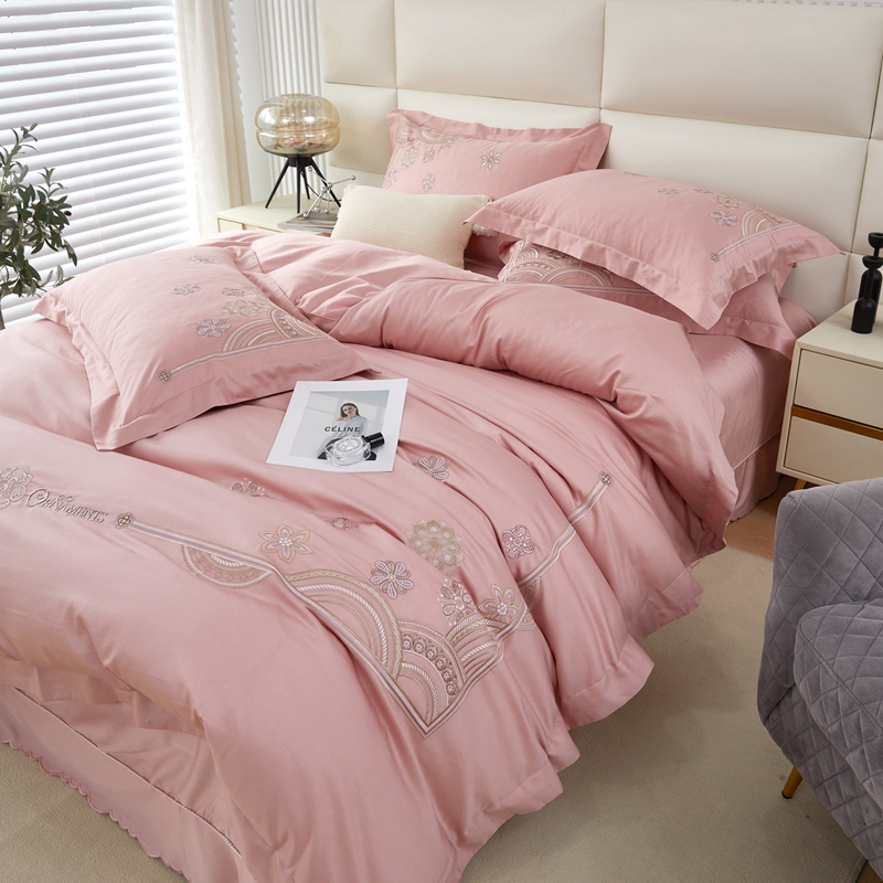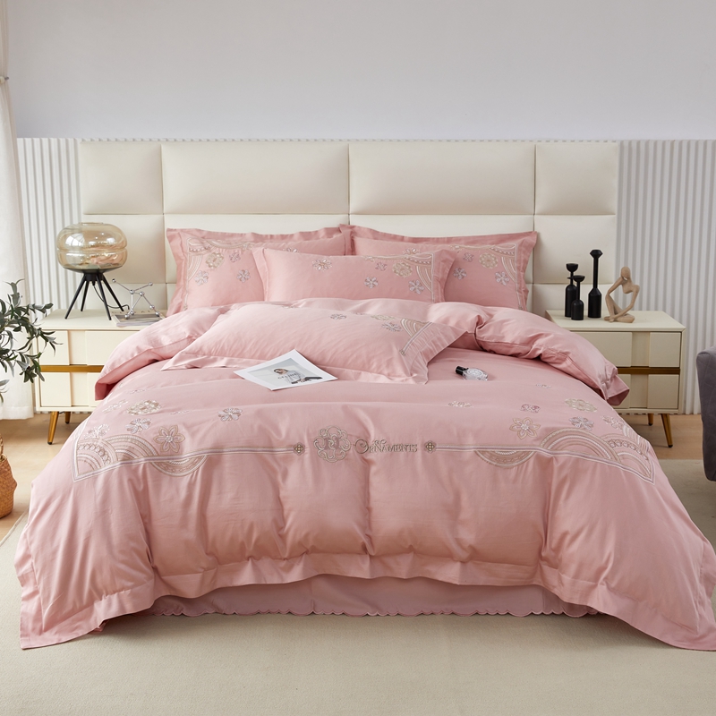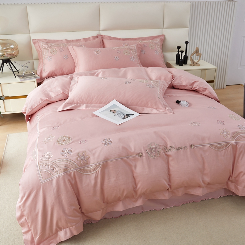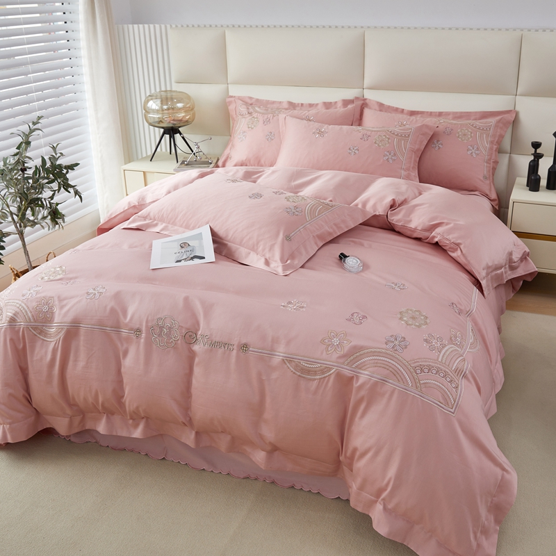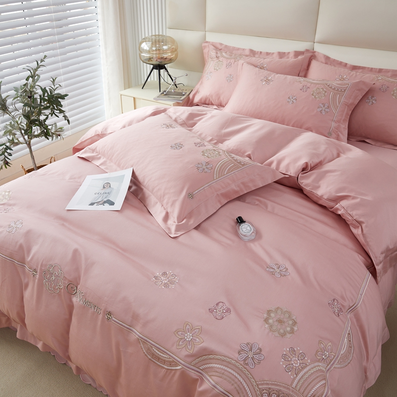 星尚 2023新款100支长绒棉绣花四件套-慕颜 粉豆沙