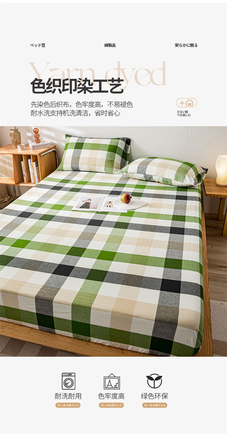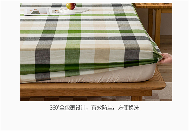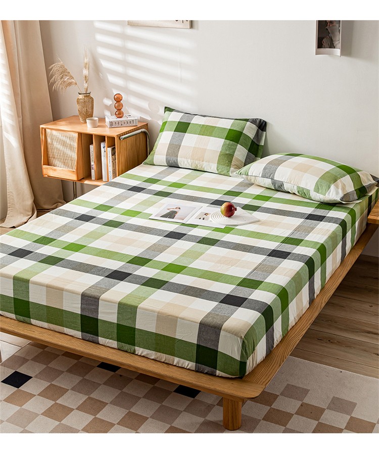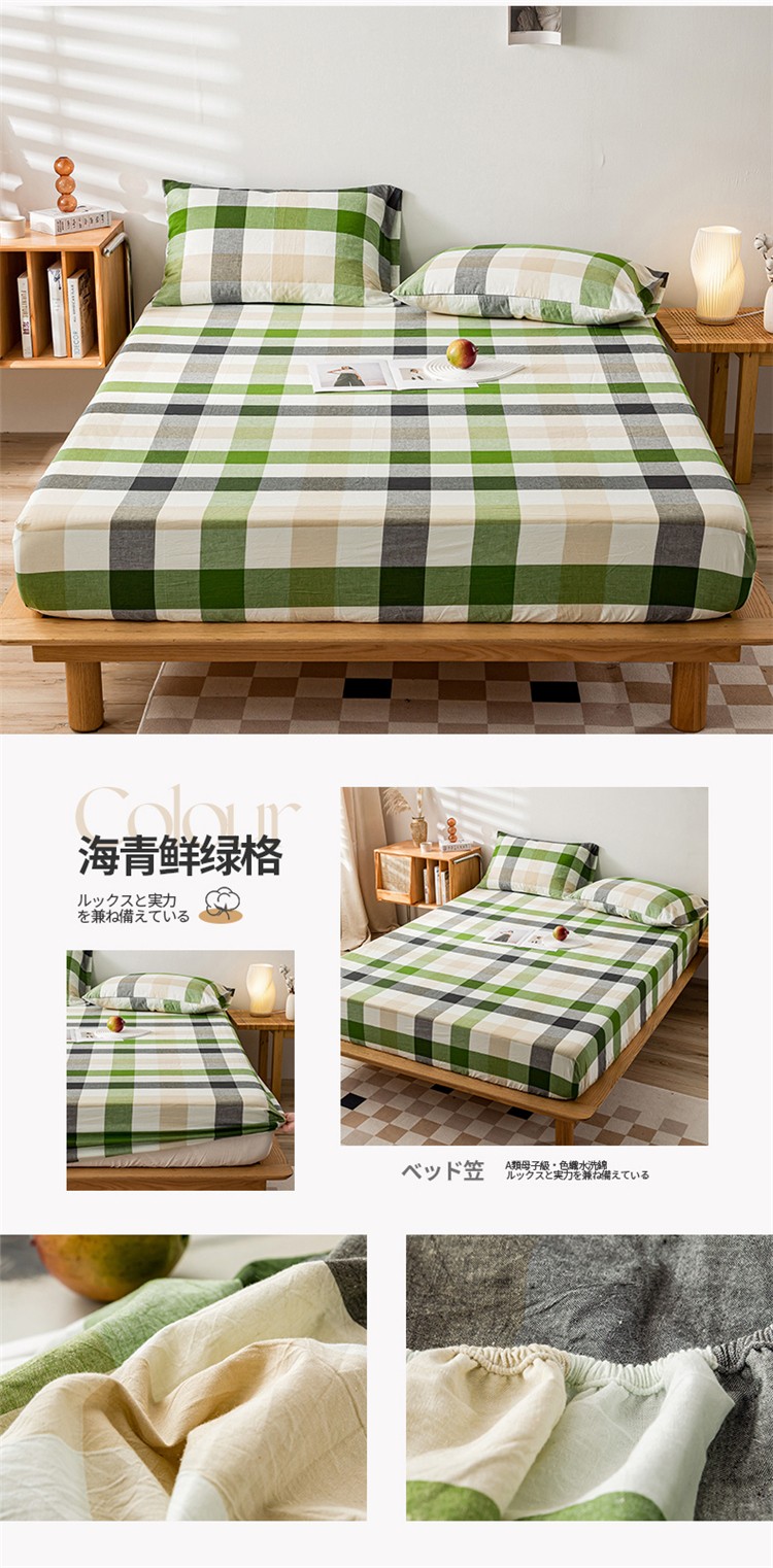 九沐良品 新款A类色织水洗棉床笠 海青鲜绿格