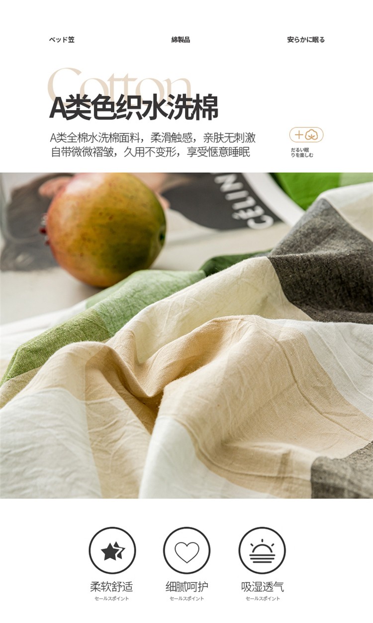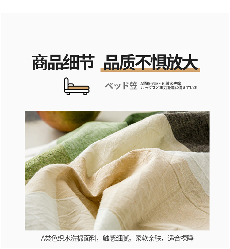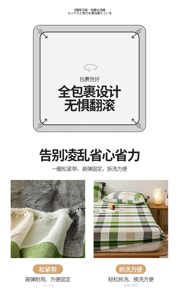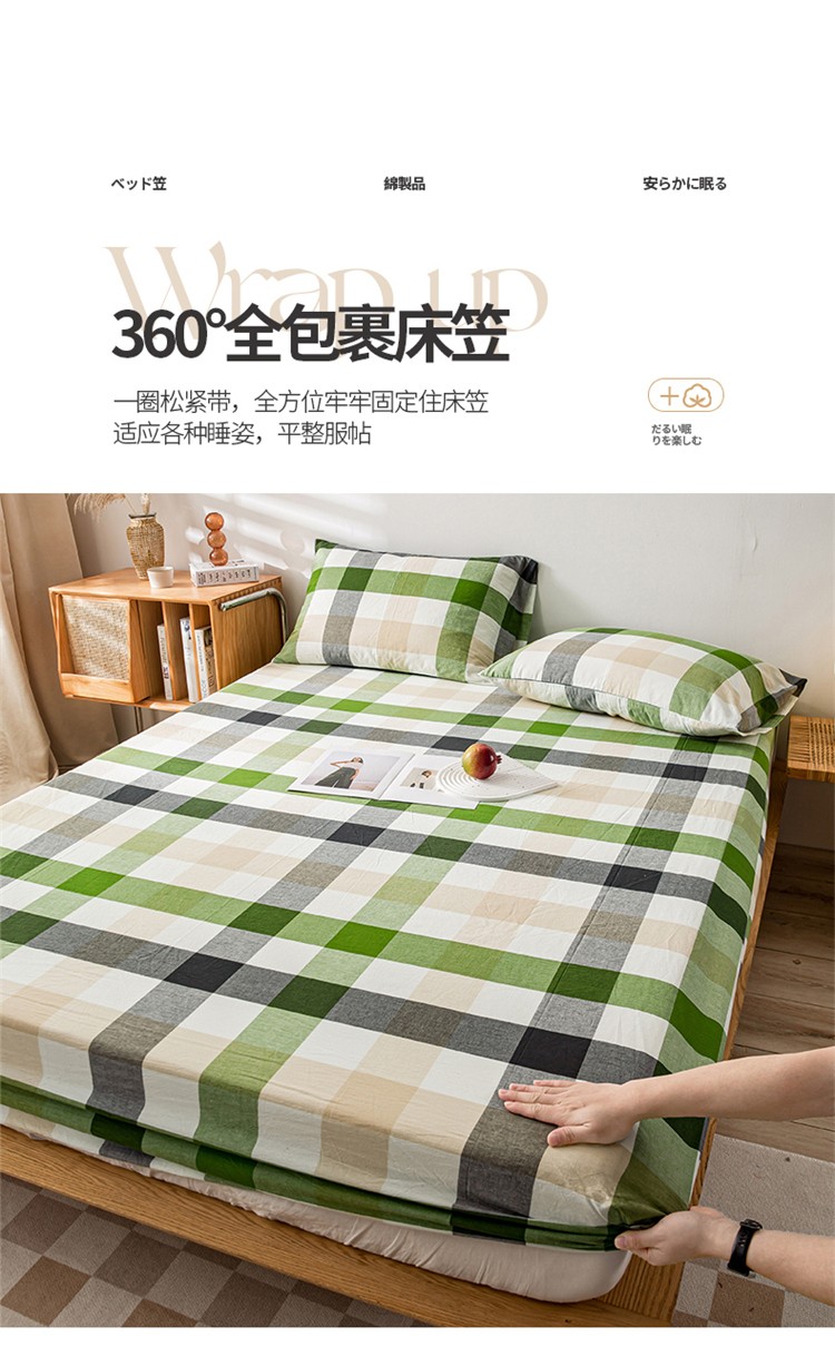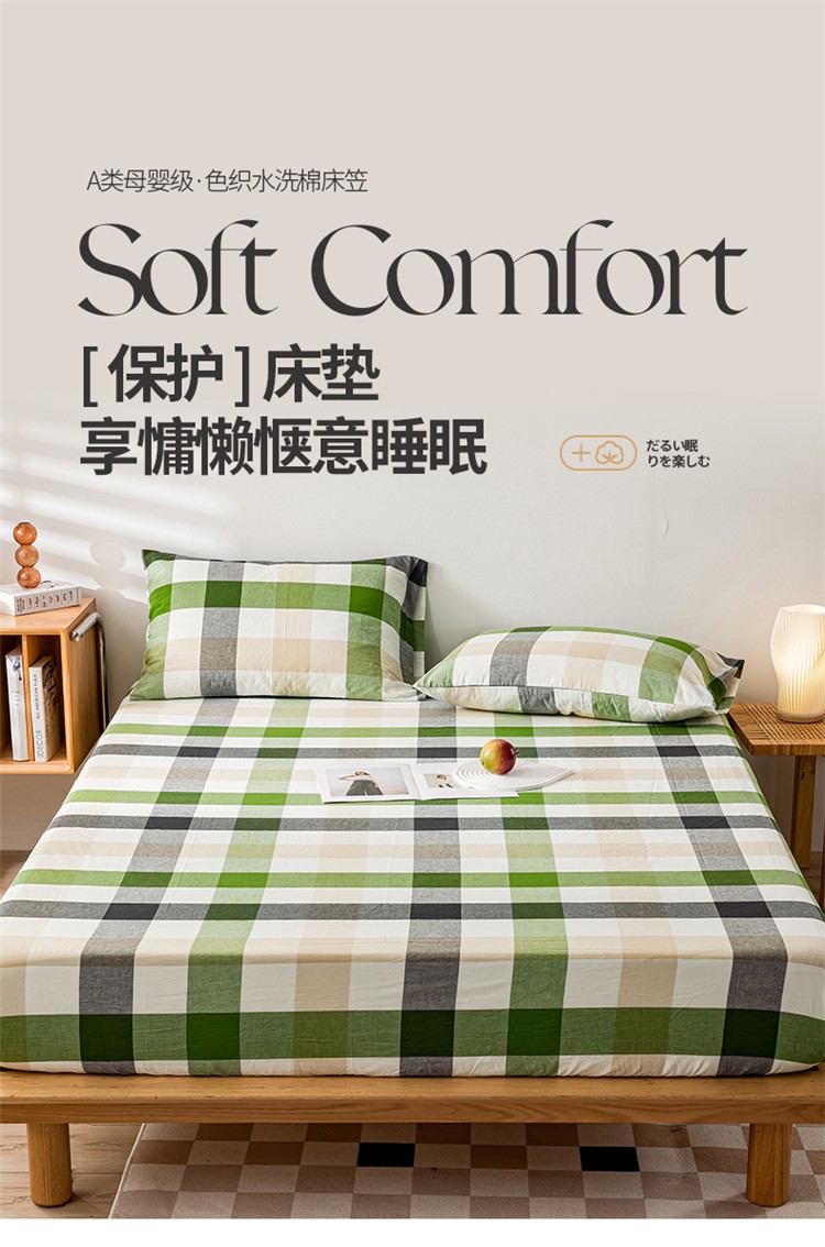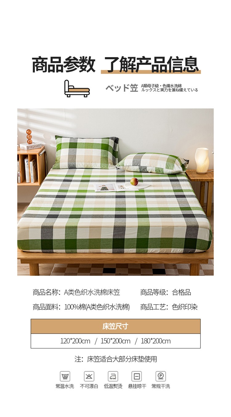 • 91家纺网 家纺一手货源 找家纺 九沐良品 新款A类色织水洗棉床笠 海青鲜绿格