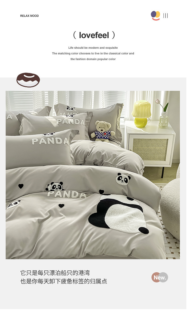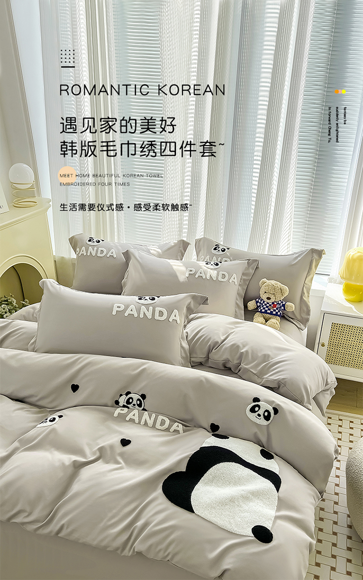 娜娜 2023新款韩版毛巾绣四件套-熊猫 熊猫嘟嘟-灰
