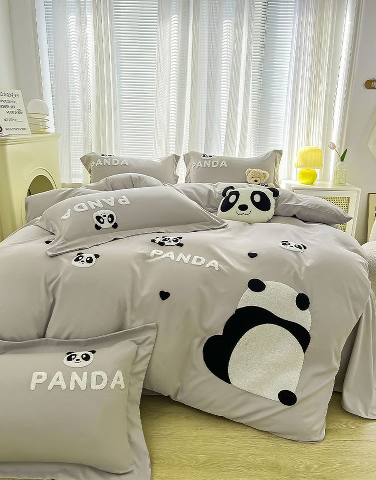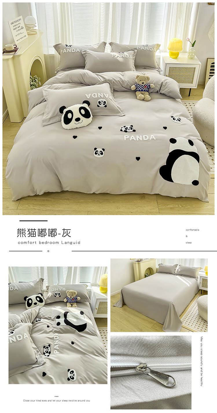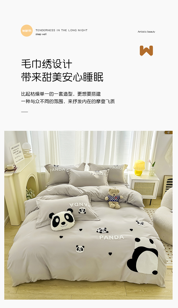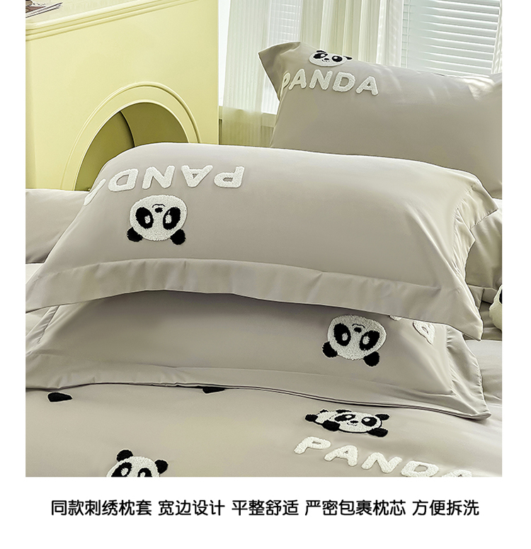商品名称:娜娜 2023新款韩版毛巾绣四件套-熊猫 熊猫嘟嘟-灰