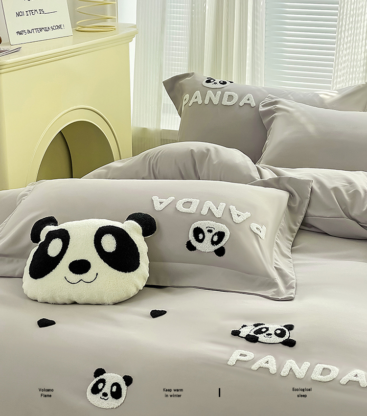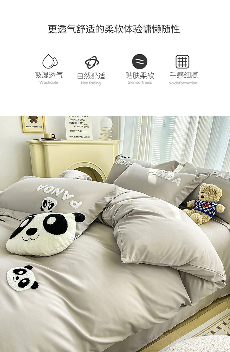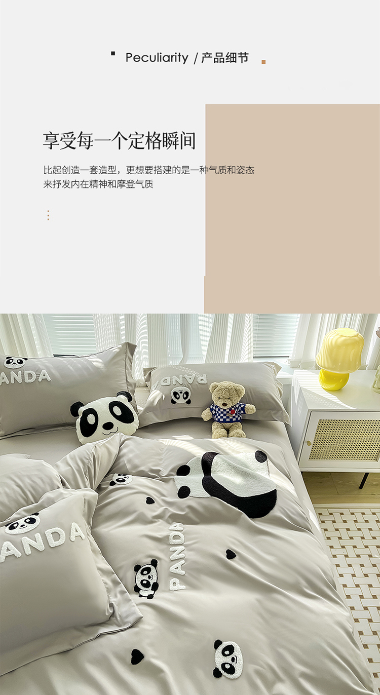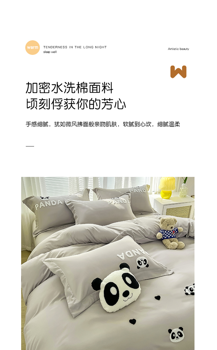 商品名称:娜娜 2023新款韩版毛巾绣四件套-熊猫 熊猫嘟嘟-灰