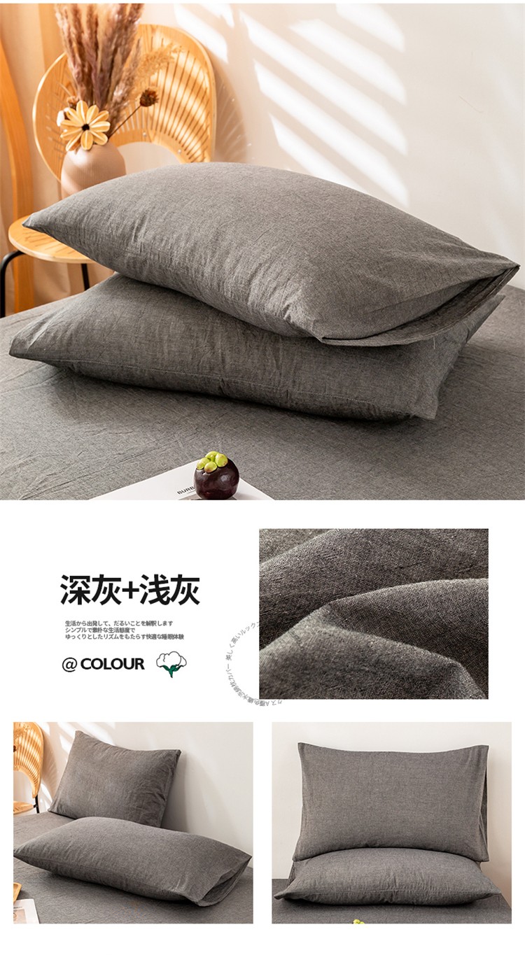 九沐良品 新款A类色织水洗棉四件套-单品枕套 深灰+浅灰