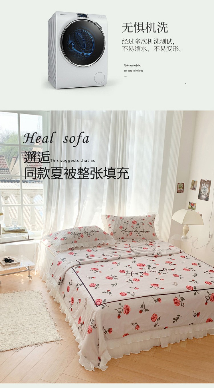 慕澄家纺 2024新款时尚印花泡泡棉花边夏被夏凉被空调被 夏被-心语,夏被-心语