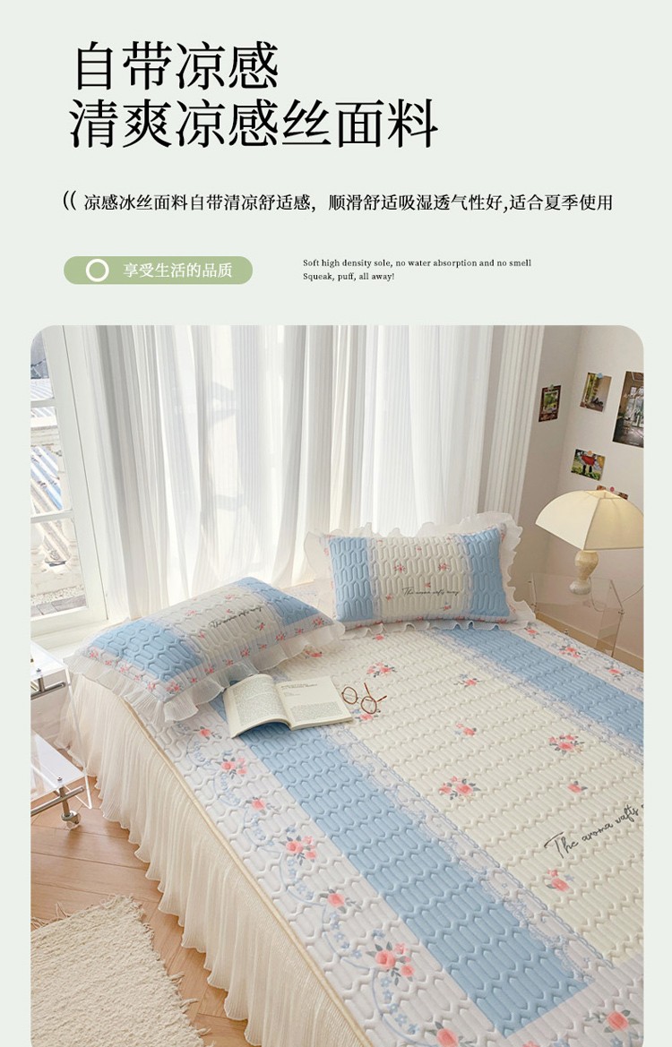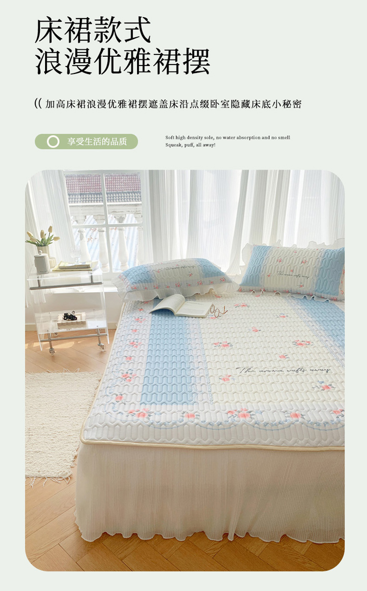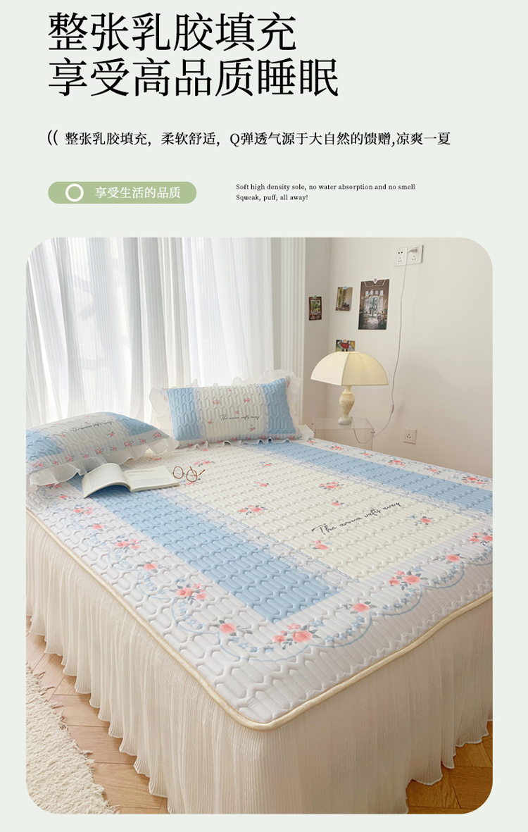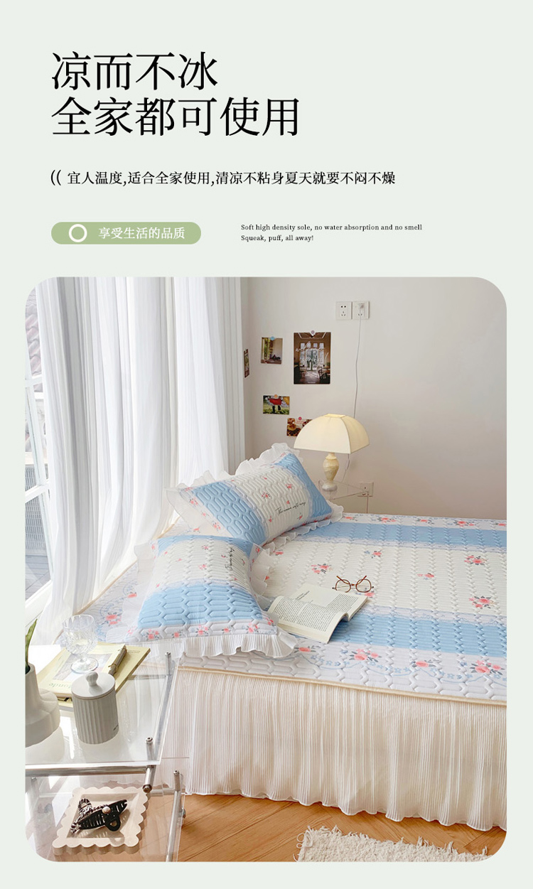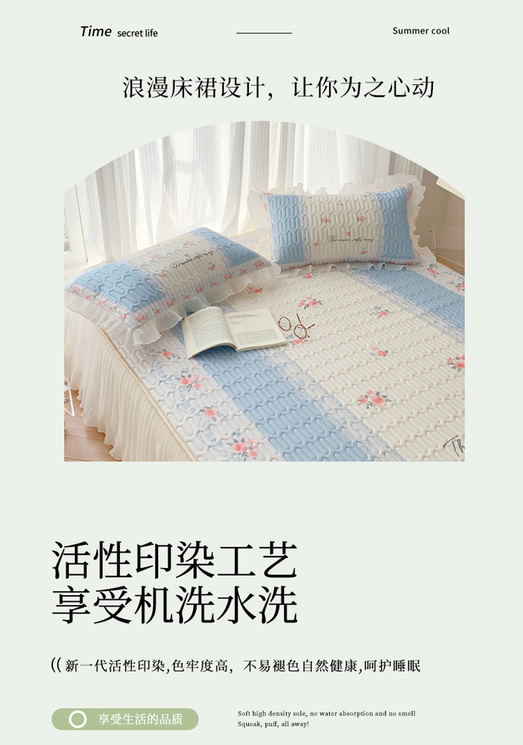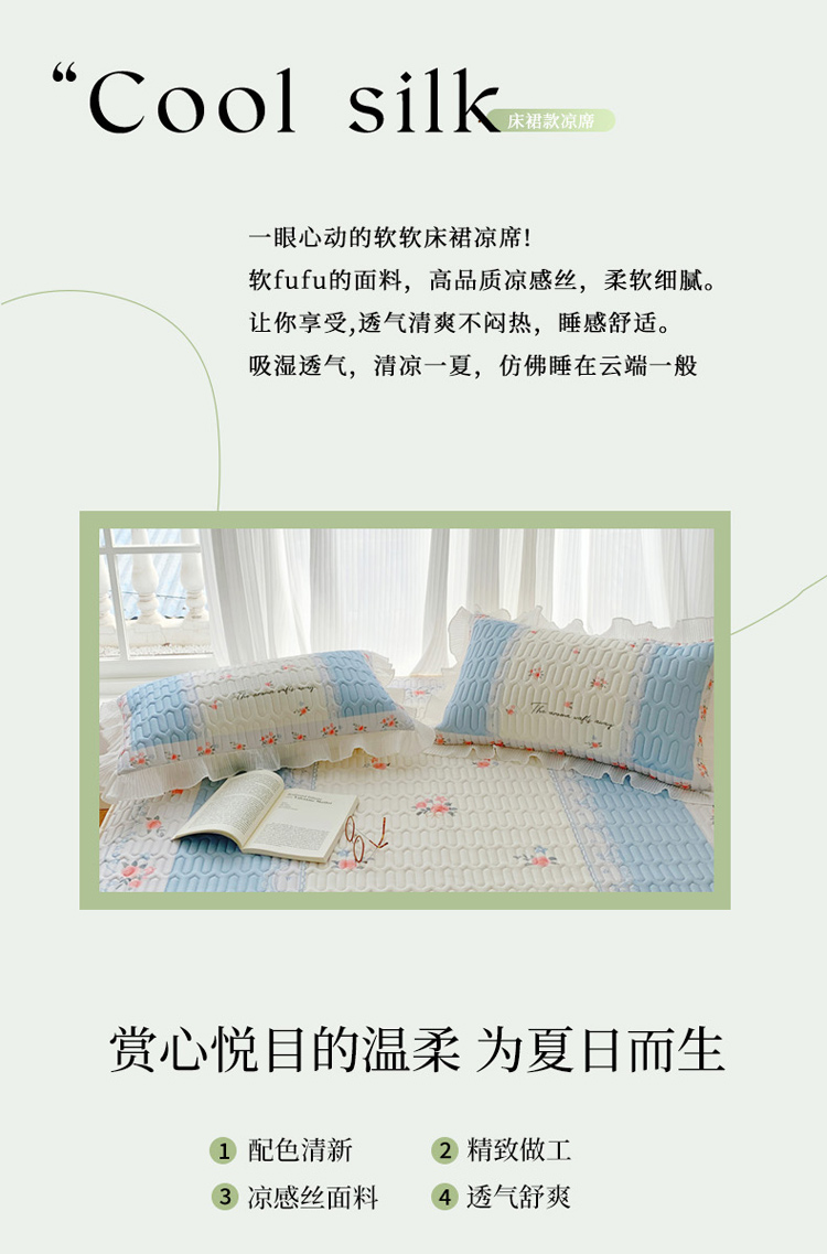商品名称:慕澄 2023新款大版雪纺床裙款乳胶凉席系列 床裙款-荼蘼花开