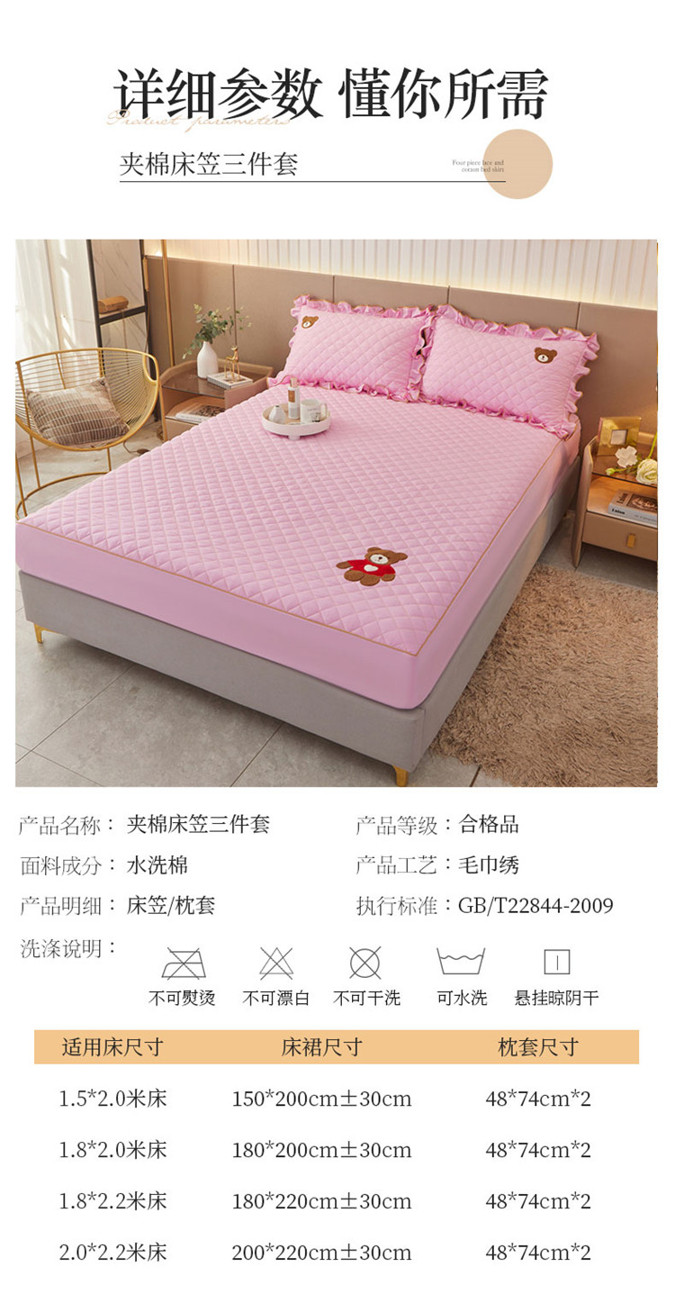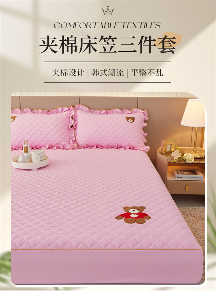 当前位置: 91家纺网 > 商品网购 > 床品套件 > 三件套 > 屹成家纺 2024年水洗棉毛巾绣款床笠三件套 粉红
