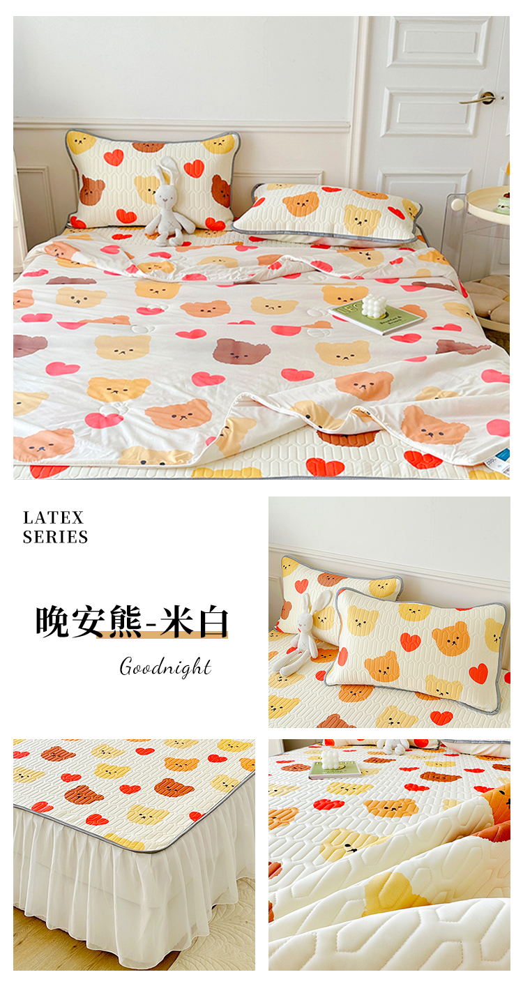 当前位置: 91家纺网 > 商品网购 > 床上用品 > 凉席 > 乳胶凉席 > 纽缦 2023新款乳胶床裙四件套 晚安熊-米白