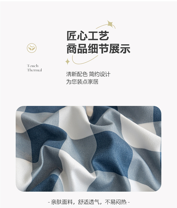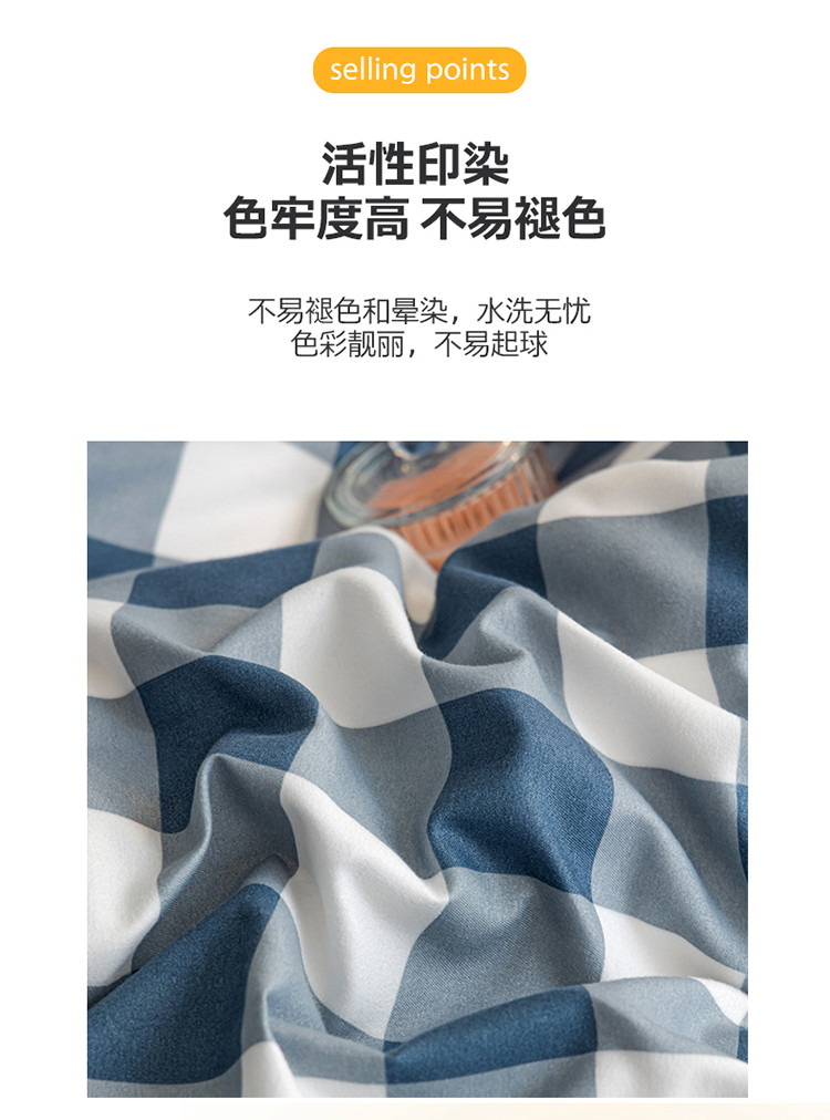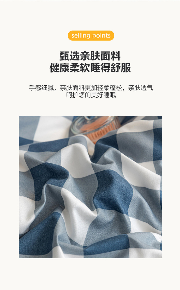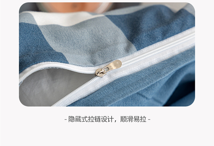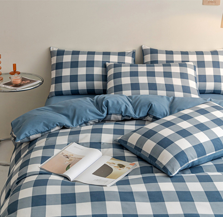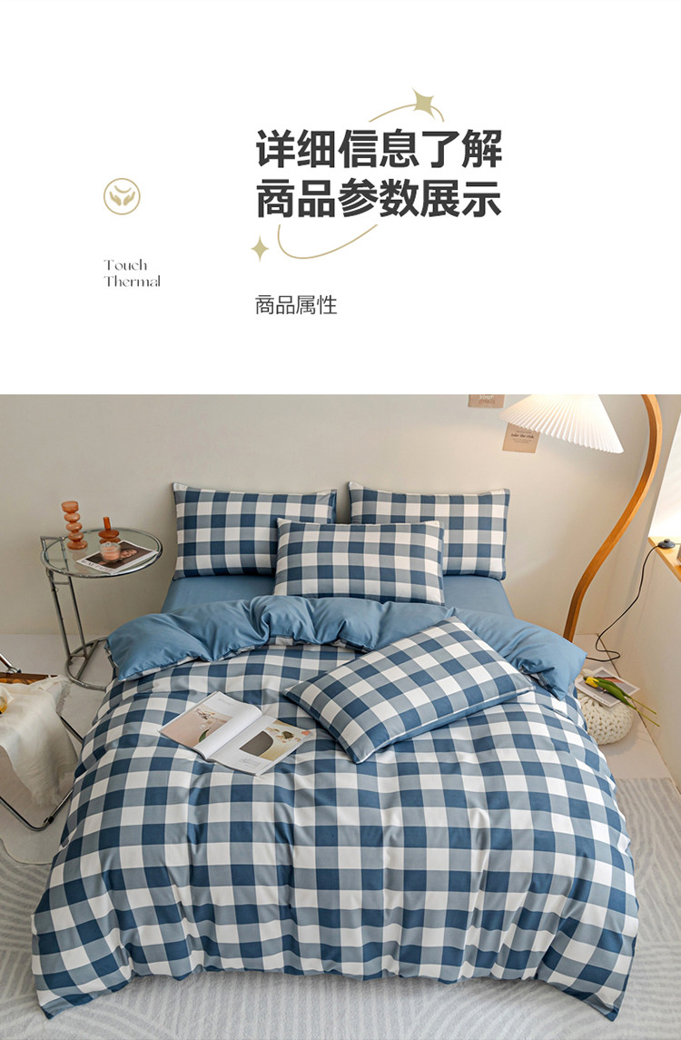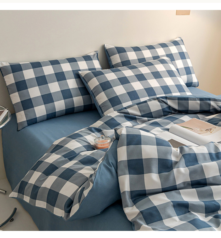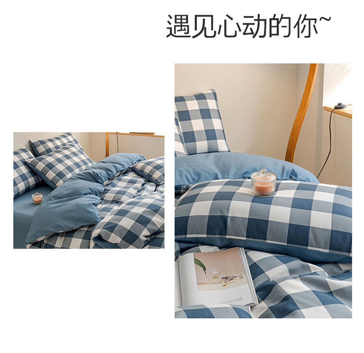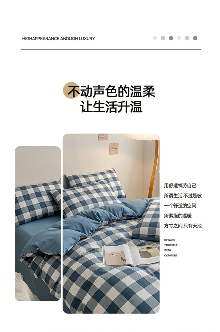 商品名称:米瑞娜 2024新款无印风四件套格子条纹水洗棉四件套 蓝白中格