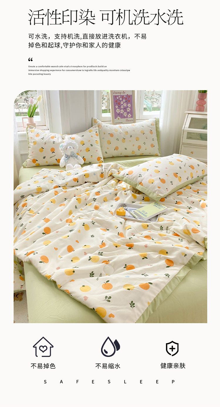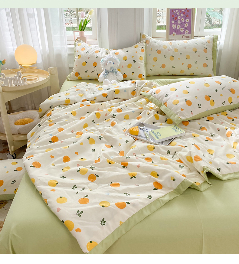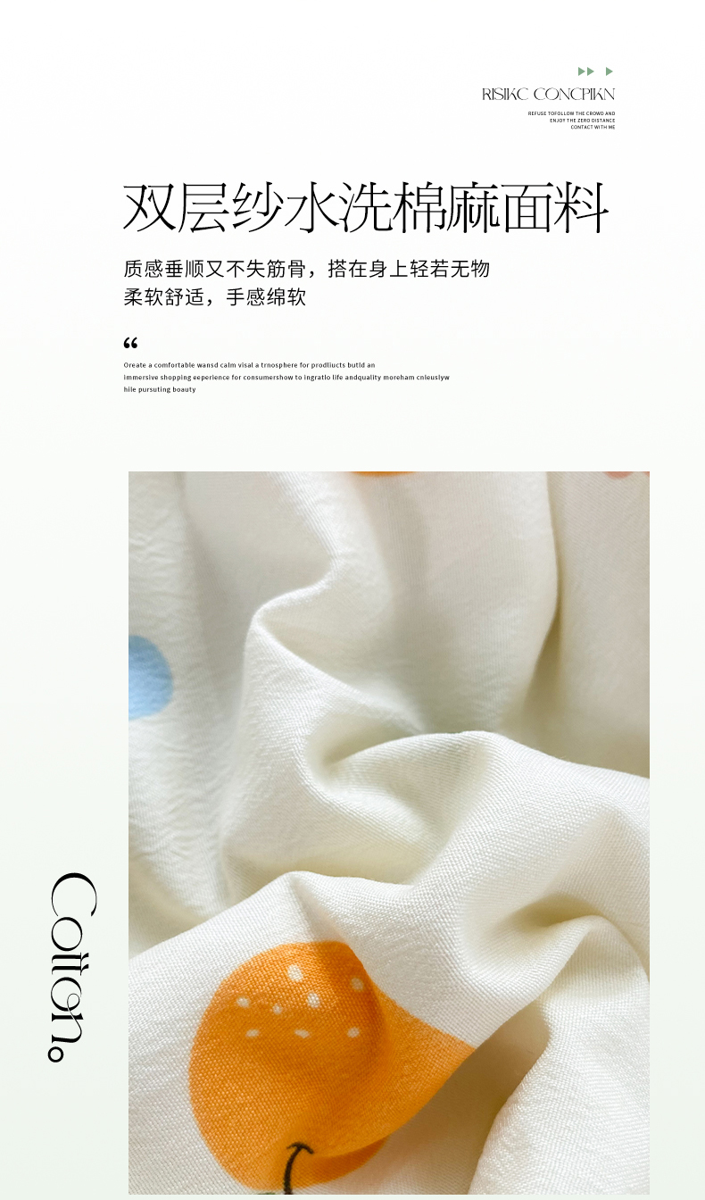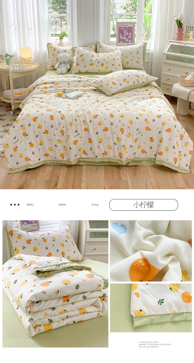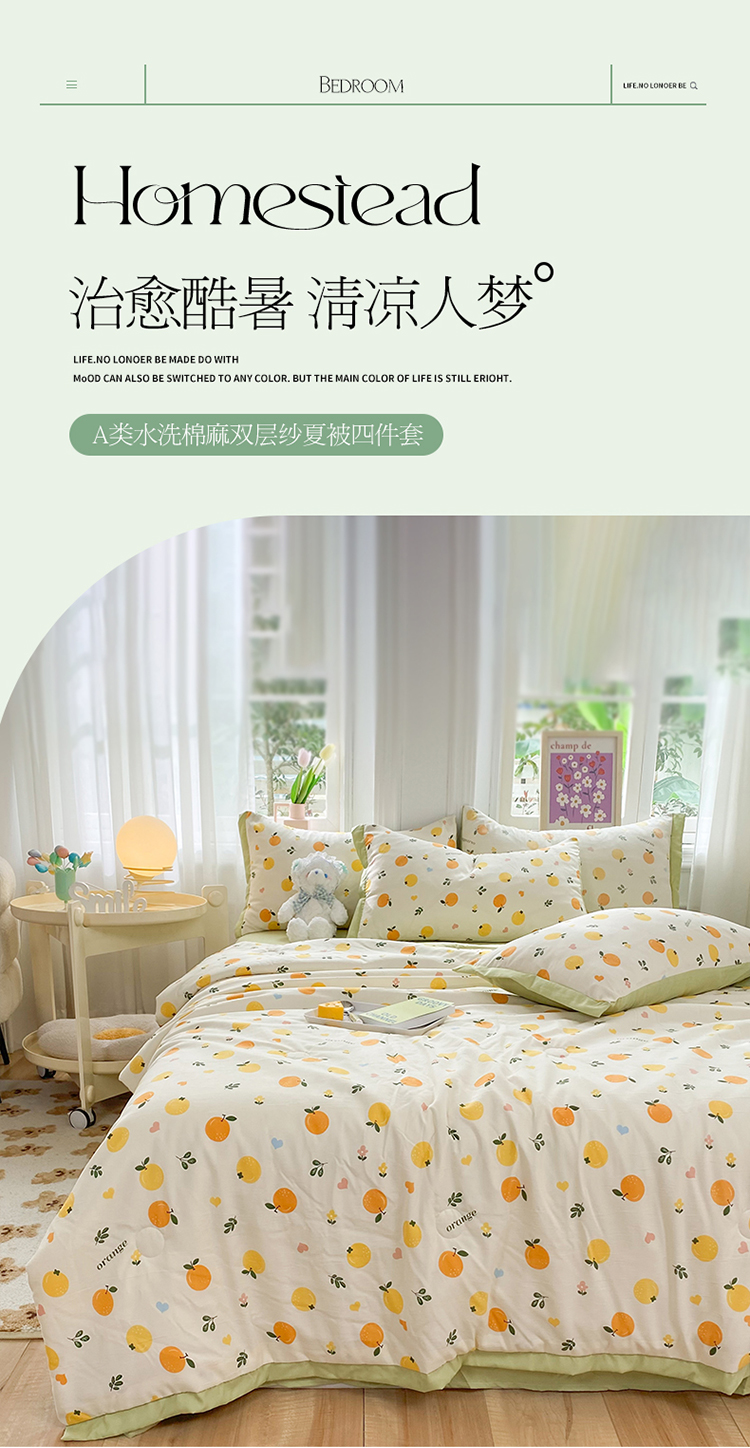 商品名称:梦之岛 2023新款A类母婴级双层纱水洗棉麻夏凉被四件套 小柠檬
