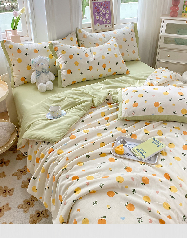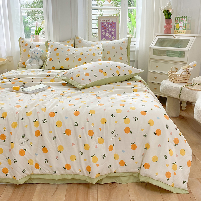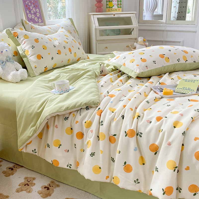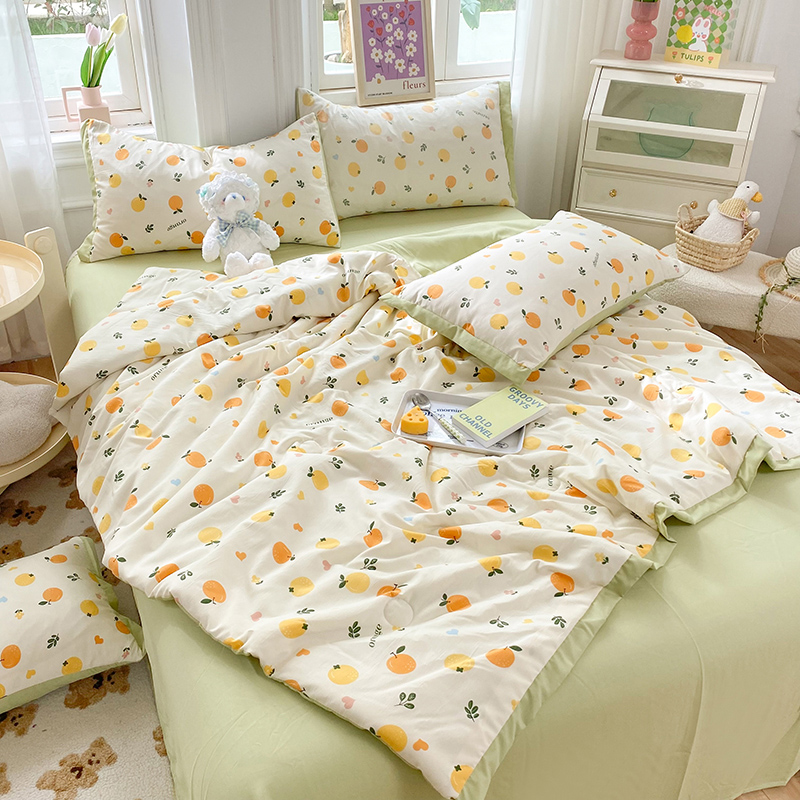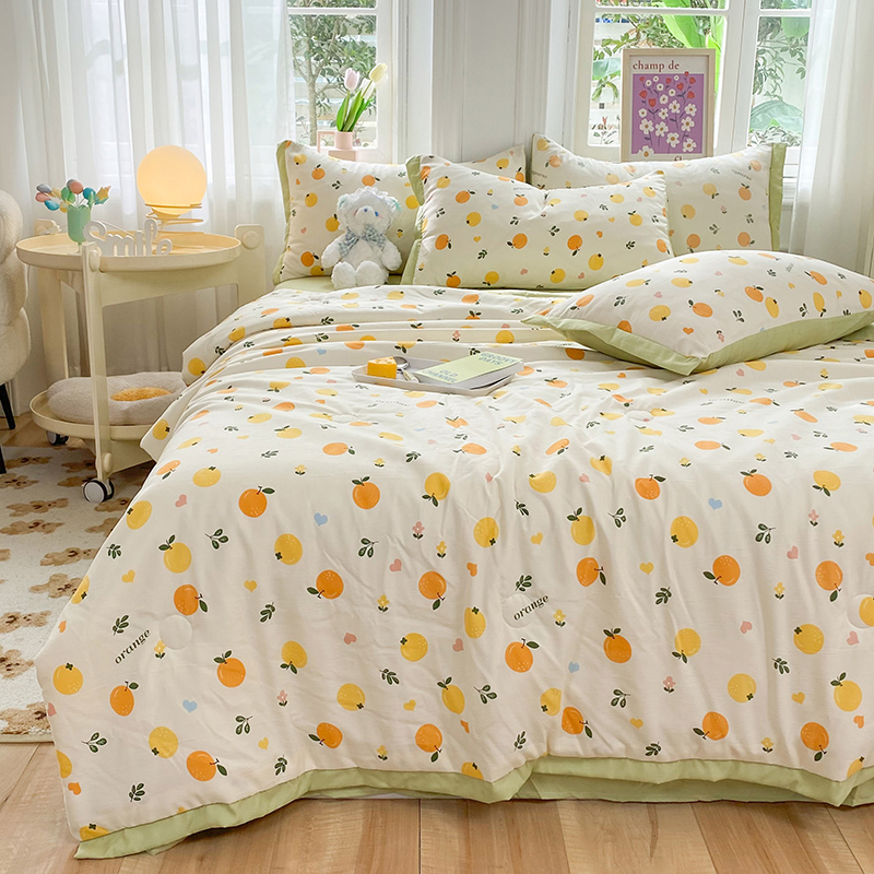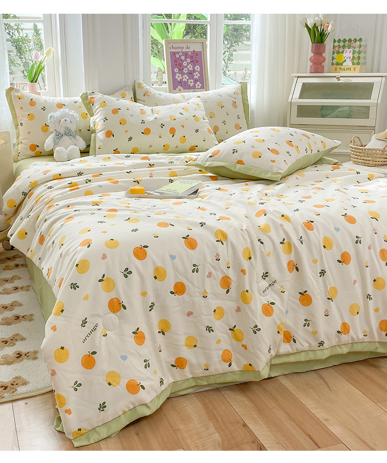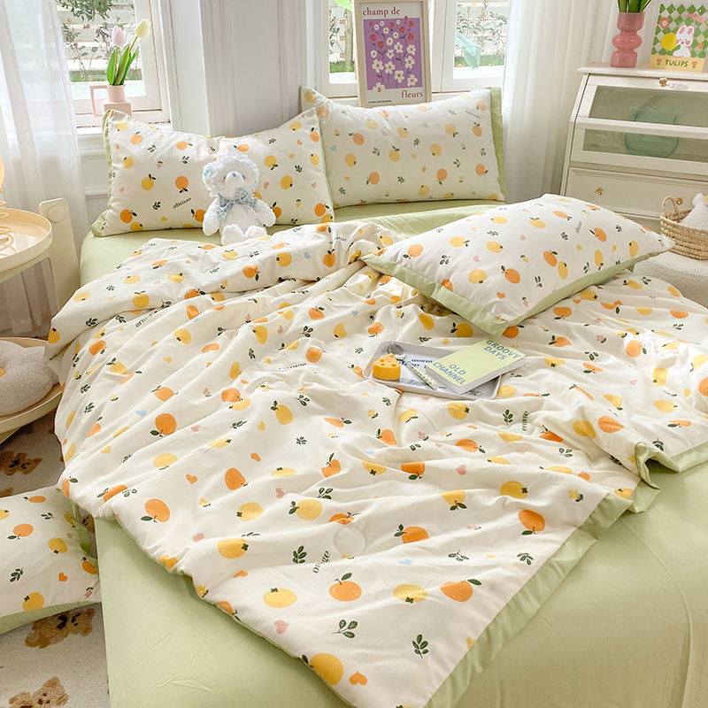 商品名称:梦之岛 2023新款A类母婴级双层纱水洗棉麻夏凉被四件套 小柠檬