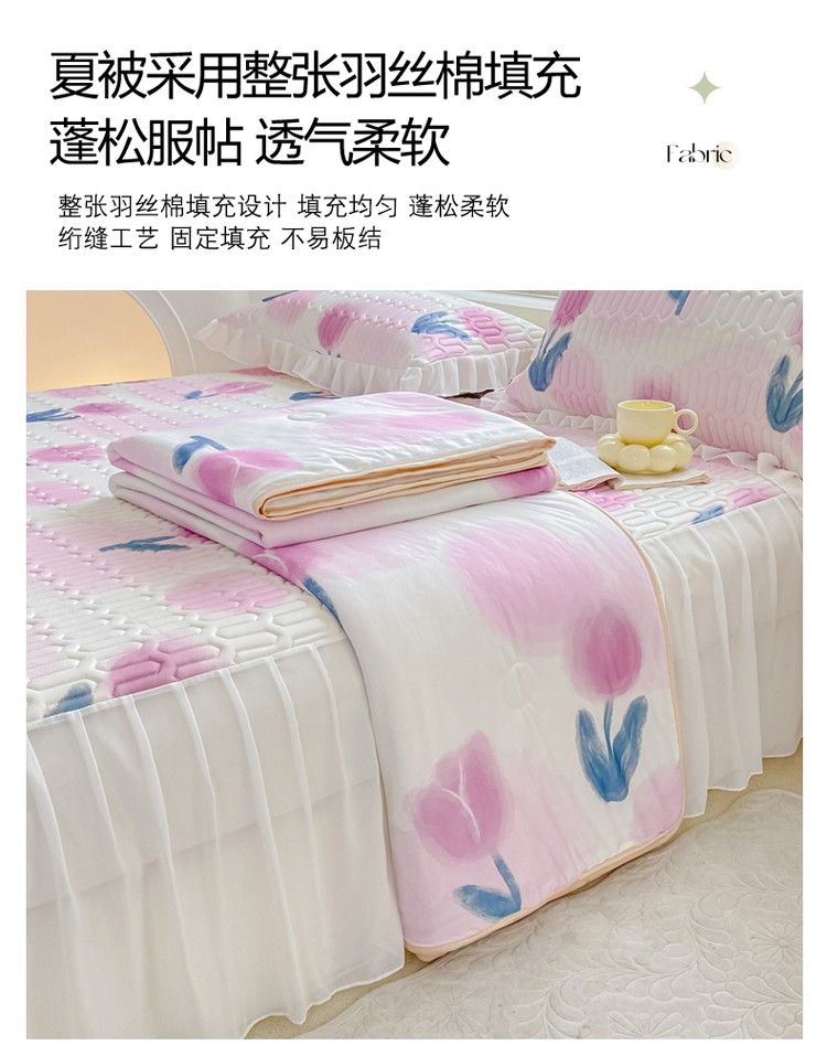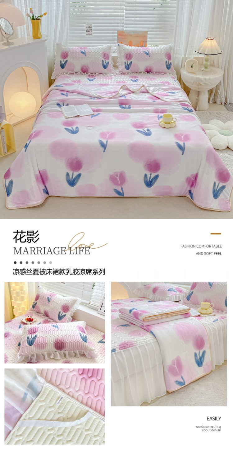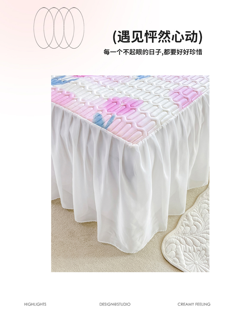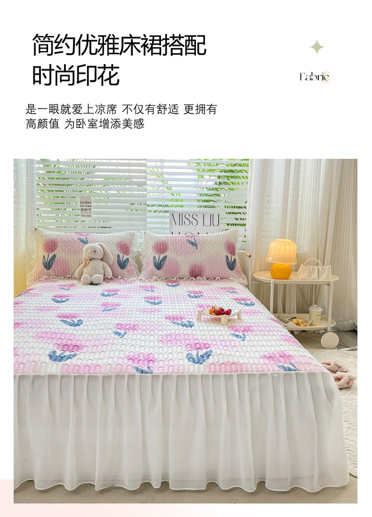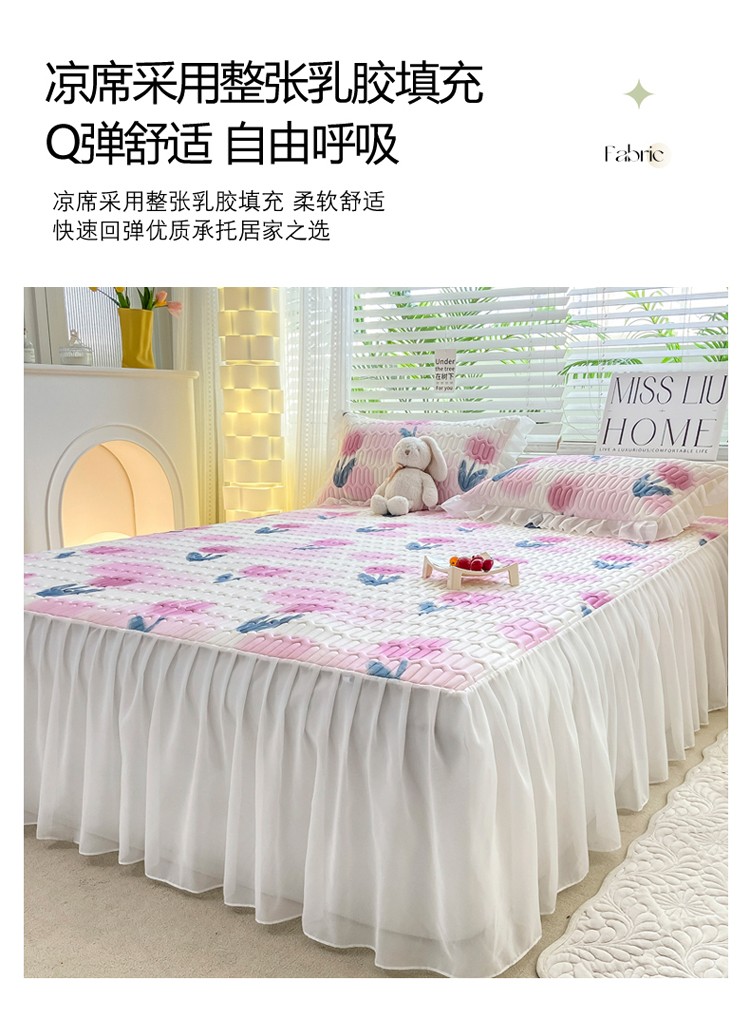 • 91家纺网 家纺一手货源 找家纺 慕澄2023新款小版床裙款雪纺乳胶凉席夏被四件套 花影