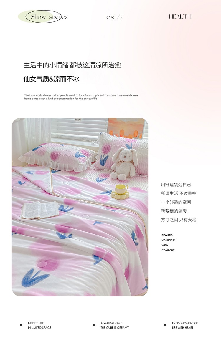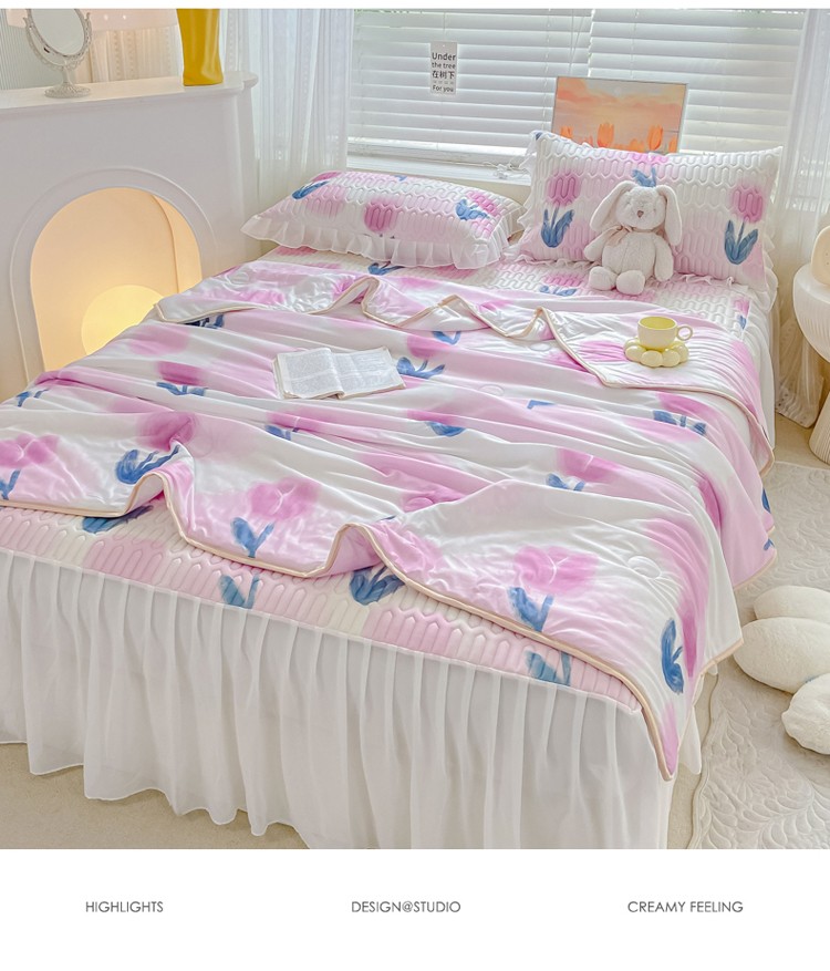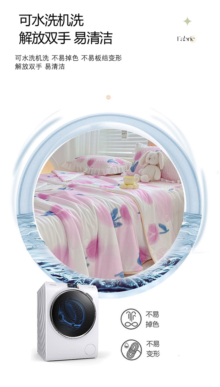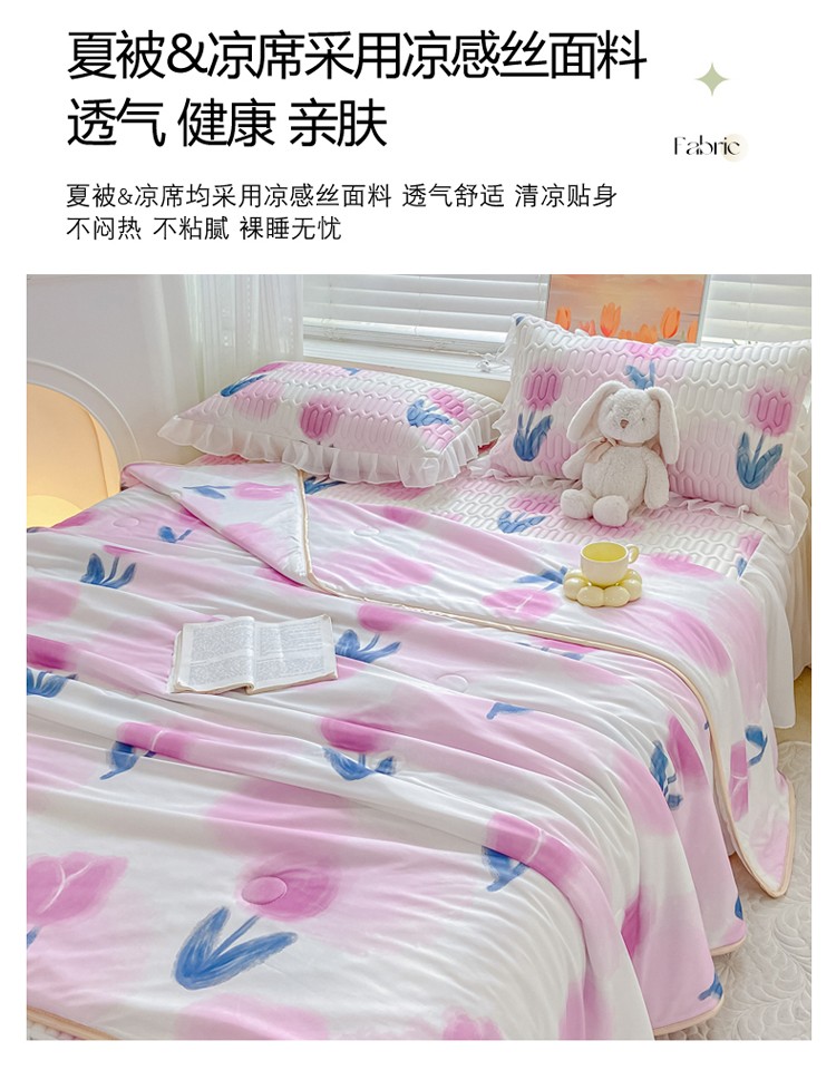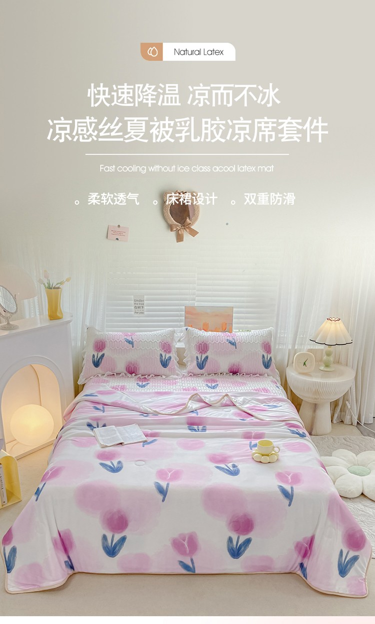• 91家纺网 家纺一手货源 找家纺 慕澄2023新款小版床裙款雪纺乳胶凉席夏被四件套 花影