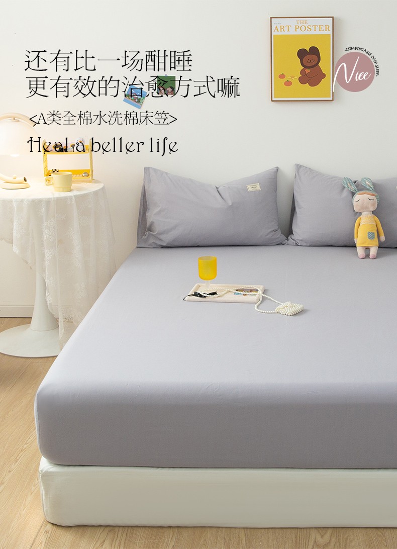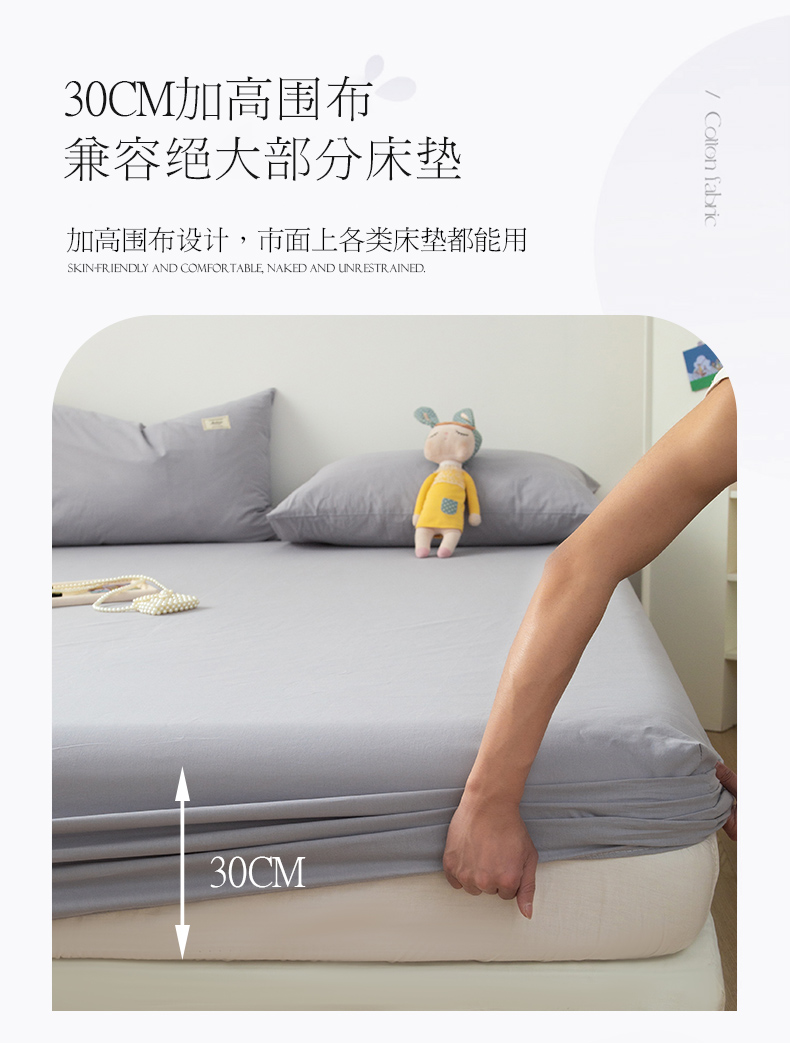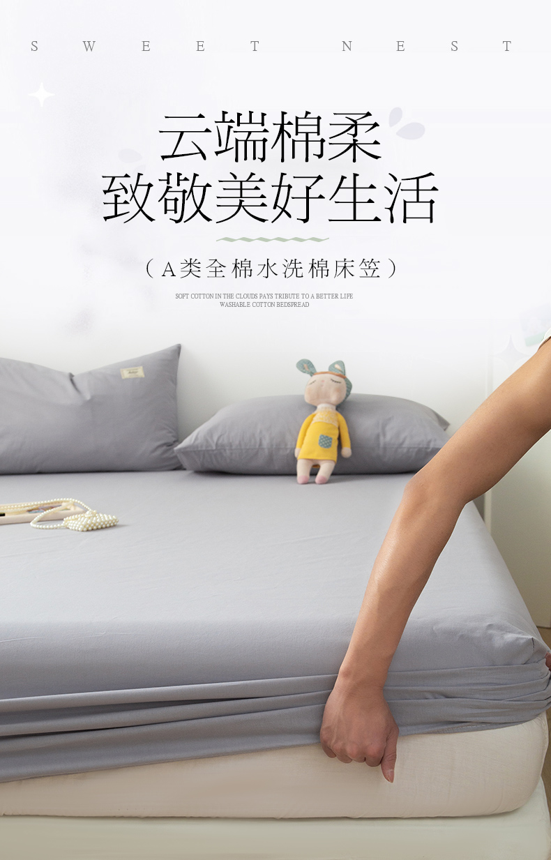 芬晴 2023新款纯棉水洗棉单层床笠 浅灰