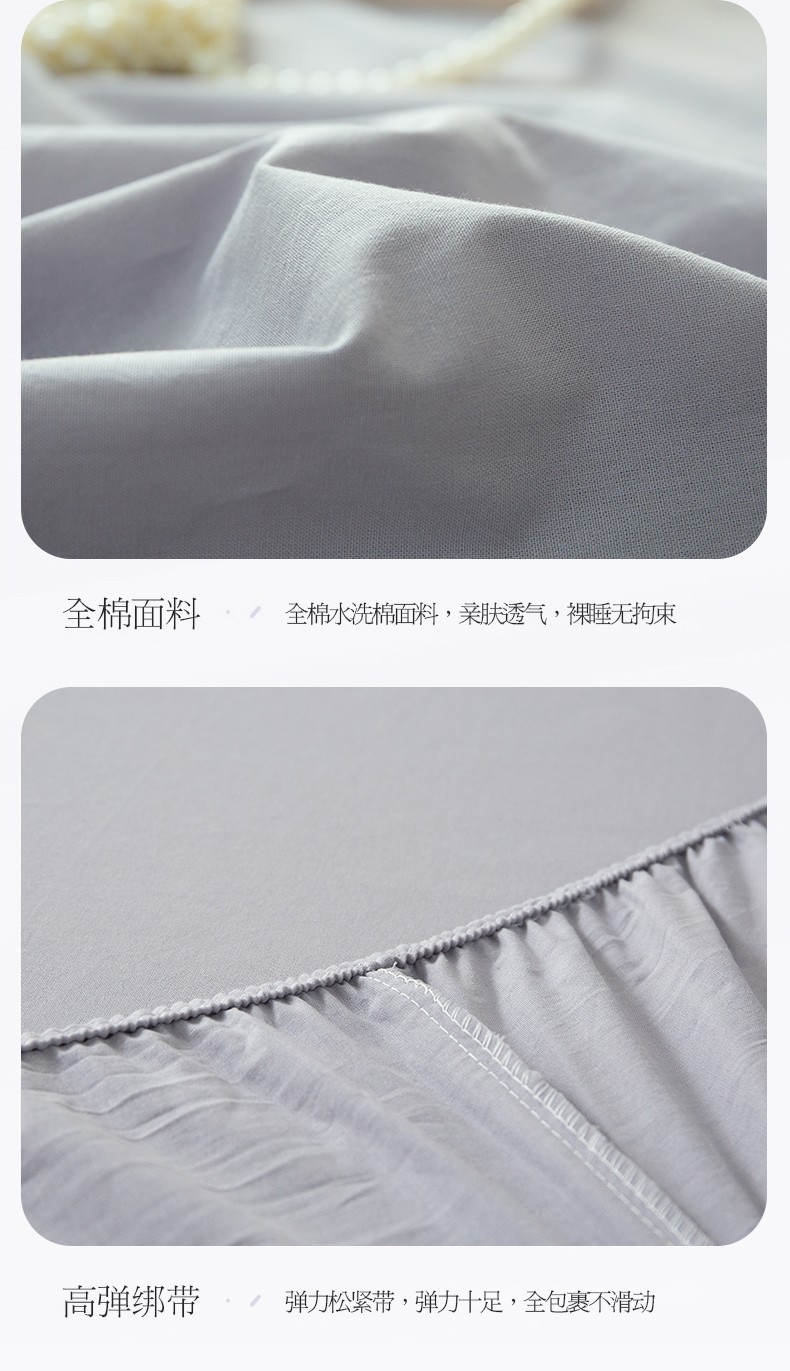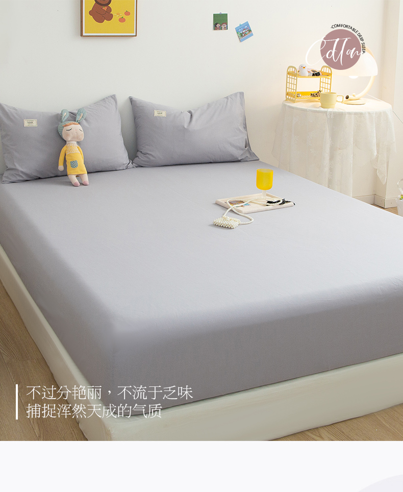 • 91家纺网 家纺一手货源 找家纺 芬晴 2023新款纯棉水洗棉单层床笠 浅灰