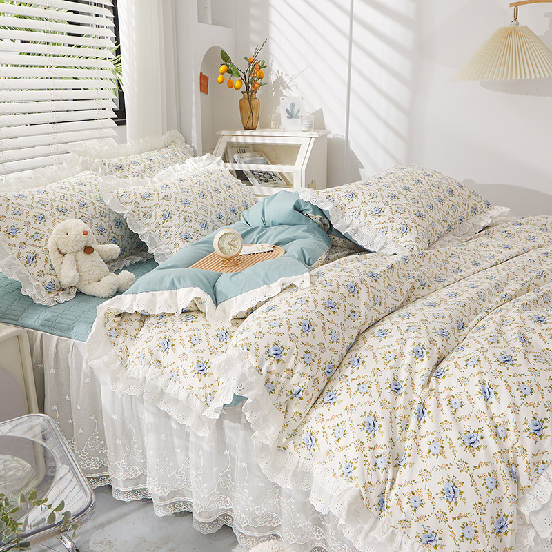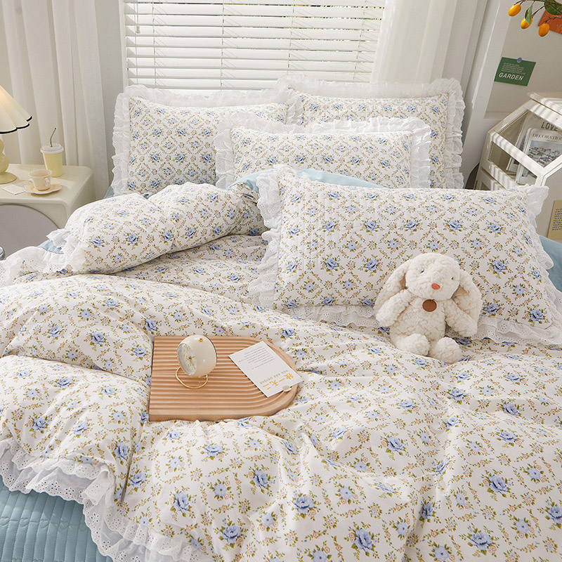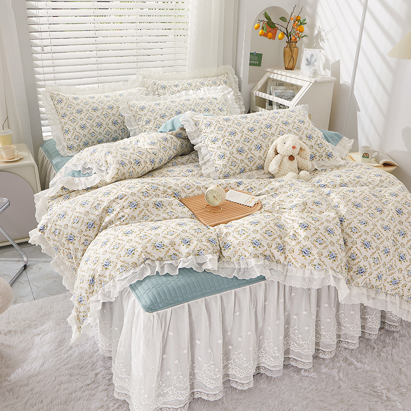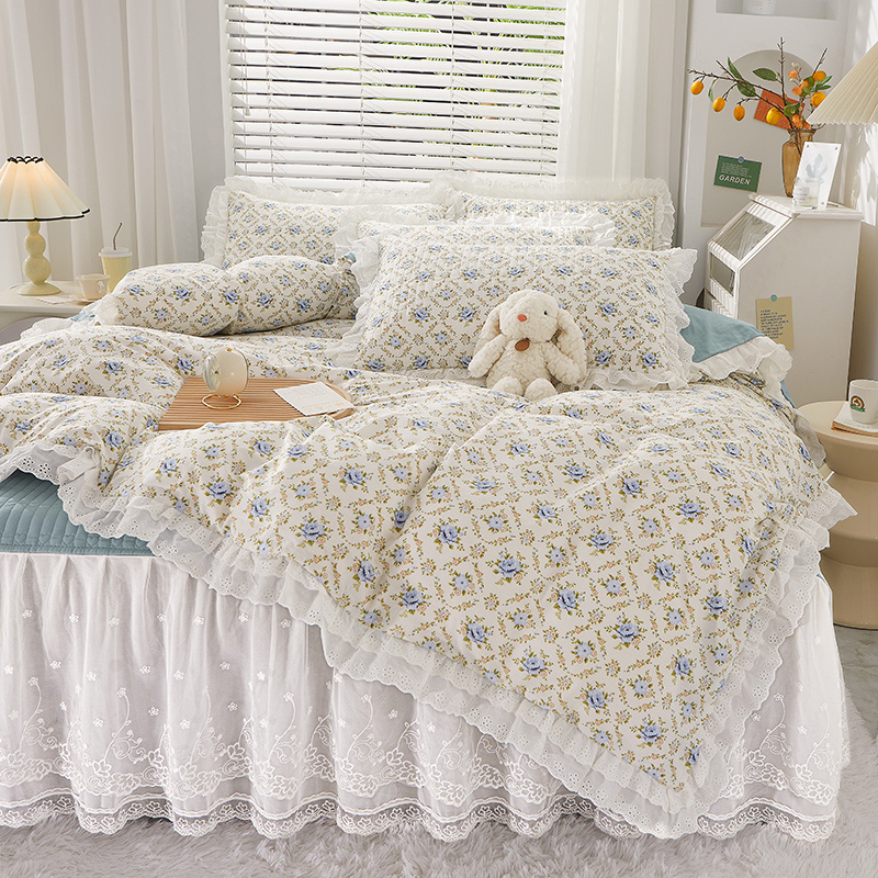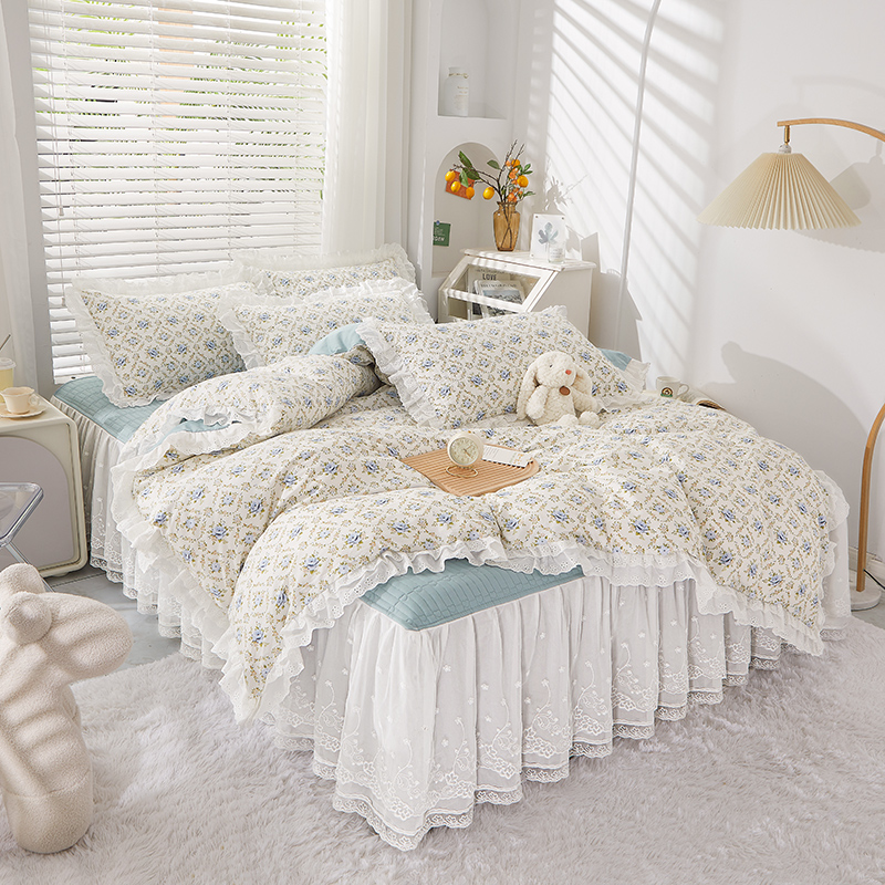当前位置: 91家纺网 > 商品网购 > 床品套件 > 四件套 > 全棉普通四件套 > 宜凡家纺 2023新款A类全棉夹棉床裙四件套 蓝风铃