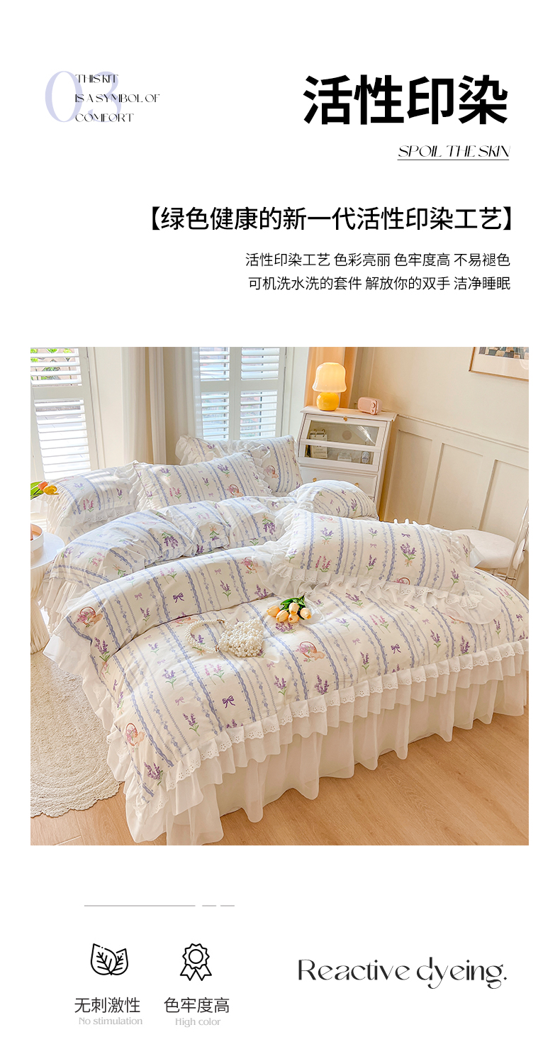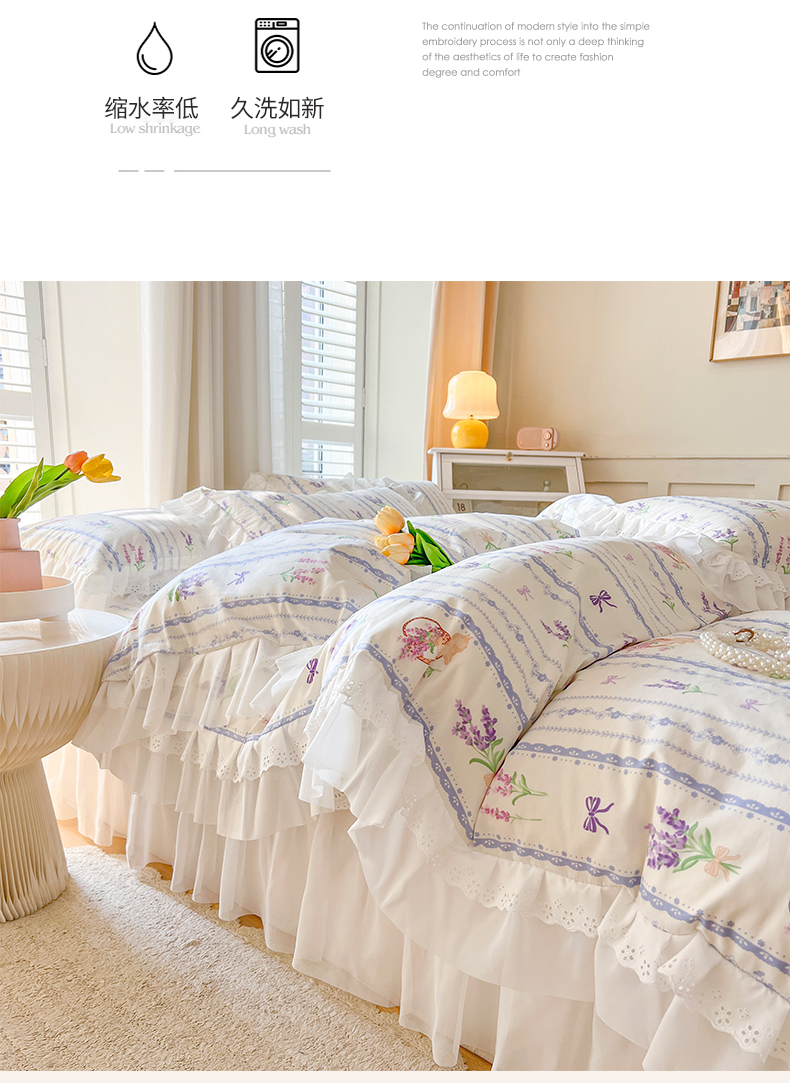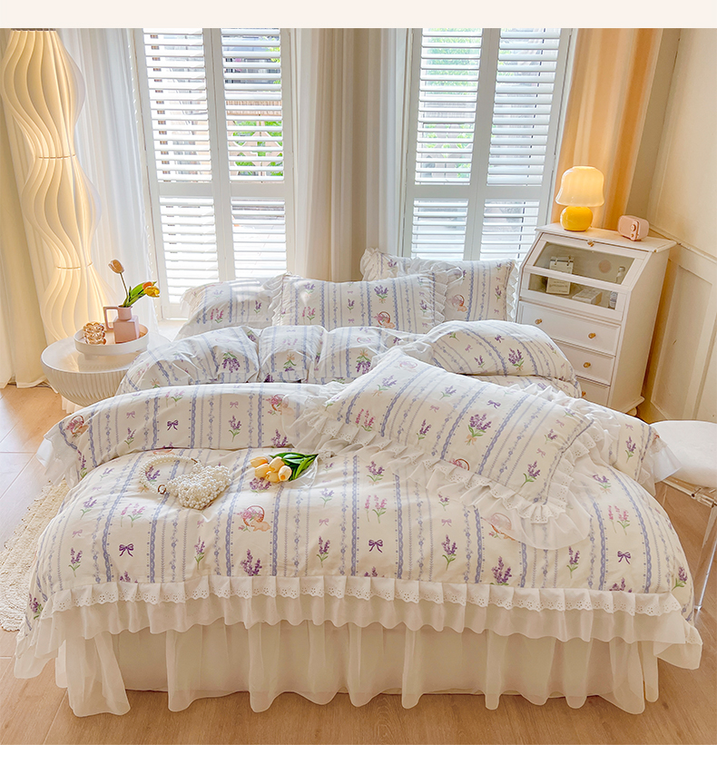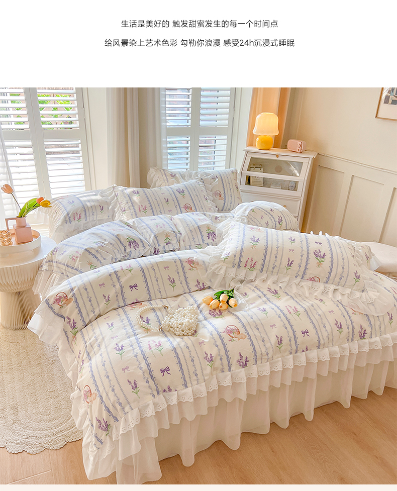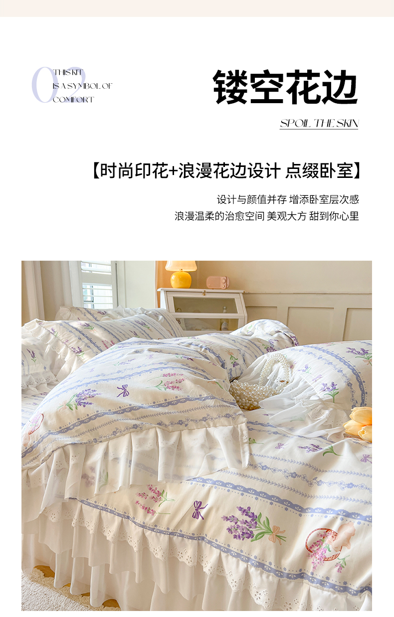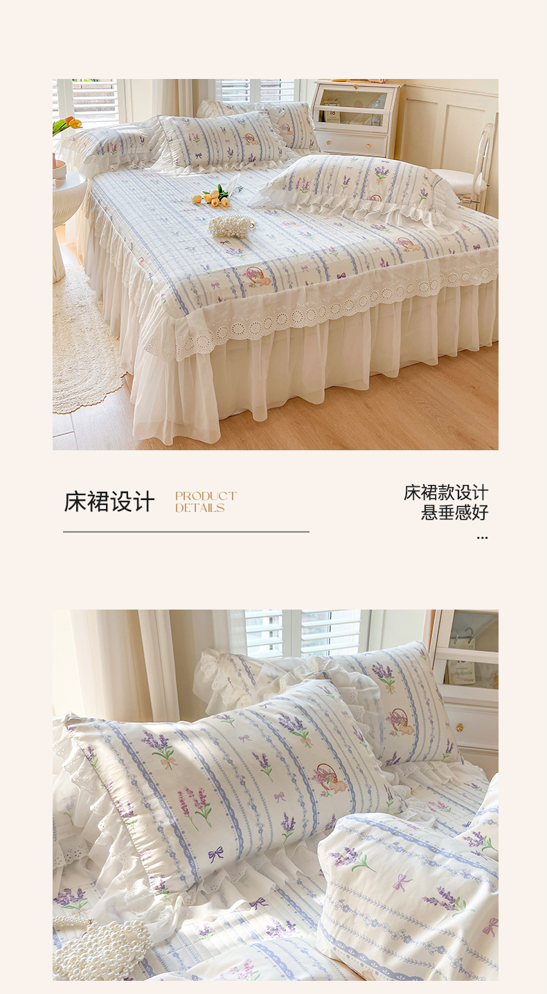 当前位置: 91家纺网 > 商品网购 > 床品套件 > 四件套 > 全棉普通四件套 > 瑞宝 2025新款镂空全棉印花床裙款四件套 薰衣草
