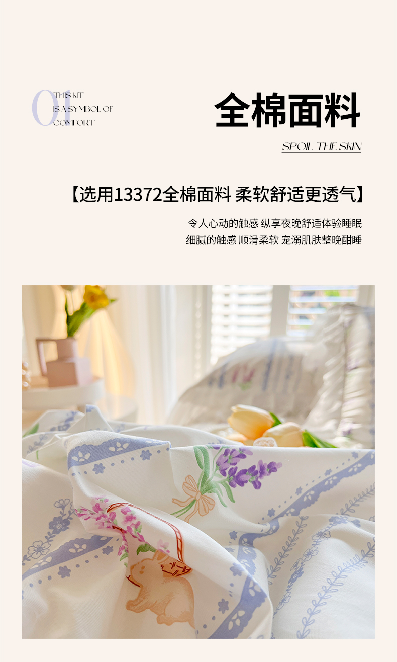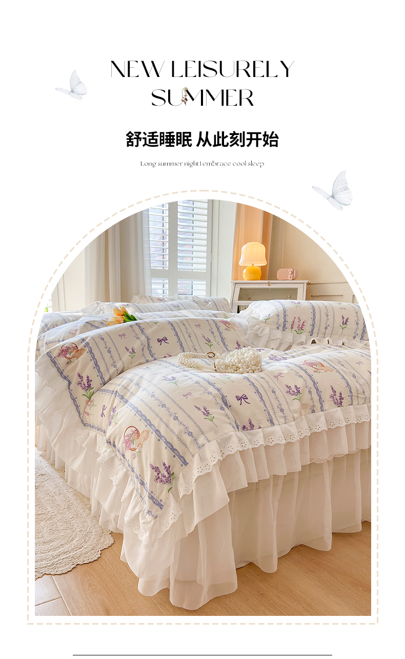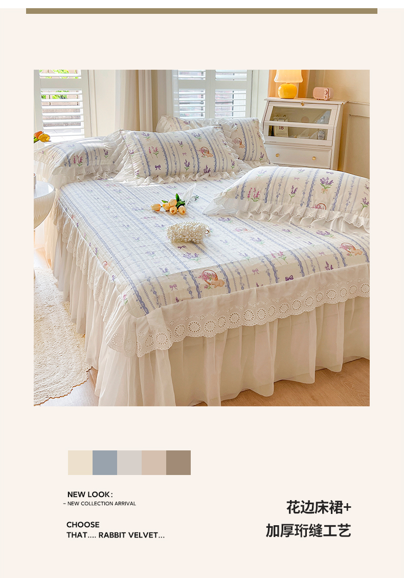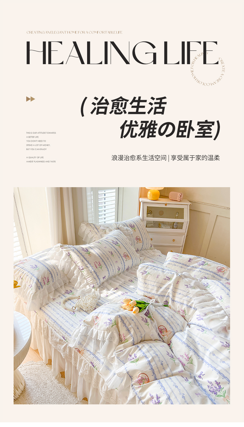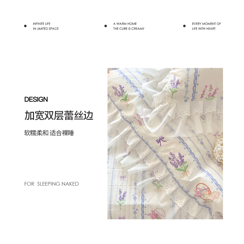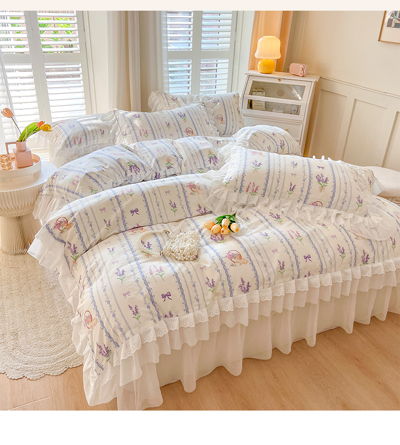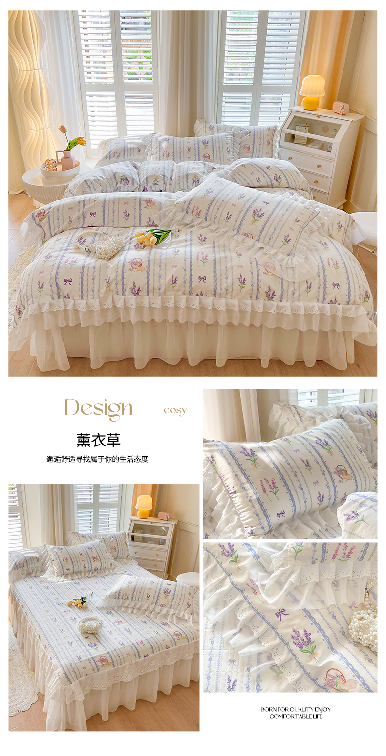 当前位置: 91家纺网 > 商品网购 > 床品套件 > 四件套 > 全棉普通四件套 > 瑞宝 2025新款镂空全棉印花床裙款四件套 薰衣草