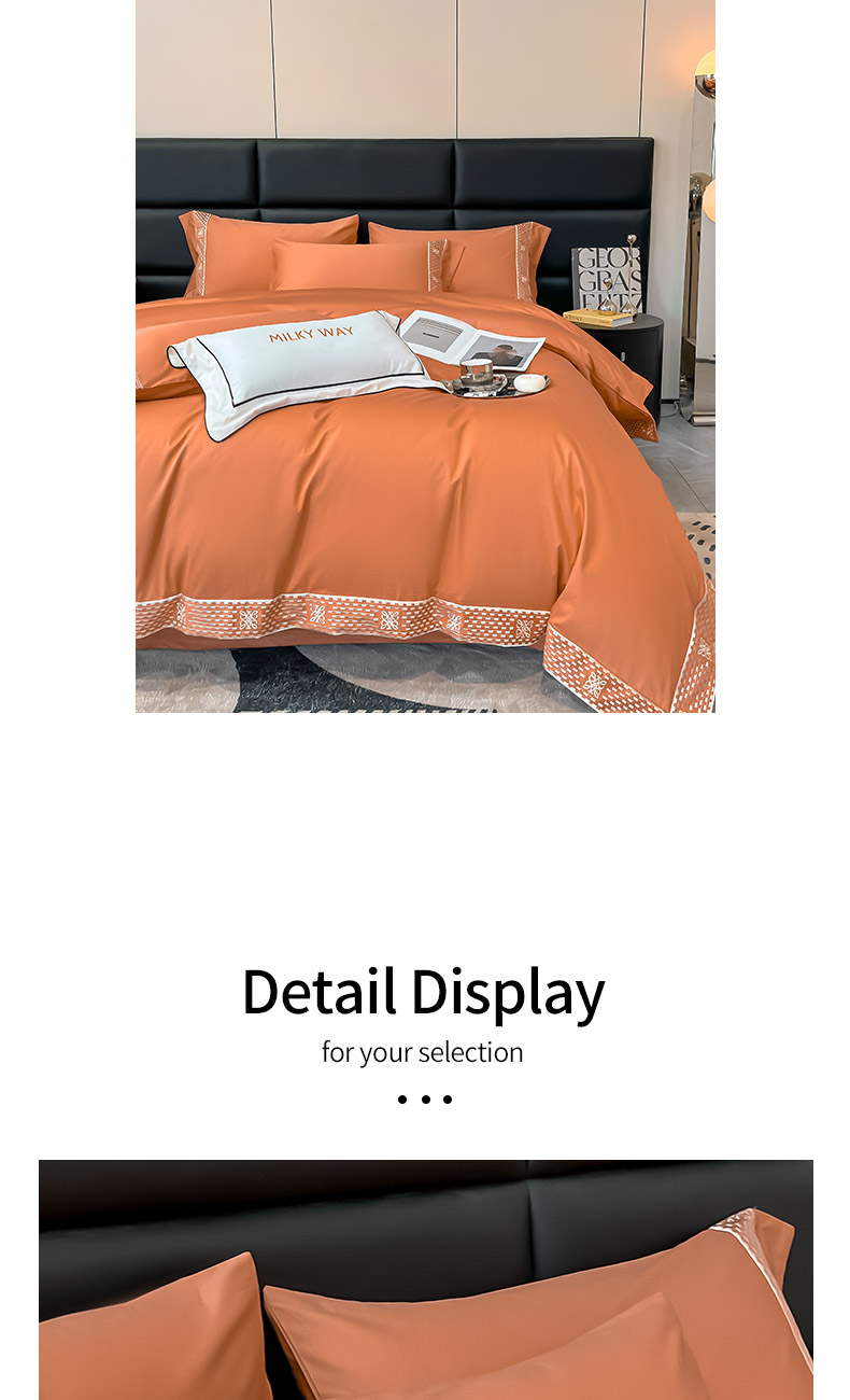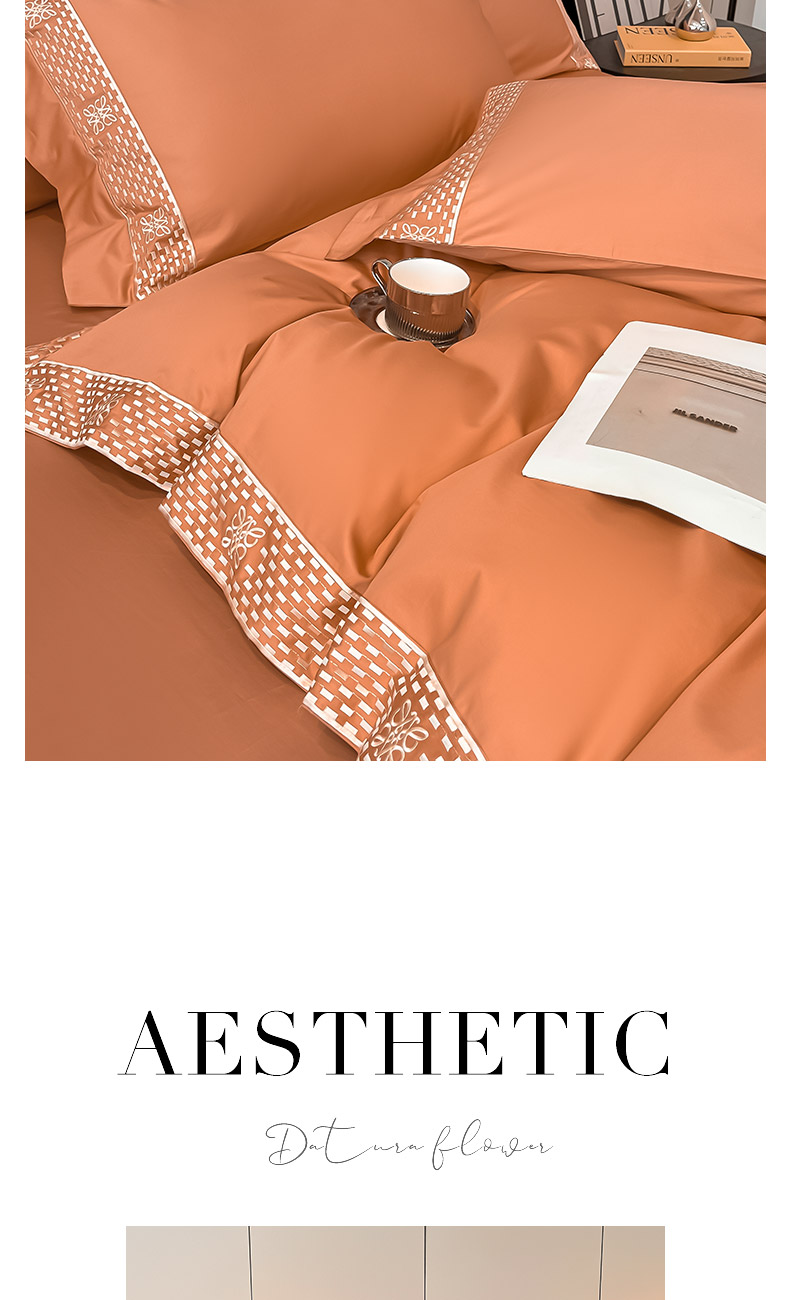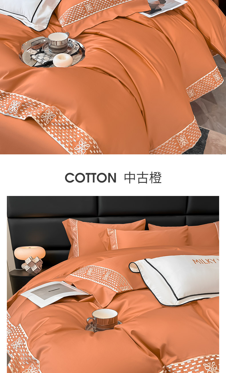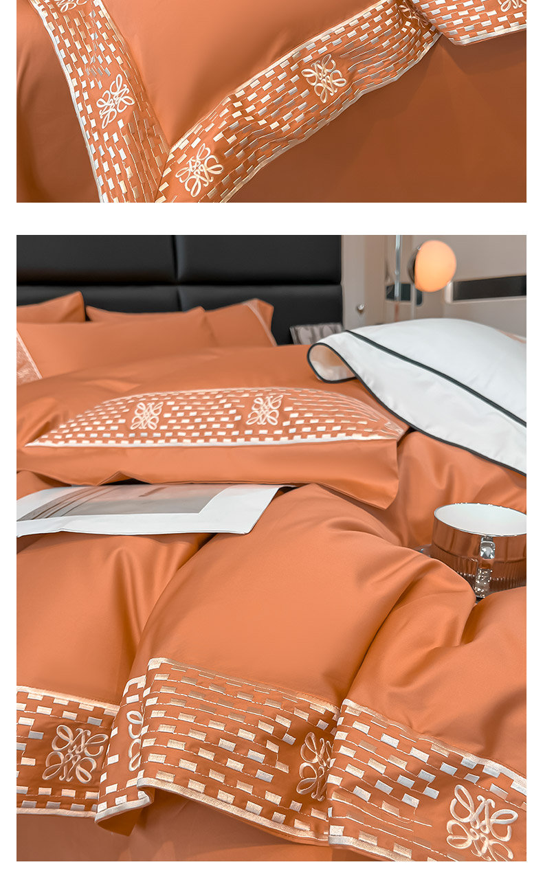 当前位置: 91家纺网 > 商品网购 > 床品套件 > 四件套 > 长绒棉四件套 > 夏季100支贡缎长绒棉四件套全棉纯棉轻奢风纯色简约刺绣床单被套床上用品 罗纳威-中古橙