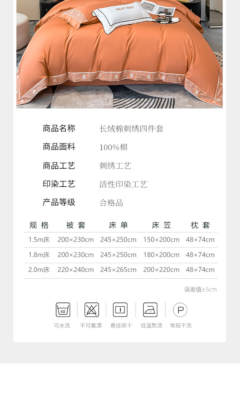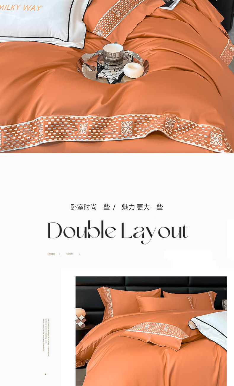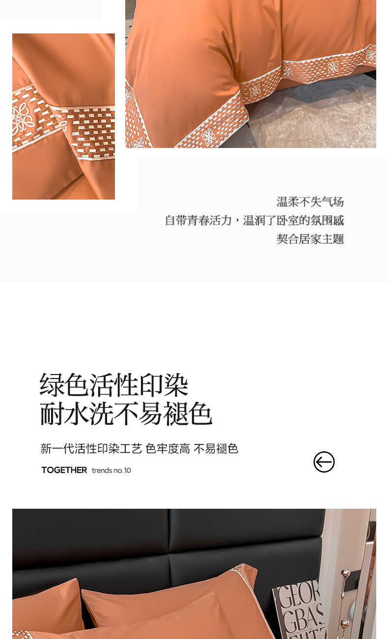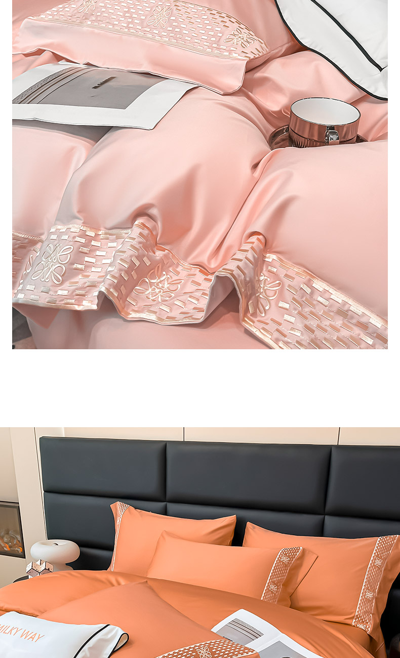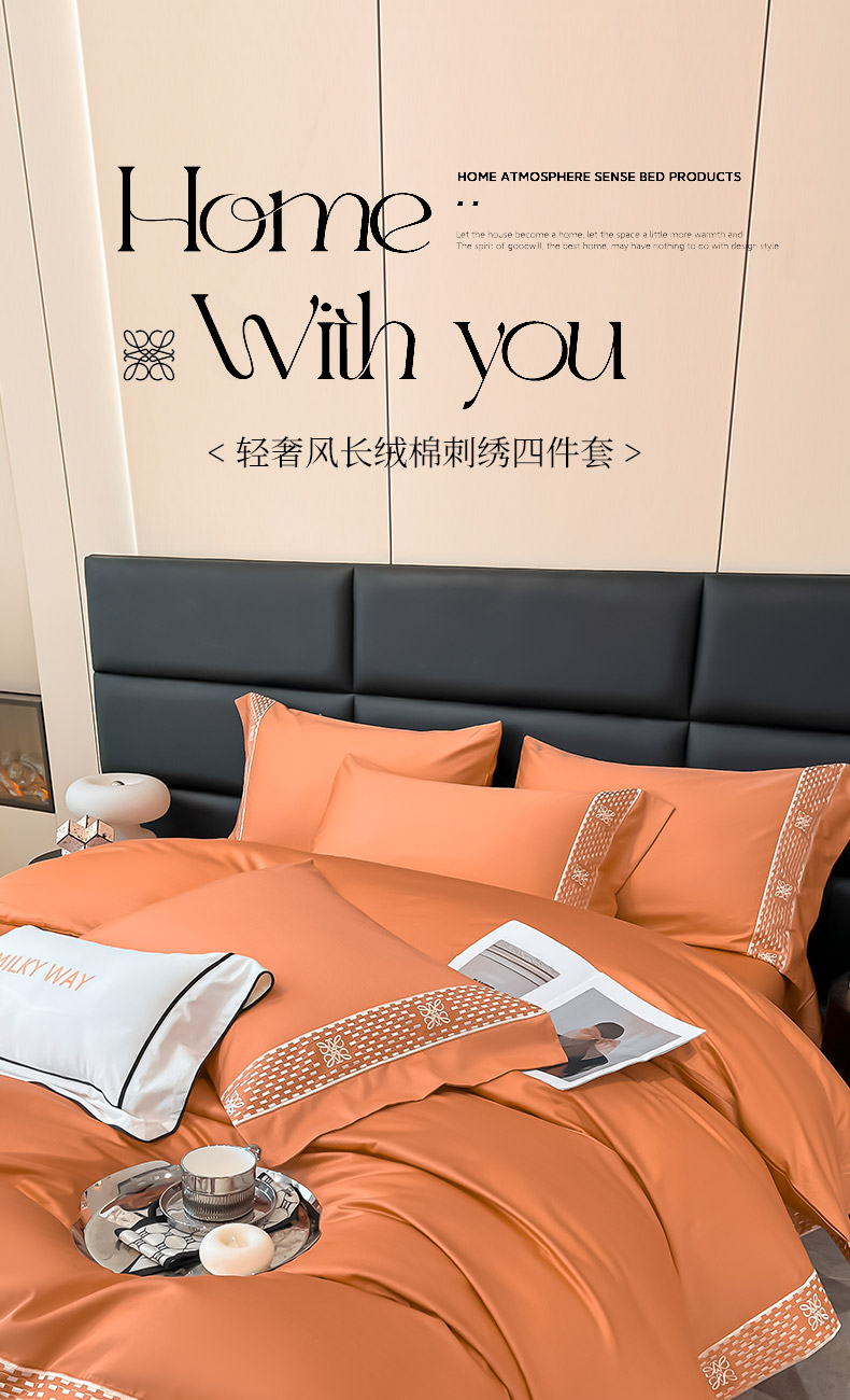 当前位置: 91家纺网 > 商品网购 > 床品套件 > 四件套 > 长绒棉四件套 > 夏季100支贡缎长绒棉四件套全棉纯棉轻奢风纯色简约刺绣床单被套床上用品 罗纳威-中古橙