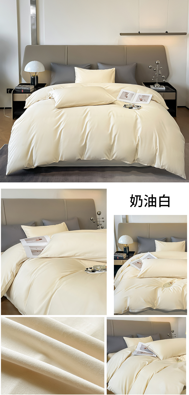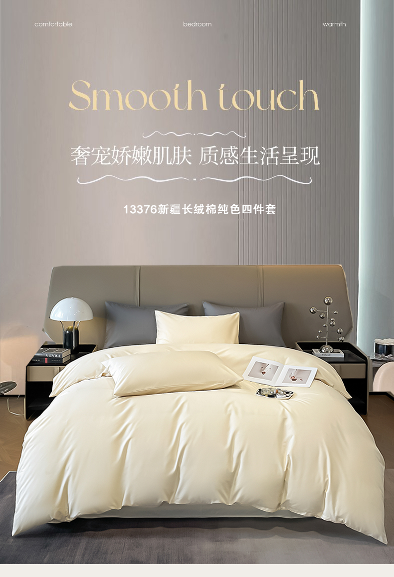 商品名称:柠馨 2023都市贵族系列13376铂金新疆长绒棉纯色四件套 奶油白