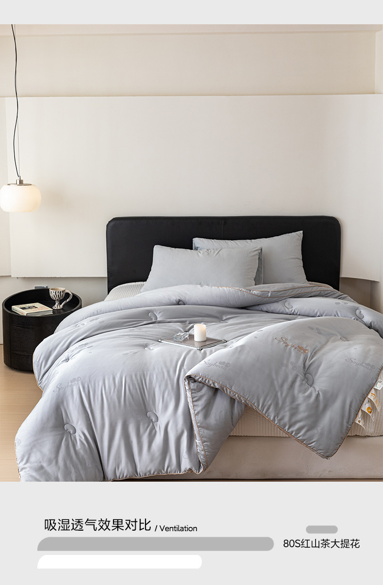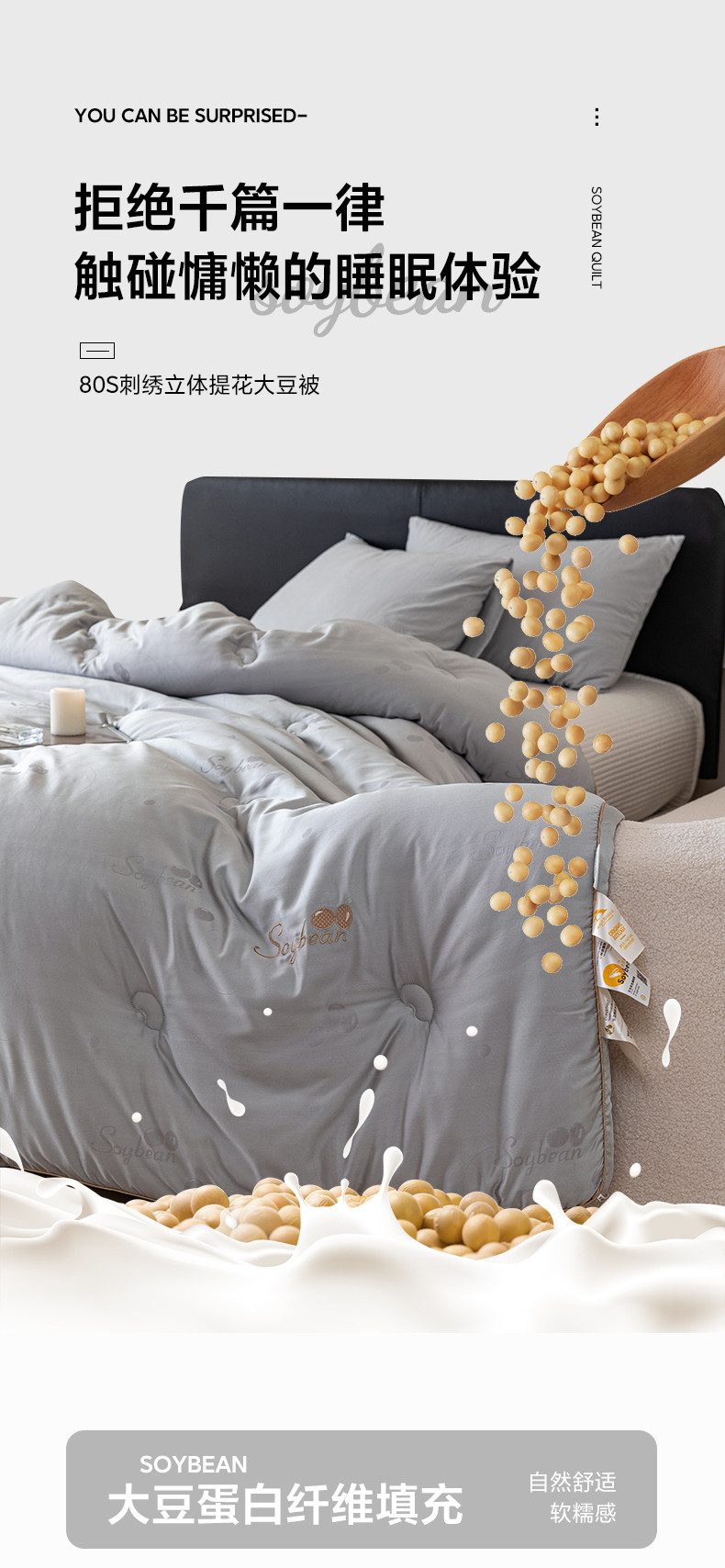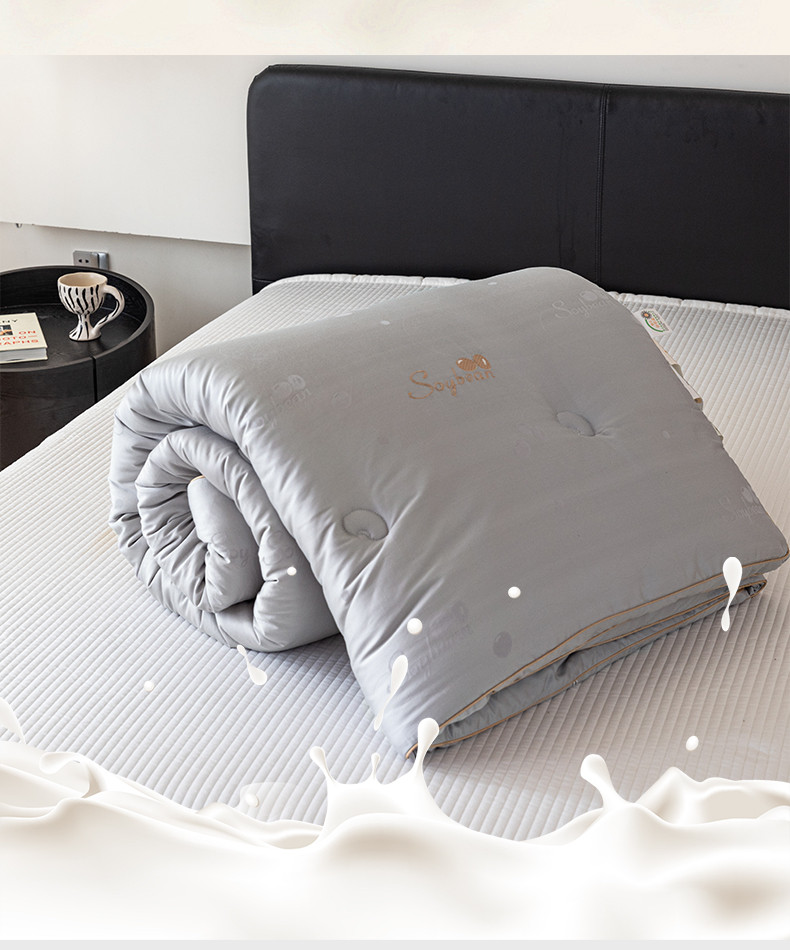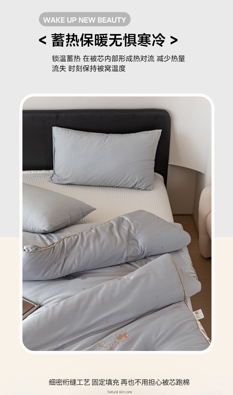(总)心悦家纺 2025新款99A类全棉原棉大豆蛋白被,豆沙,灰色,原棉白