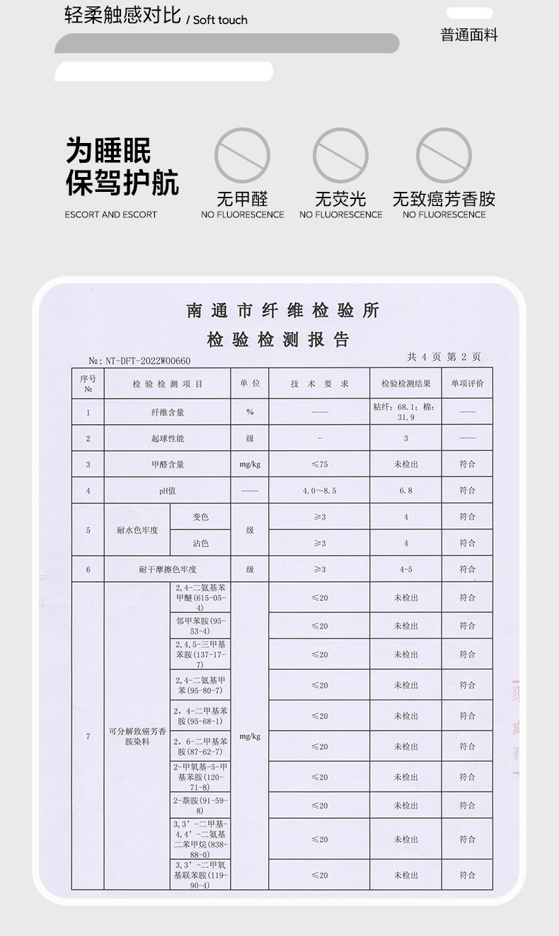 • 填充纤维种类: 大豆蛋白改性聚酯纤维