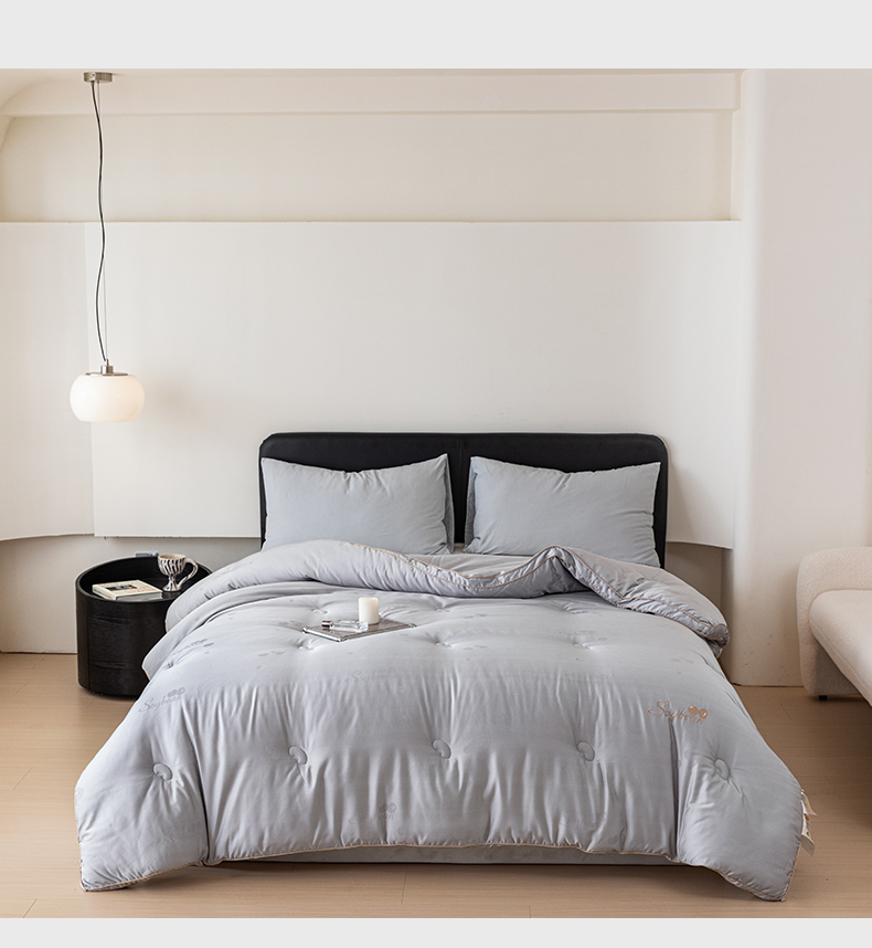 心悦家纺 2023新款80支刺绣立体提花大豆被夏被春秋被冬被 贵族豆~银灿灰