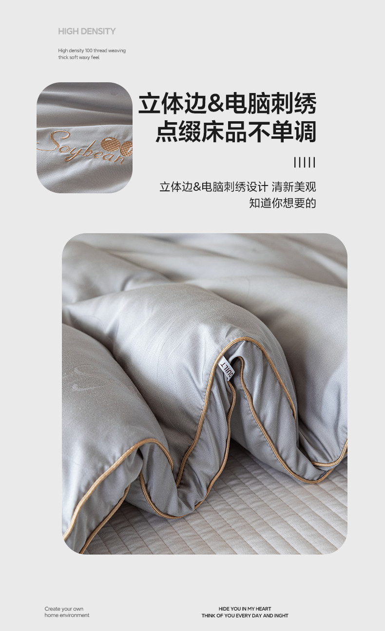 • 91家纺网 家纺一手货源 找家纺 心悦家纺 2023新款80支刺绣立体提花大豆被夏被春秋被冬被 贵族豆~银灿灰
