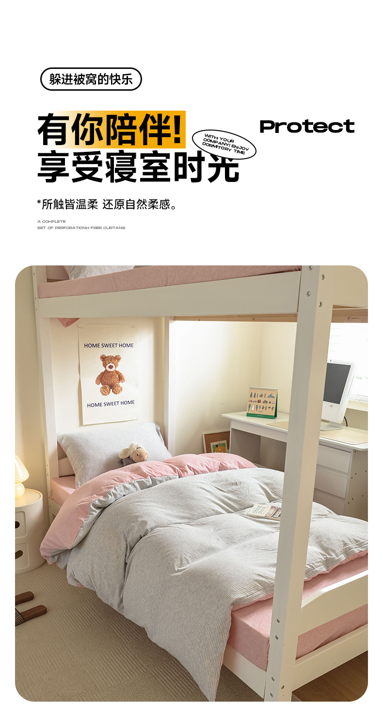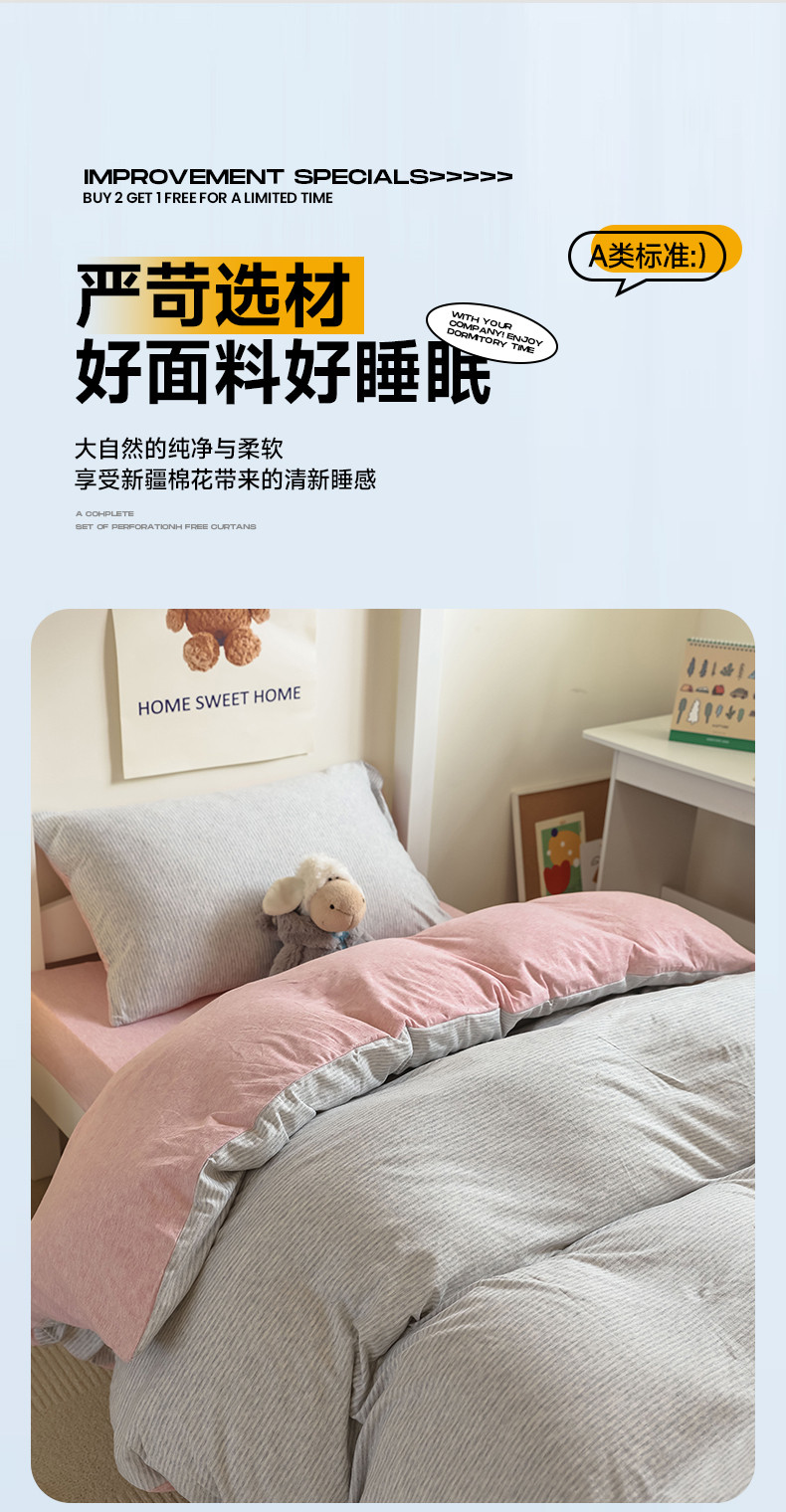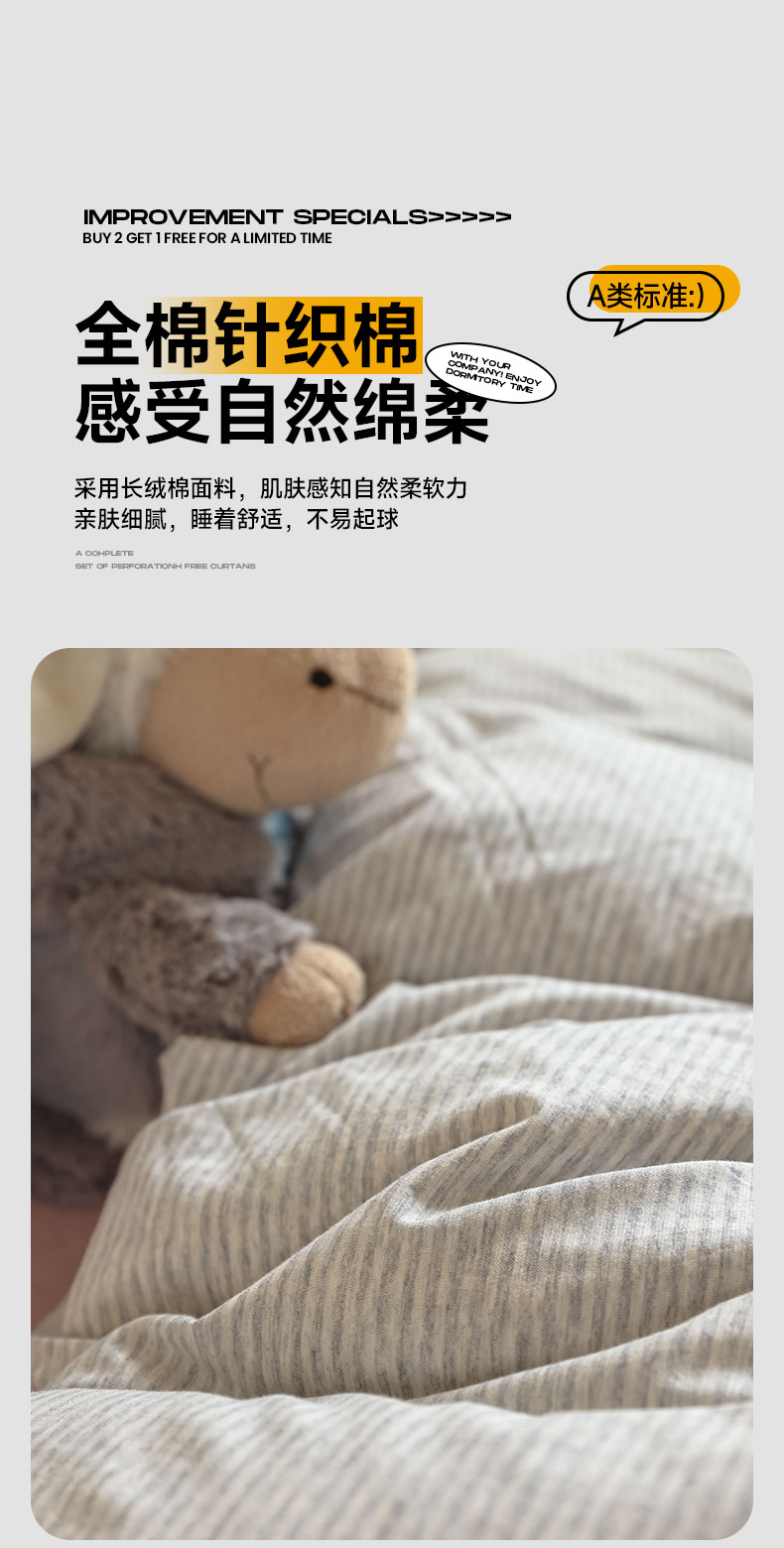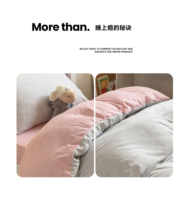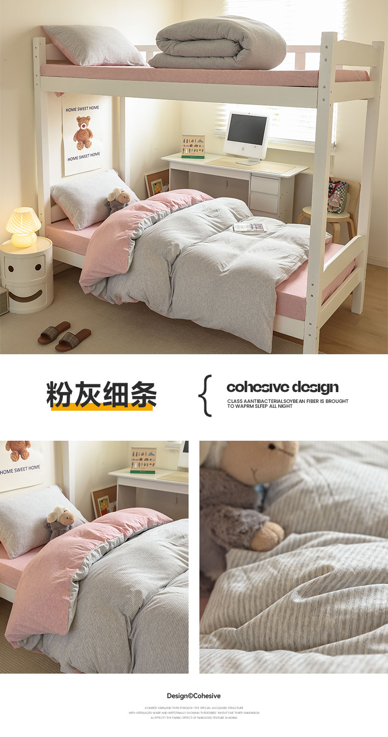 商品名称:寐眠 2023新款全棉针织棉学生三件套 粉灰细条