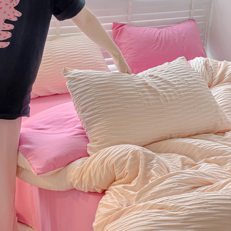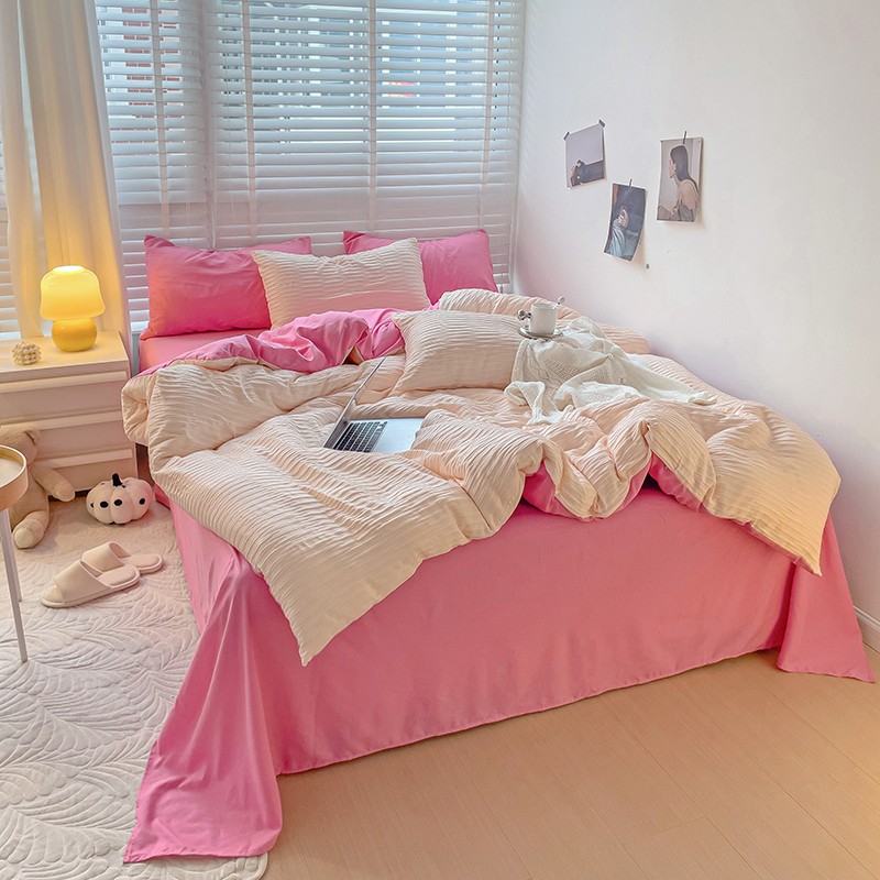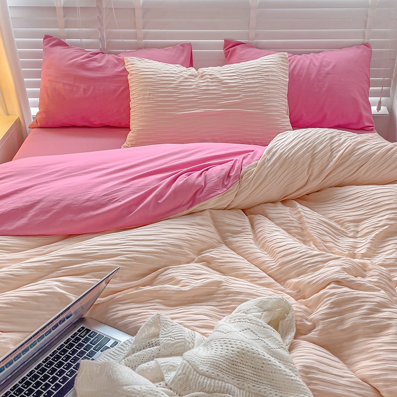 当前位置: 91家纺网 > 商品网购 > 床品套件 > 四件套 > 全棉普通四件套 > 港岛妹妹 20223新款超柔叶子泡泡纱四件套 苏桃粉+玫红
