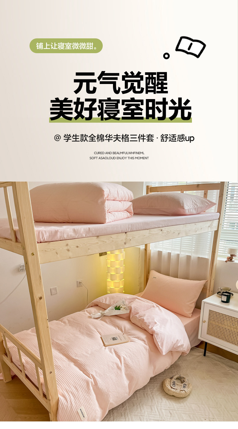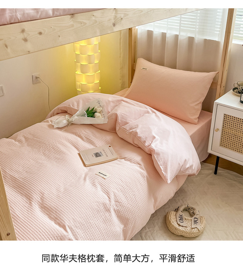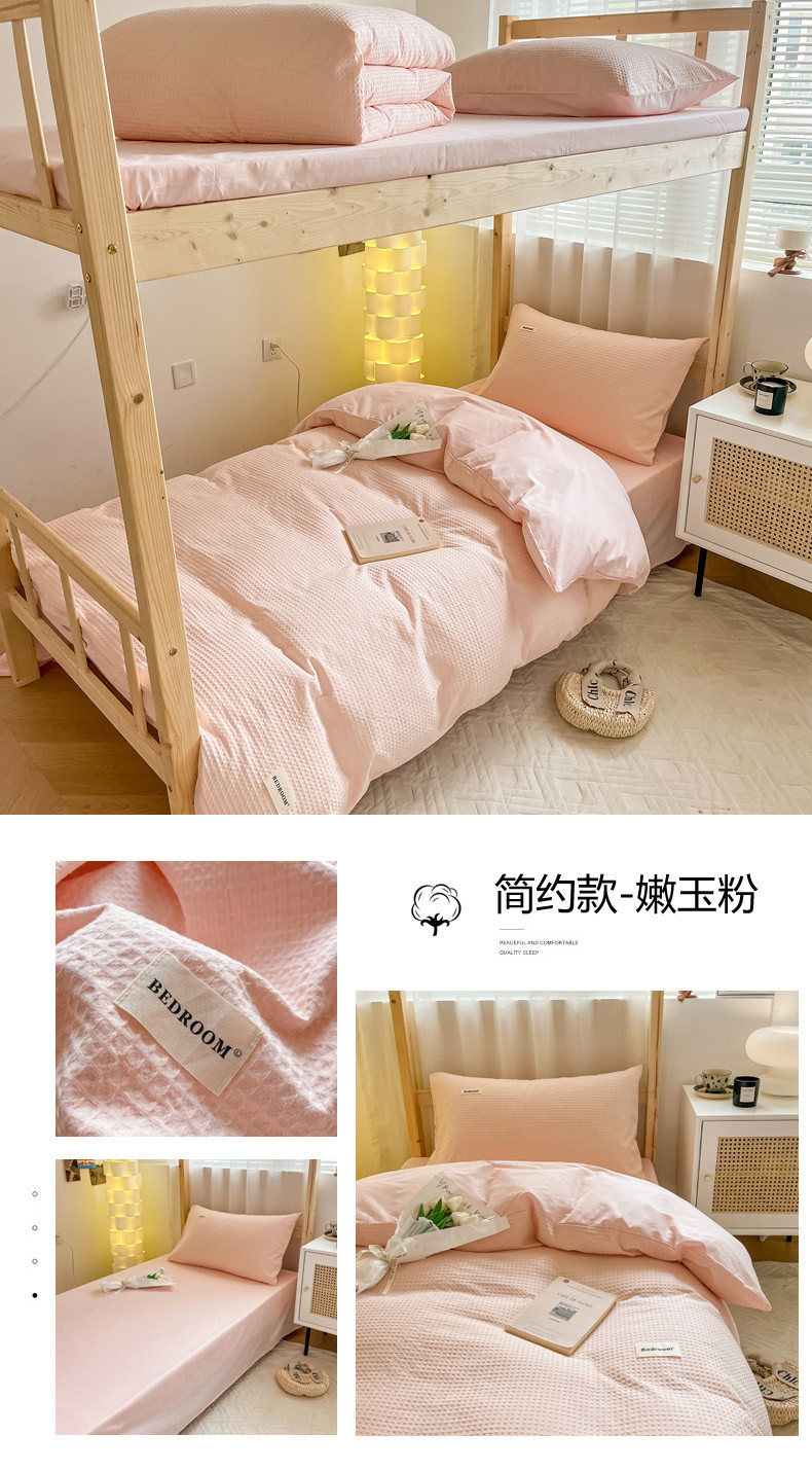 当前位置: 91家纺网 > 商品网购 > 床品套件 > 四件套 > 全棉普通四件套 > 眠博士 2023新款全棉华夫格学生上下铺四件套 简约款-嫩玉粉