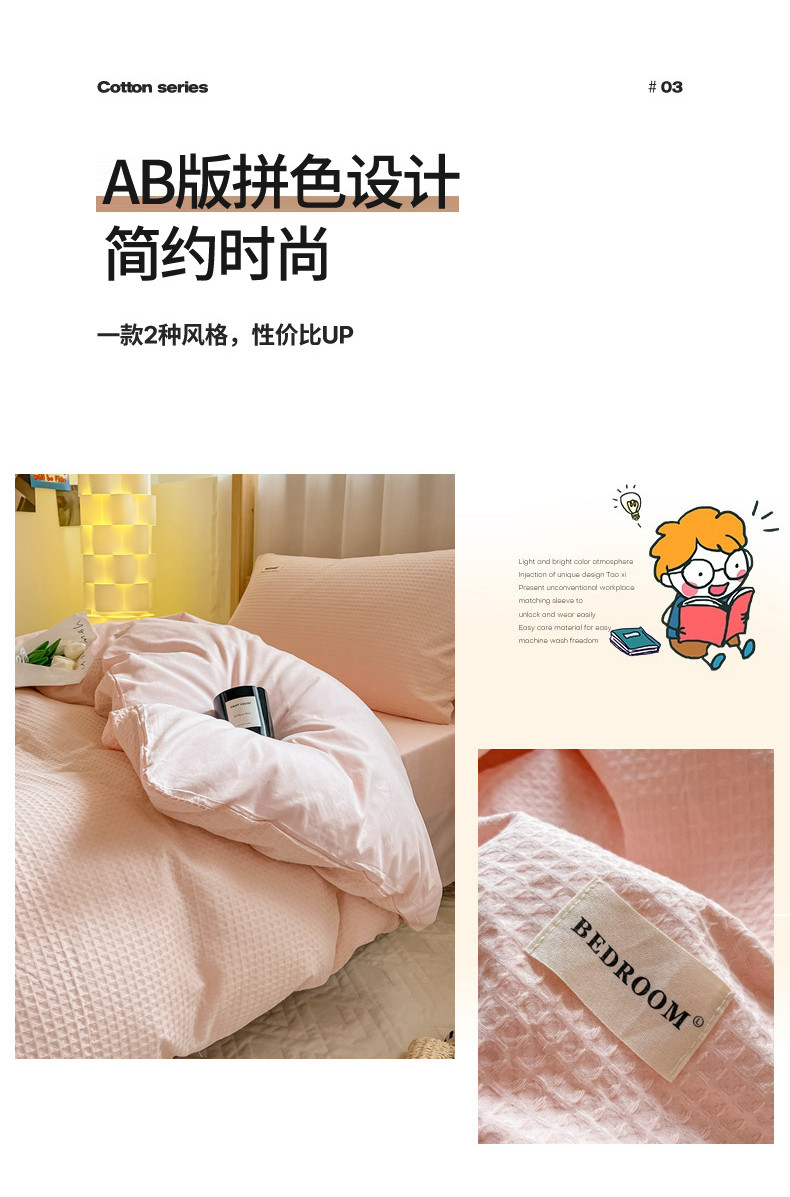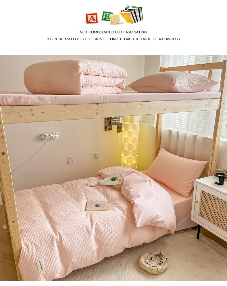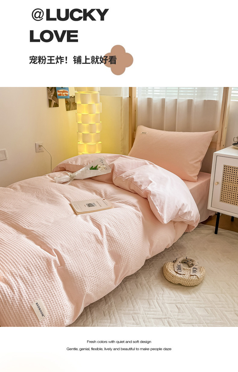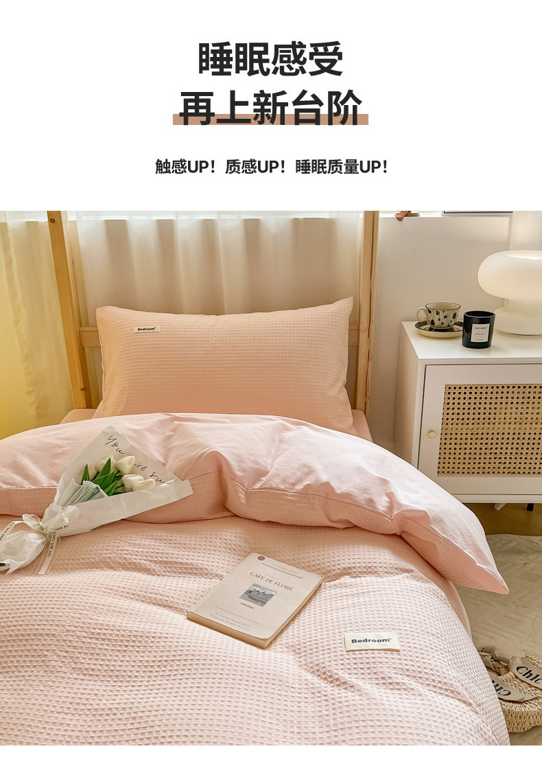 当前位置: 91家纺网 > 商品网购 > 床品套件 > 四件套 > 全棉普通四件套 > 眠博士 2023新款全棉华夫格学生上下铺四件套 简约款-嫩玉粉