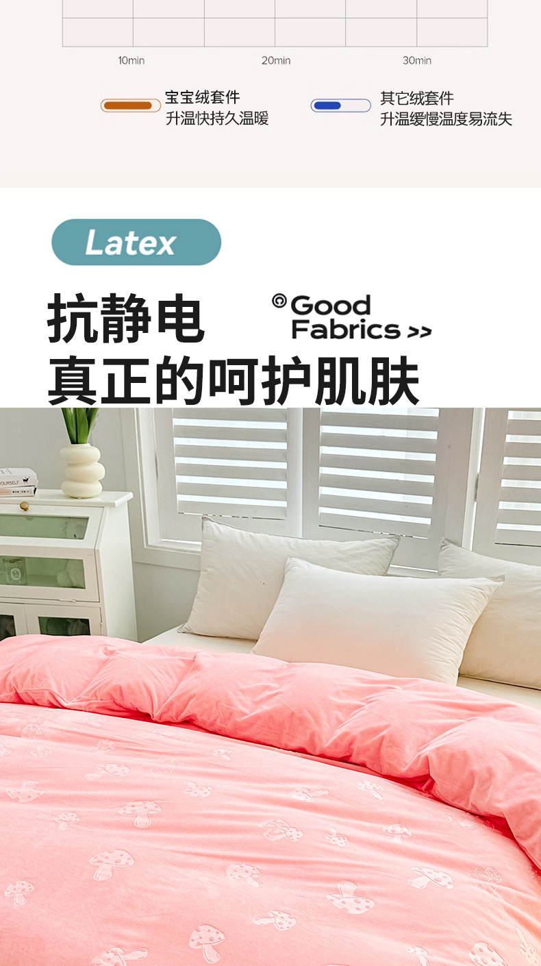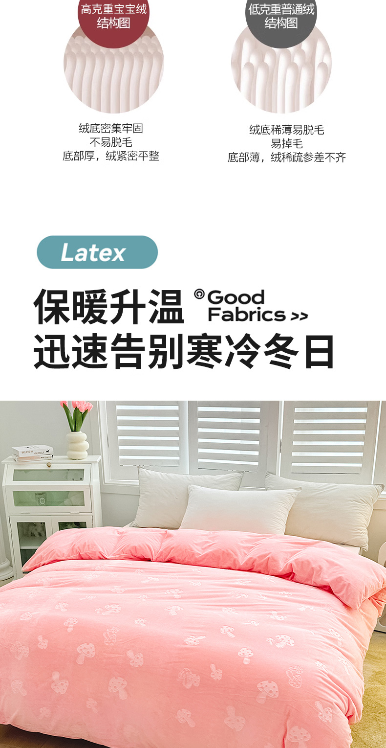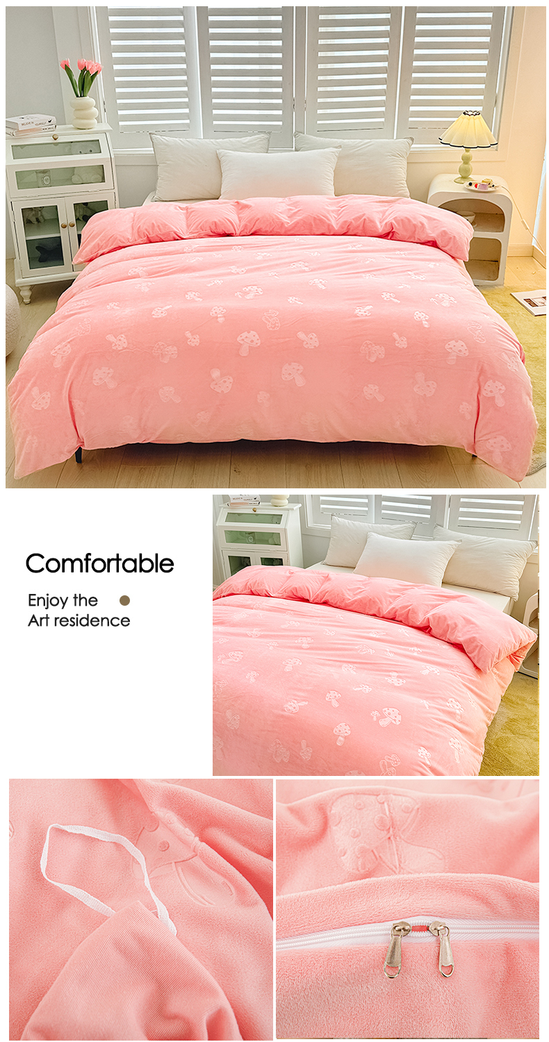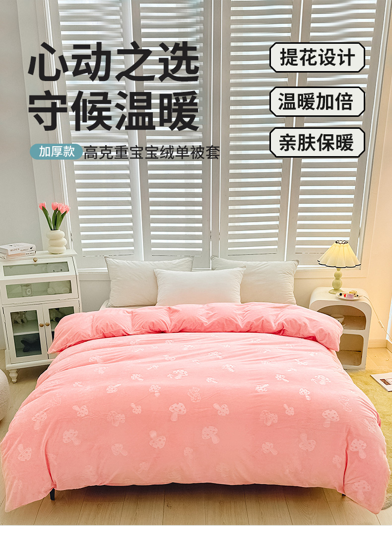 • 91家纺网 家纺一手货源 找家纺 新款全消光210克婴儿绒宝宝绒压花单被套定做定制尺寸 宝宝绒-粉蘑菇