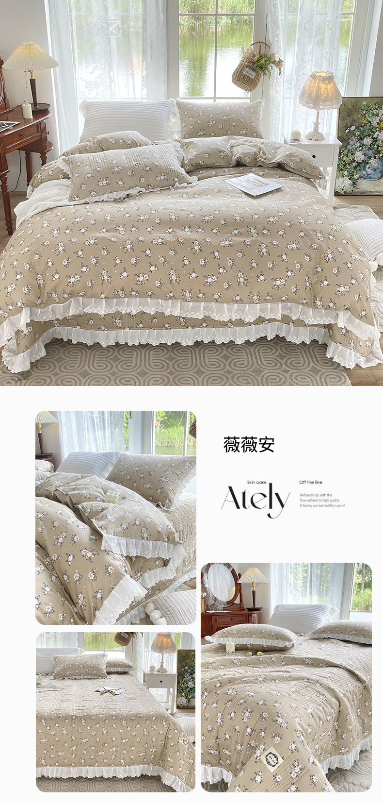 当前位置: 91家纺网 > 商品网购 > 床品套件 > 四件套 > 全棉普通四件套 > 菊上家纺 2023秋冬新品法式花边全棉床盖四件套 薇薇安