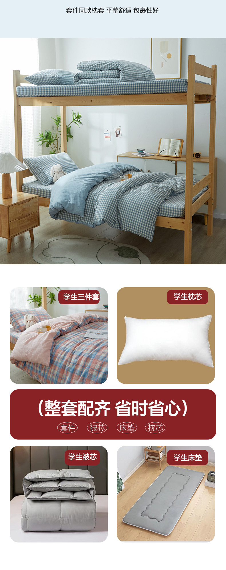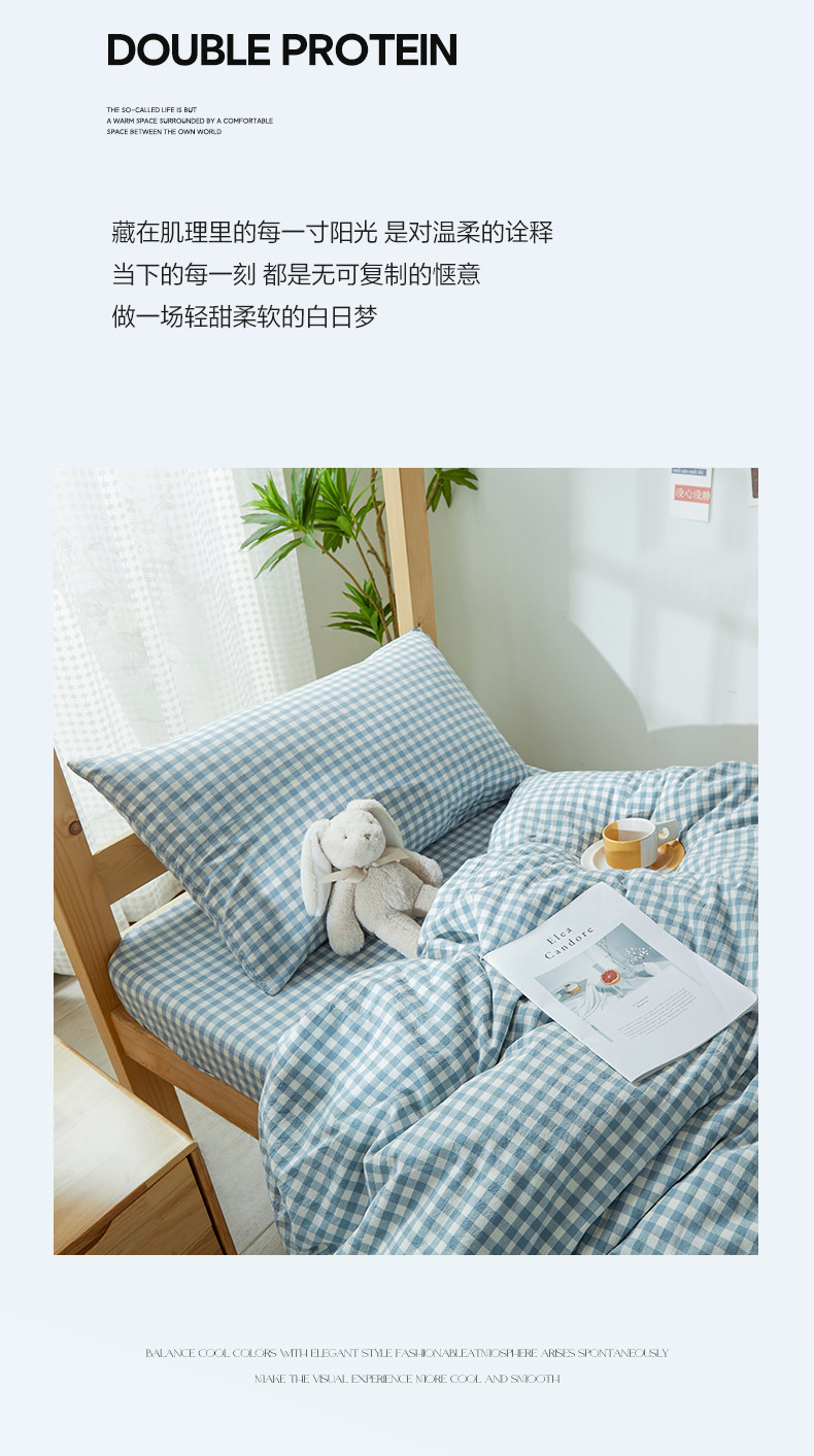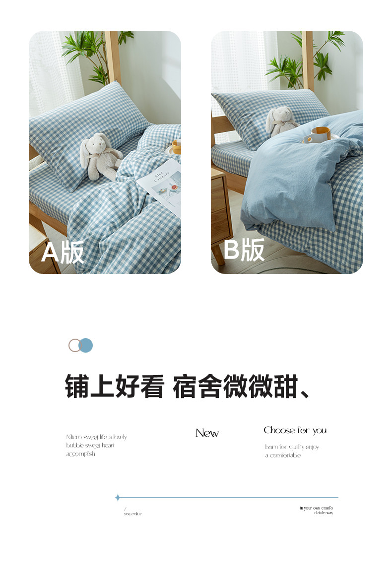当前位置: 91家纺网 > 商品网购 > 床品套件 > 三件套 > 九沐良品 新款A类全棉水洗棉宿舍三件套 浅蓝小格