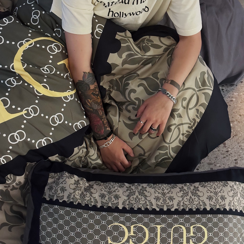 (总)色鬼布艺高端家居主号 2025新款轻奢亲肤纯棉数码印花网红热款四件套,豹纹香,白金V,白香花,大H,黑白迪,黑白V,灰迪,咖古,克莱因,慕斯小姐,山茶花,星空