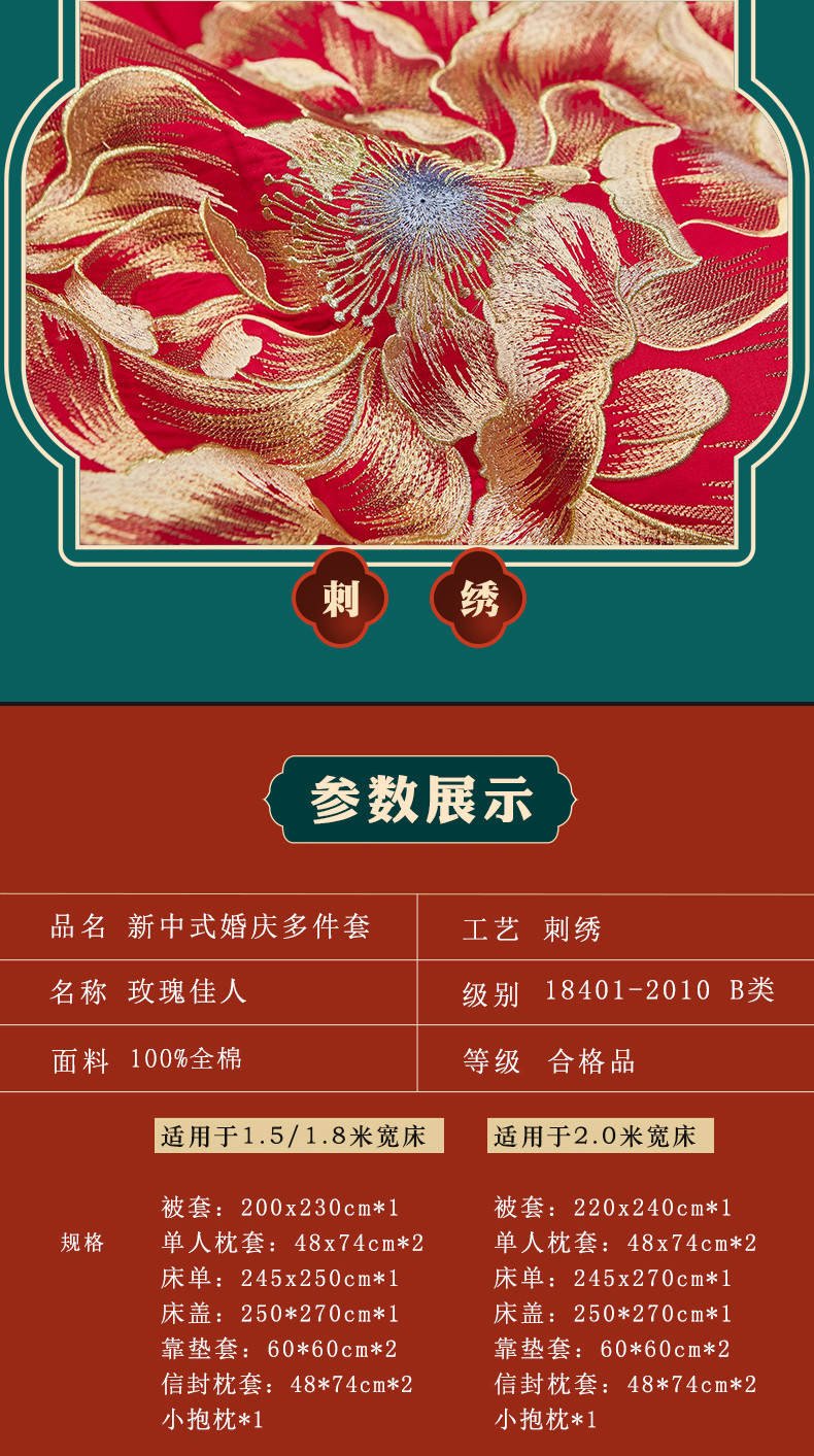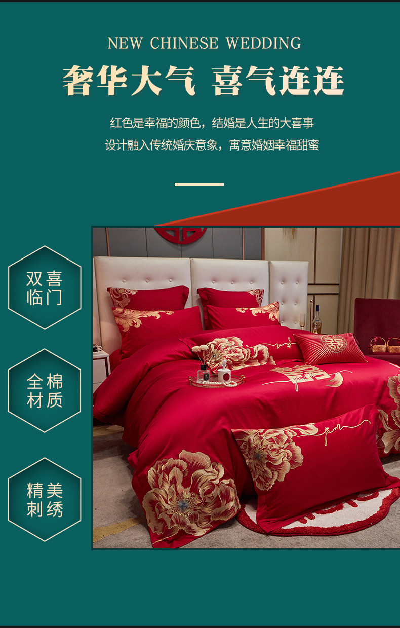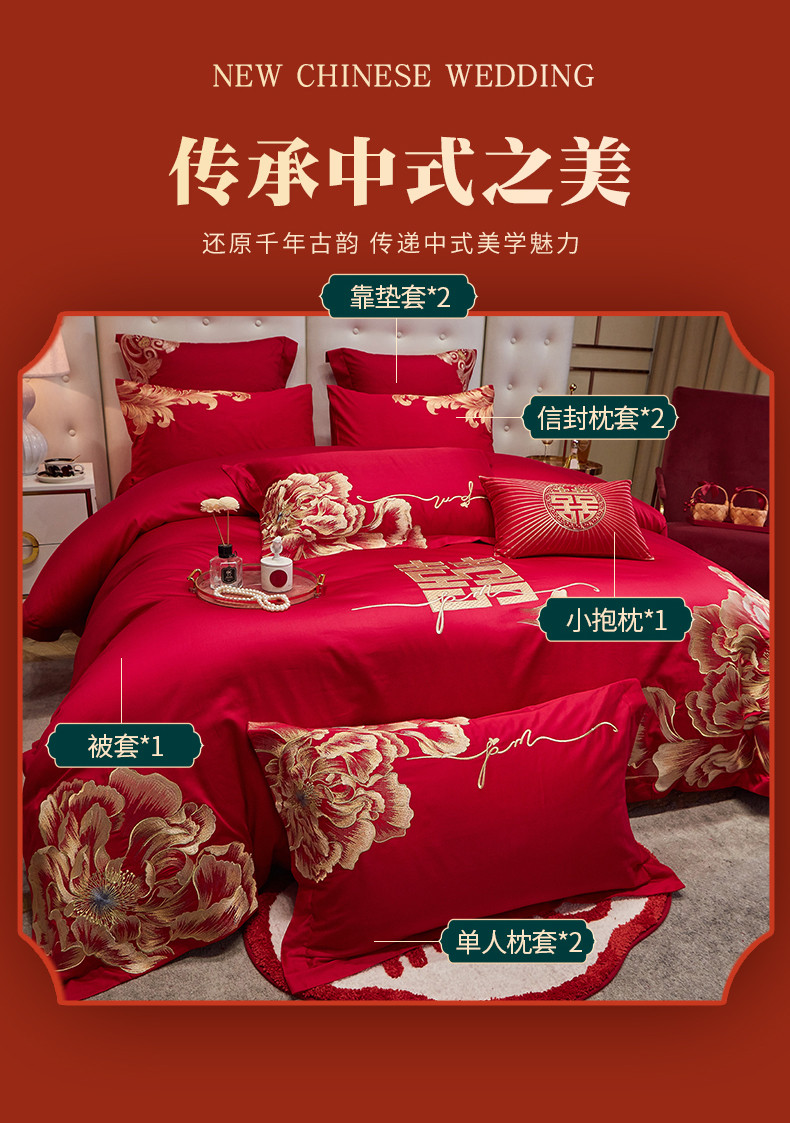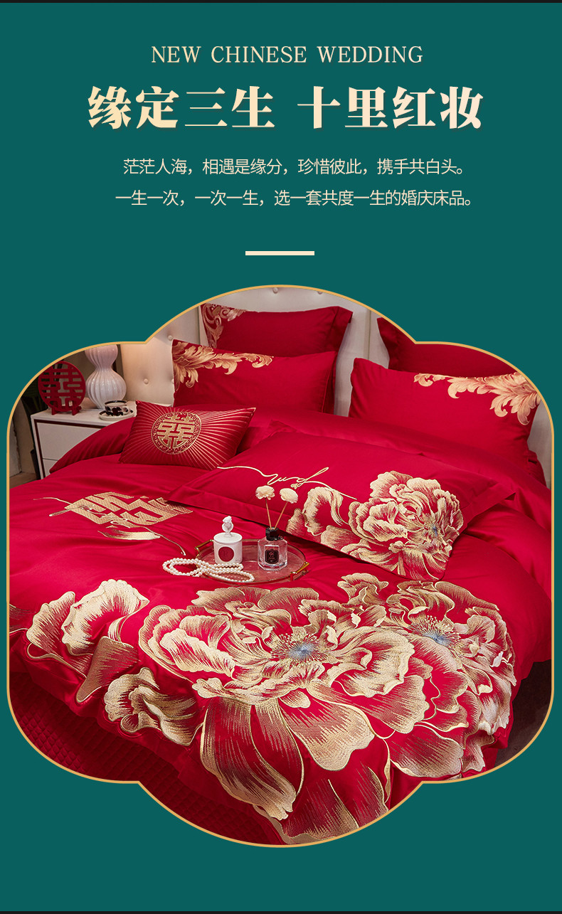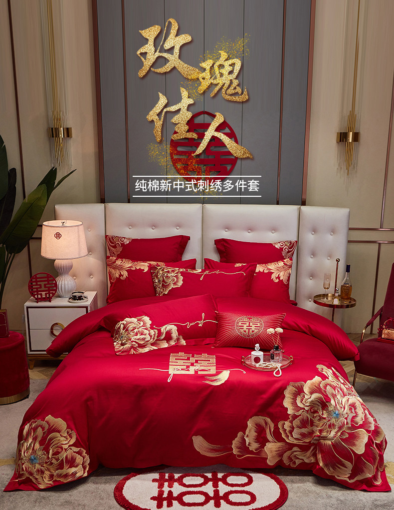 当前位置: 91家纺网 > 商品网购 > 床品套件 > 多件套 > 多件套 > 宏羽纺 2024新款纯棉新中式刺绣婚庆多件套 玫瑰佳人