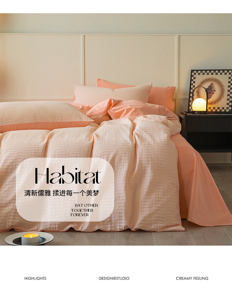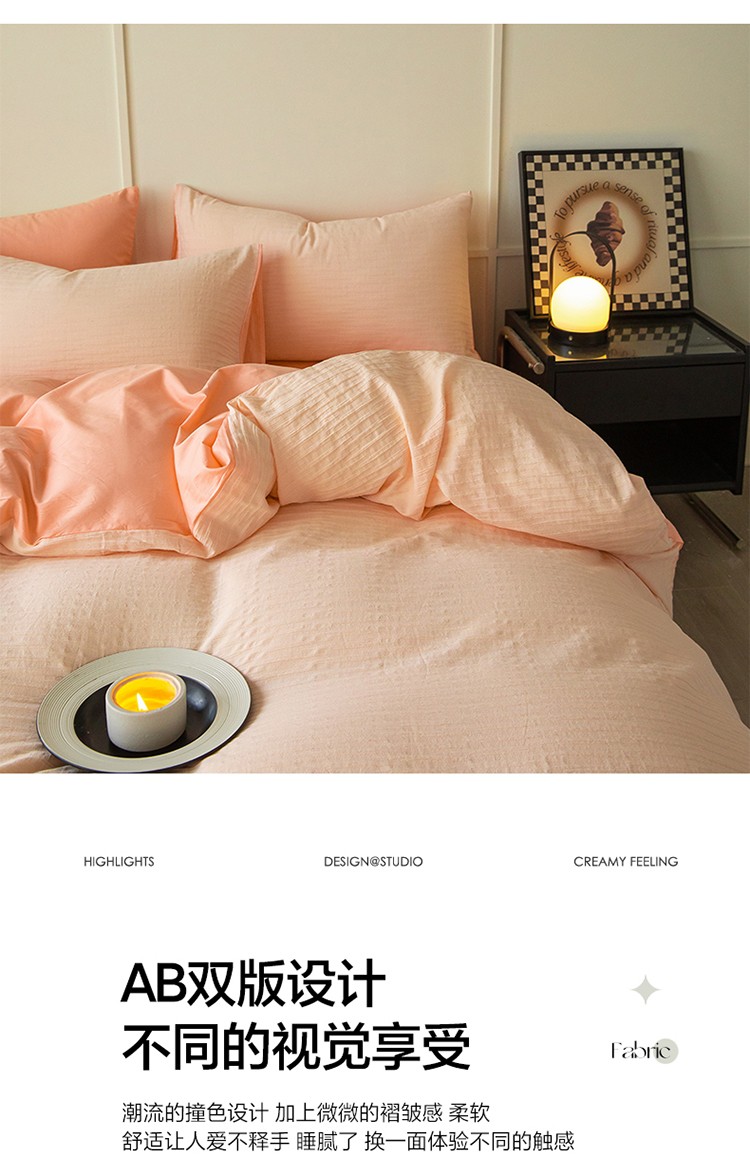 雅居纺2023新款系全棉泡泡纱四件套 泡泡纱-苏桃粉