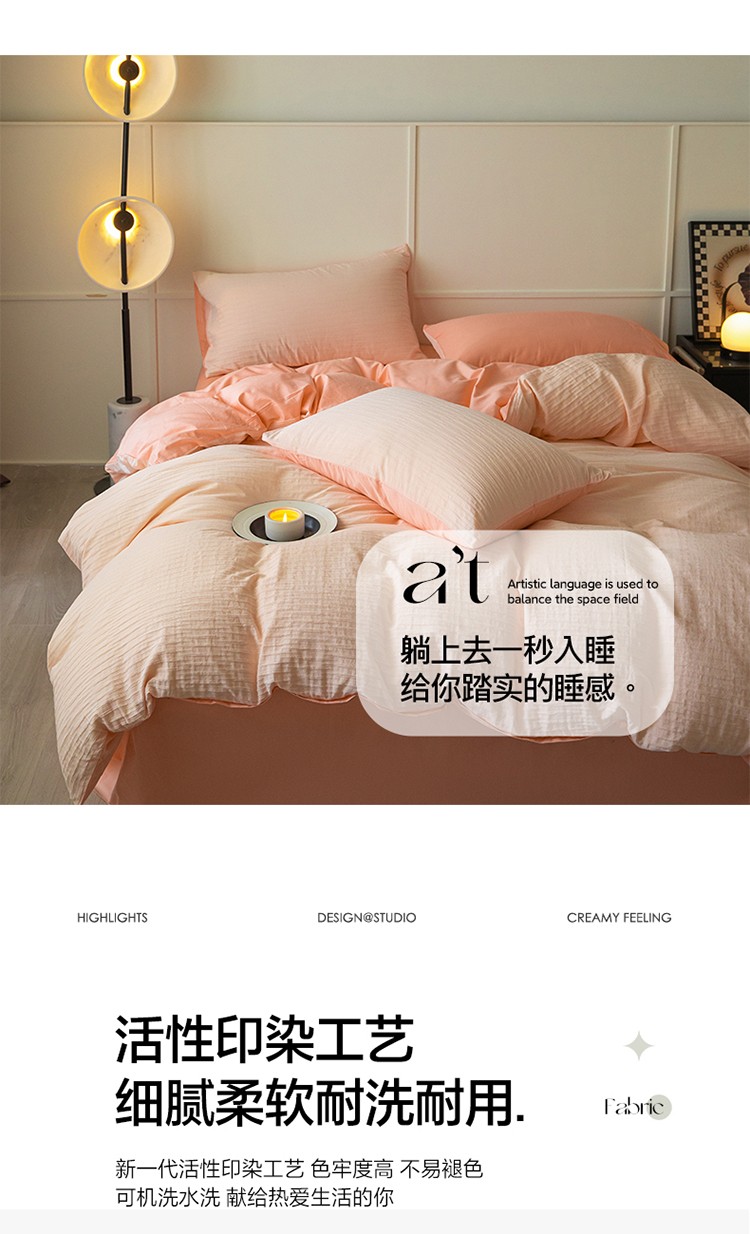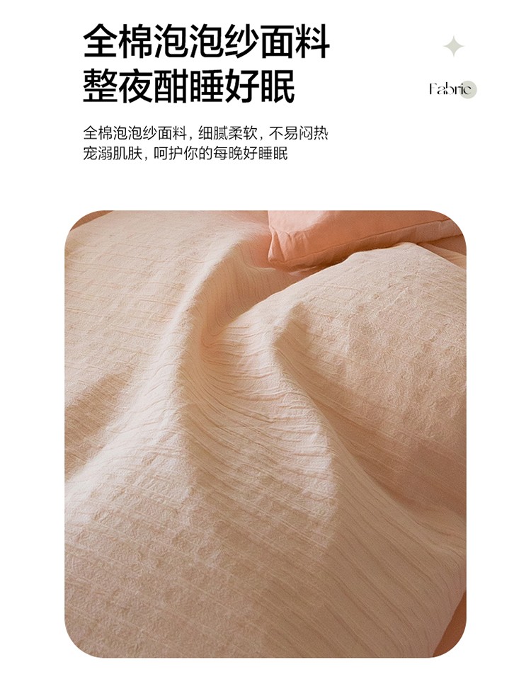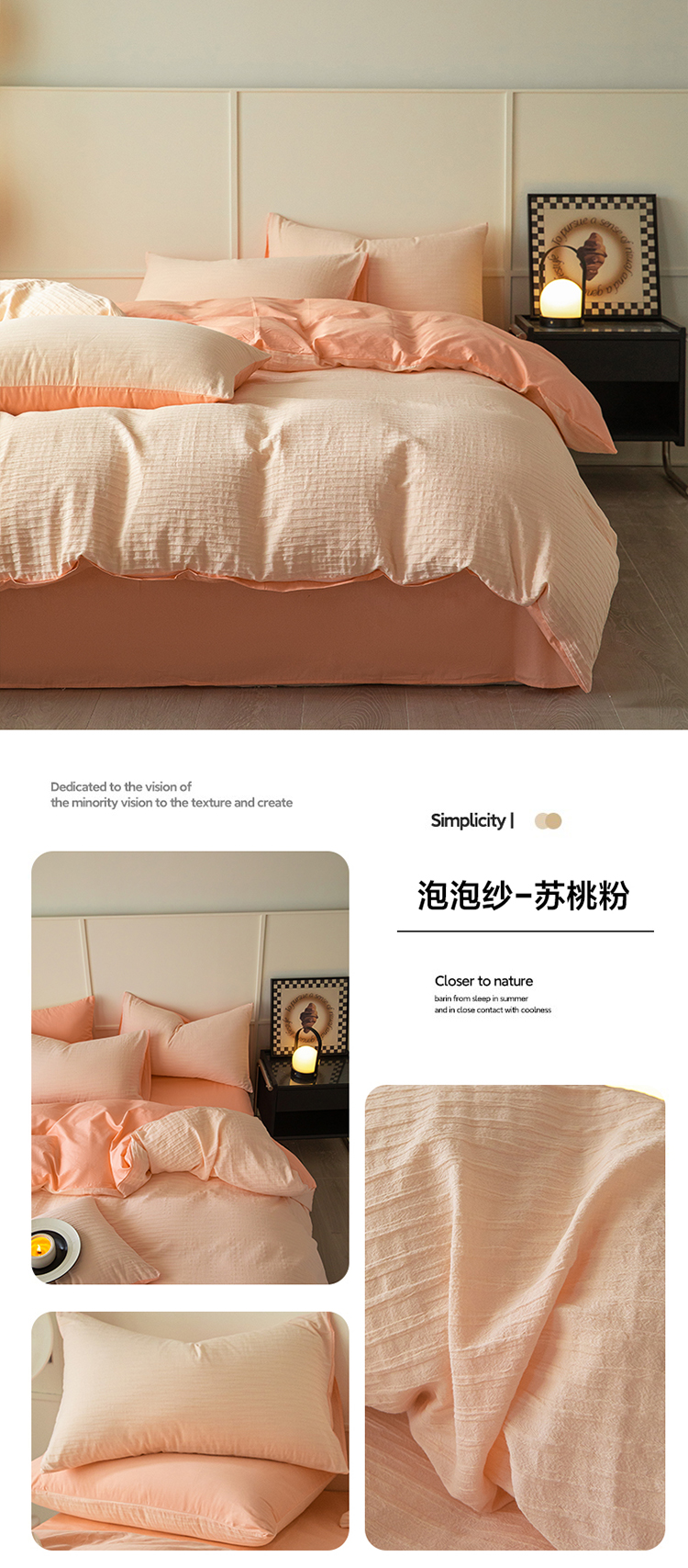 商品名称:雅居纺2023新款系全棉泡泡纱四件套 泡泡纱-苏桃粉