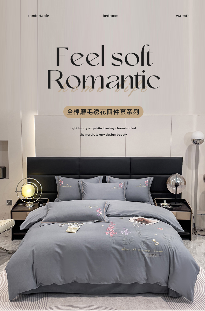 (总)云锦2023秋冬新品全棉磨毛绣花四件套缦芯,缦芯粉,缦芯灰,缦芯橘,缦芯蓝,缦芯紫
