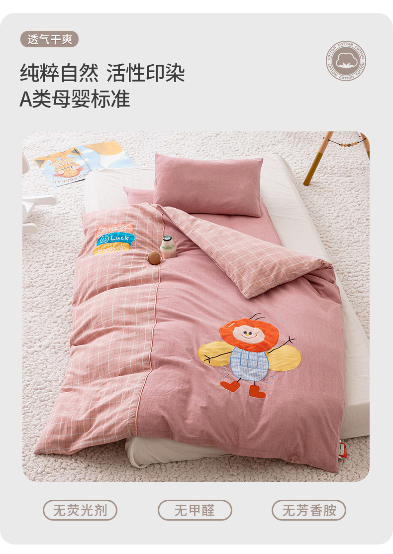 当前位置: 91家纺网 > 商品网购 > 床品套件 > 三件套 > 喜多兔儿童家纺 2023新款小心动幼儿园三件套 豆沙色心动小蜜蜂