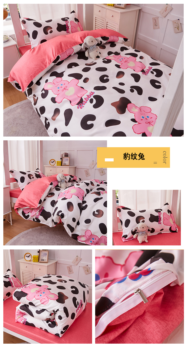 商品名称:2023新款亲肤棉美棉芦荟棉三件套美棉(8月)学生宿舍床 豹纹兔