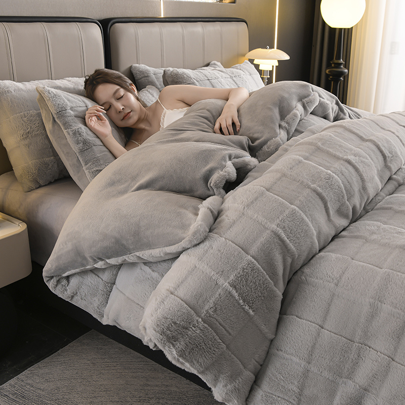 商品名称:爱洛 2023新款纯色高克重兔毛绒四件套 典雅-灰
