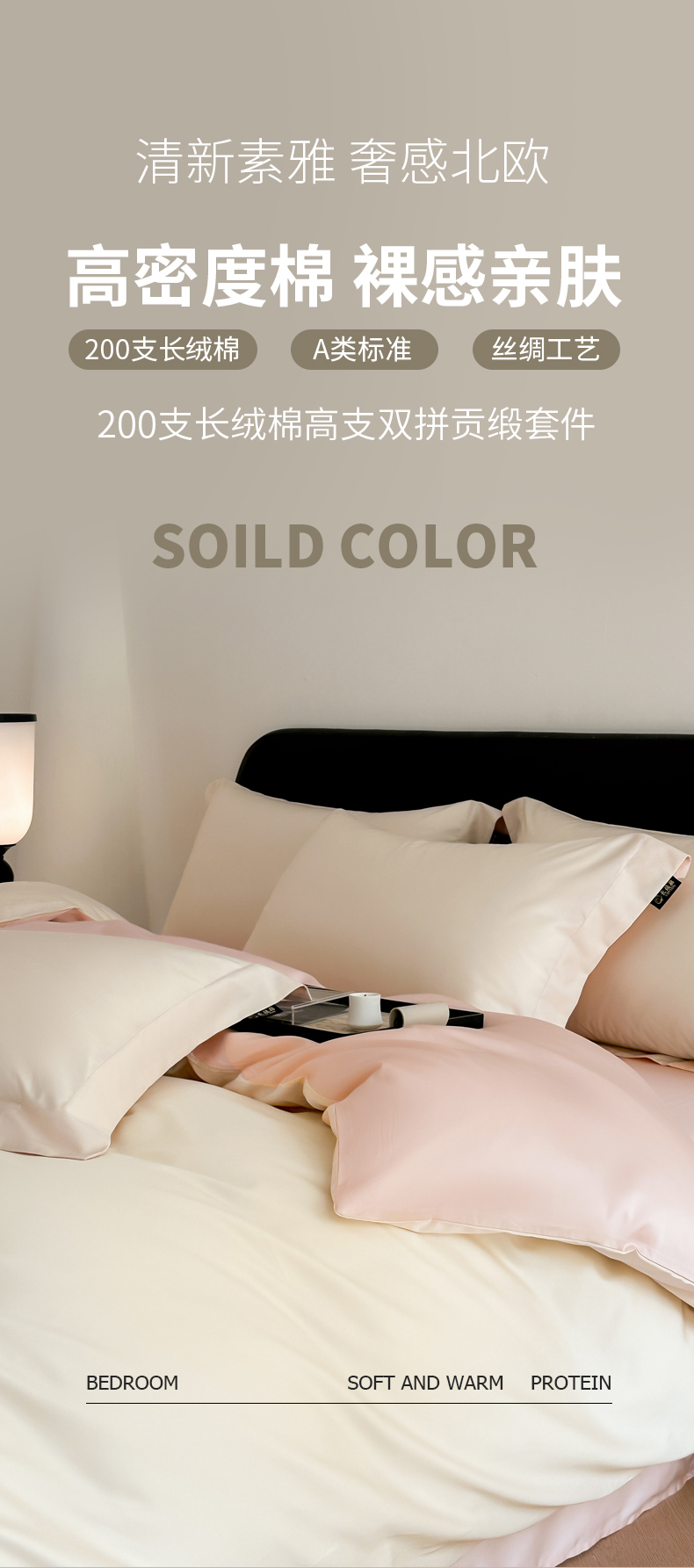 商品名称:(总)618家纺2023新款A类50S100支长绒棉全棉双拼炫拼四件套