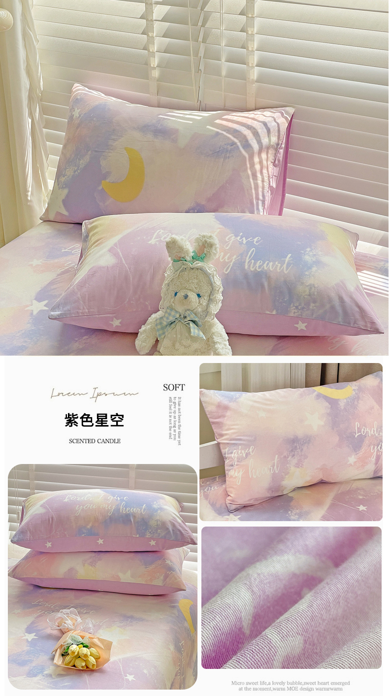 商品名称:名兮家居 2023新款全棉简约印花枕套 紫色星空