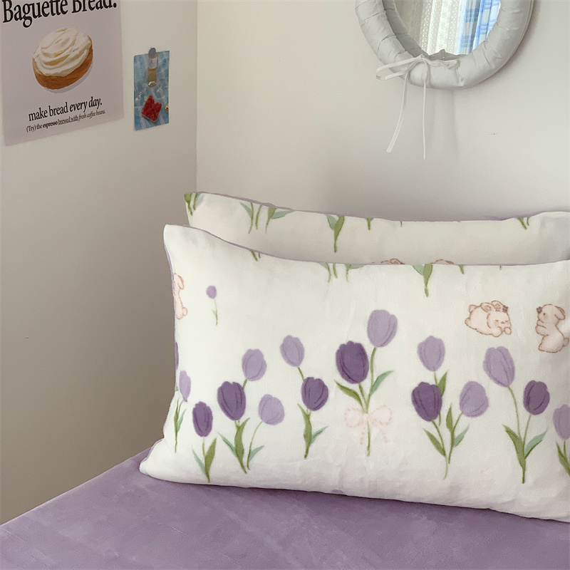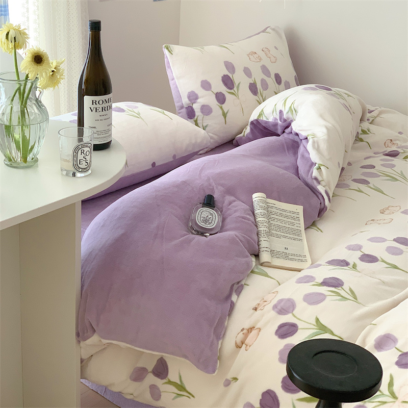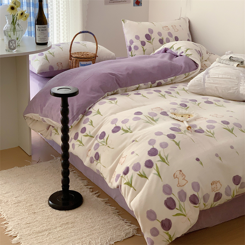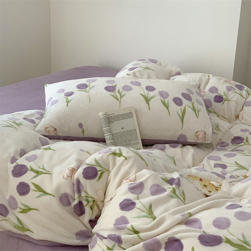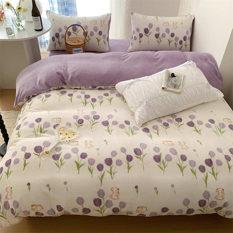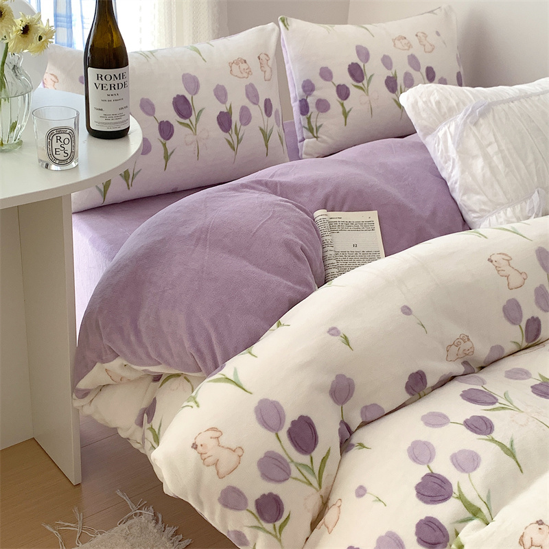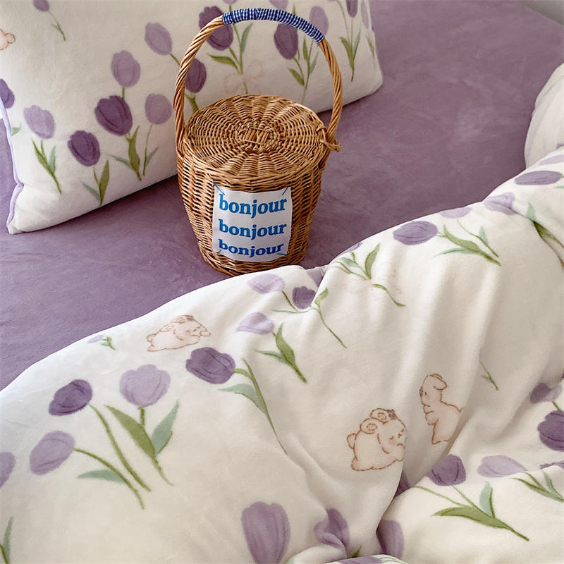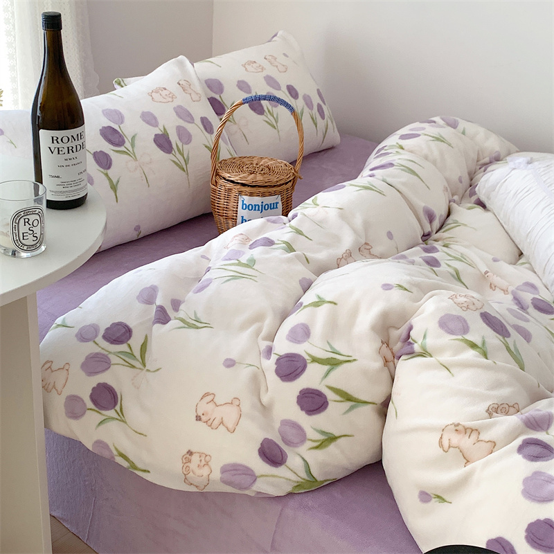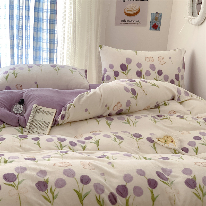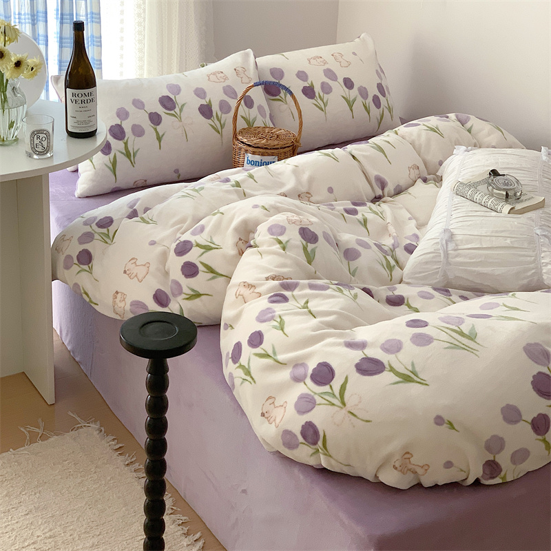 美乐迪家纺 2023秋冬新款保暖牛奶绒四件套 郁金香兔兔
