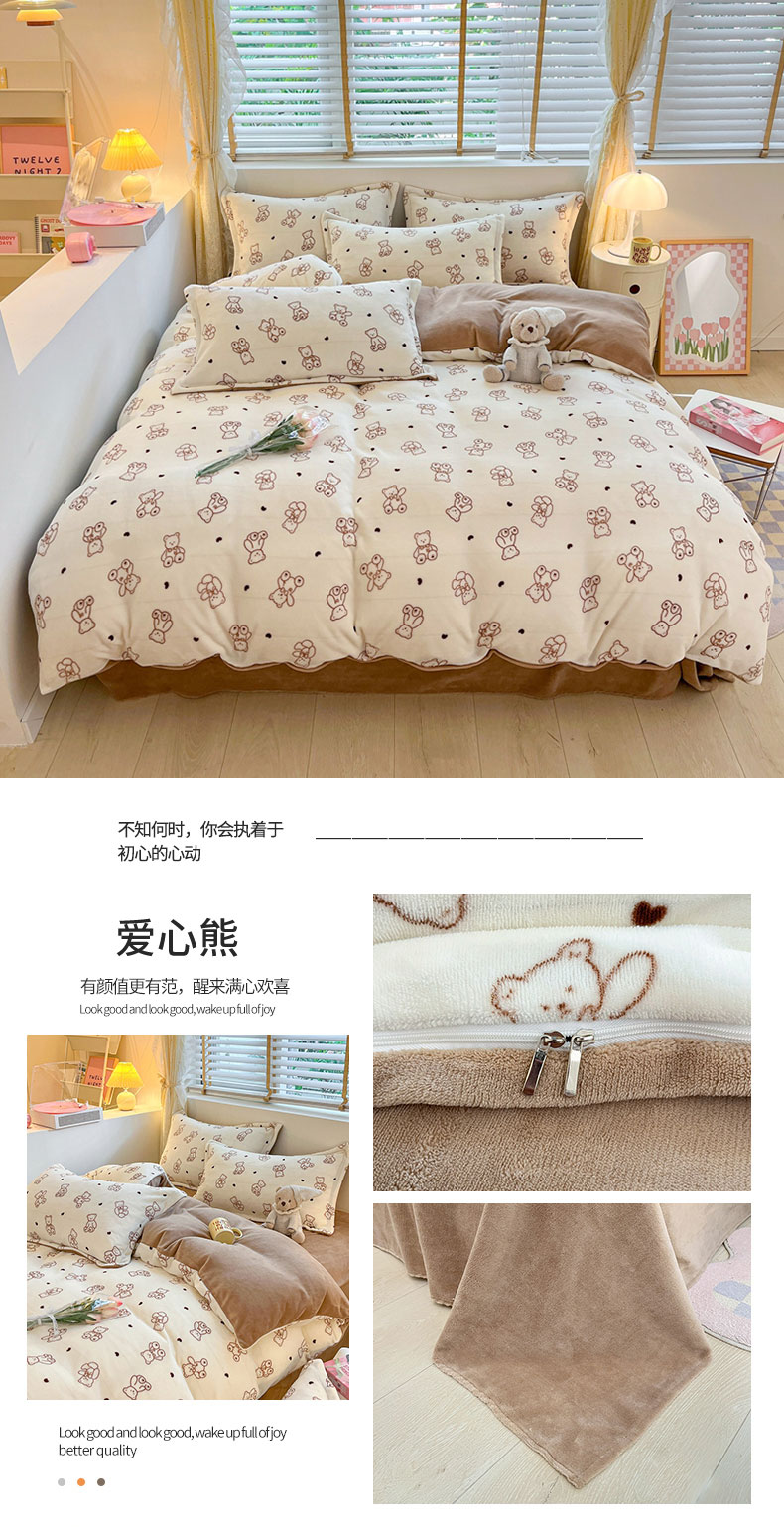商品名称:康纳利 2023新款印花牛奶绒单被套 爱心熊
