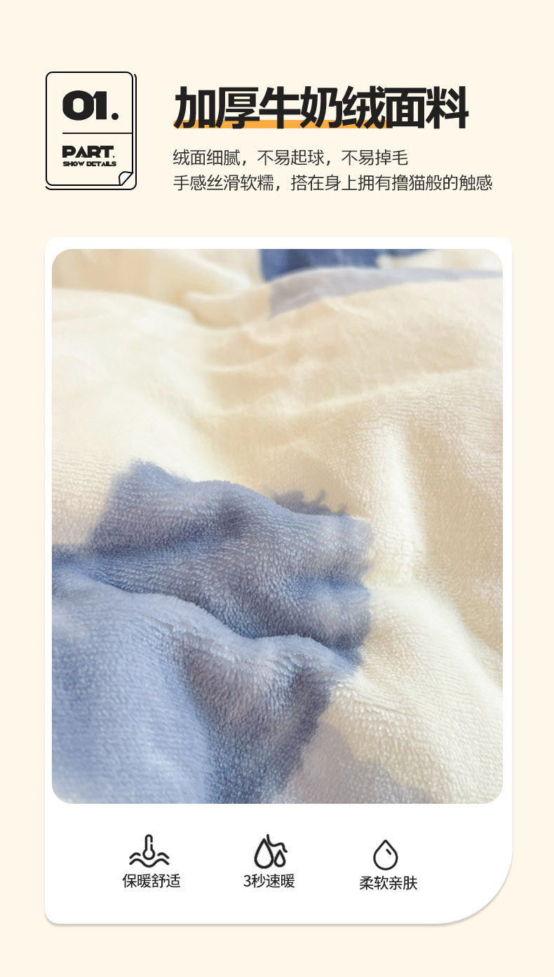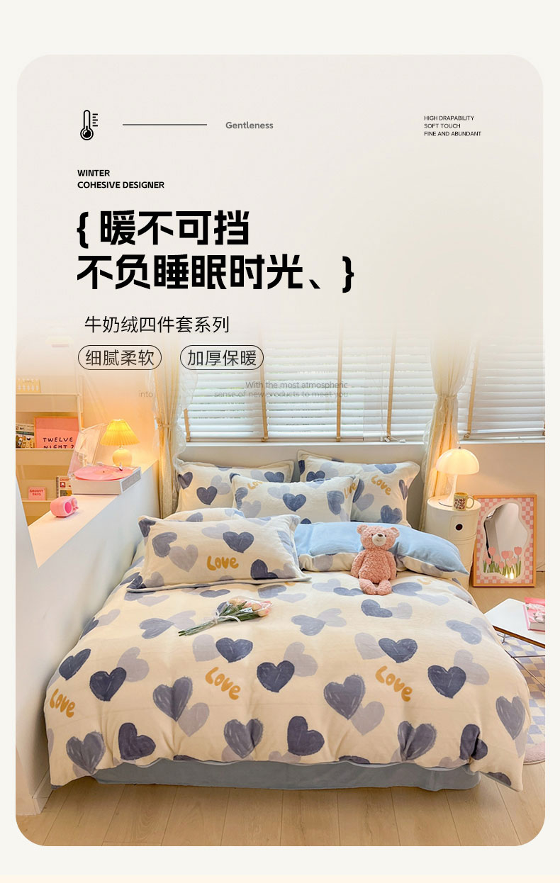 康纳利 2023新款印花牛奶绒单被套 怦然心动