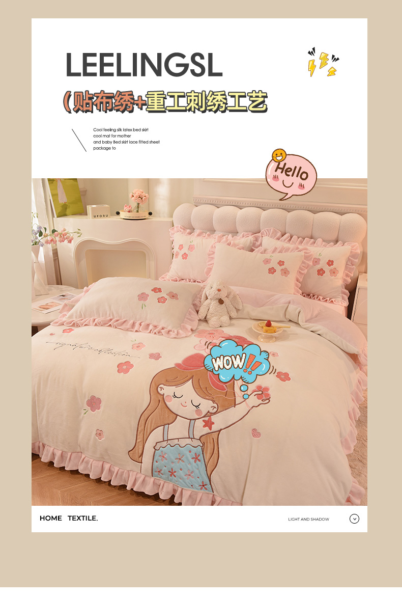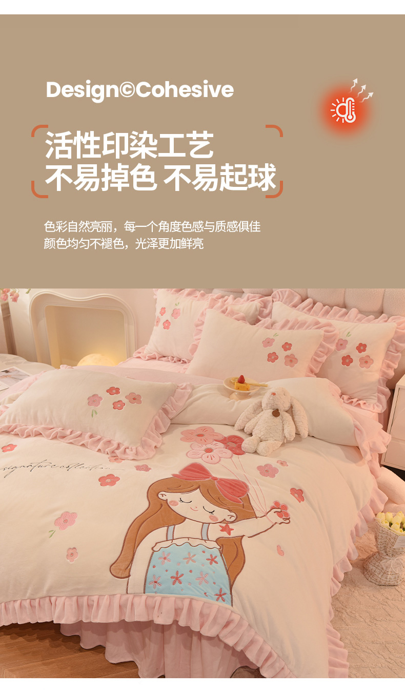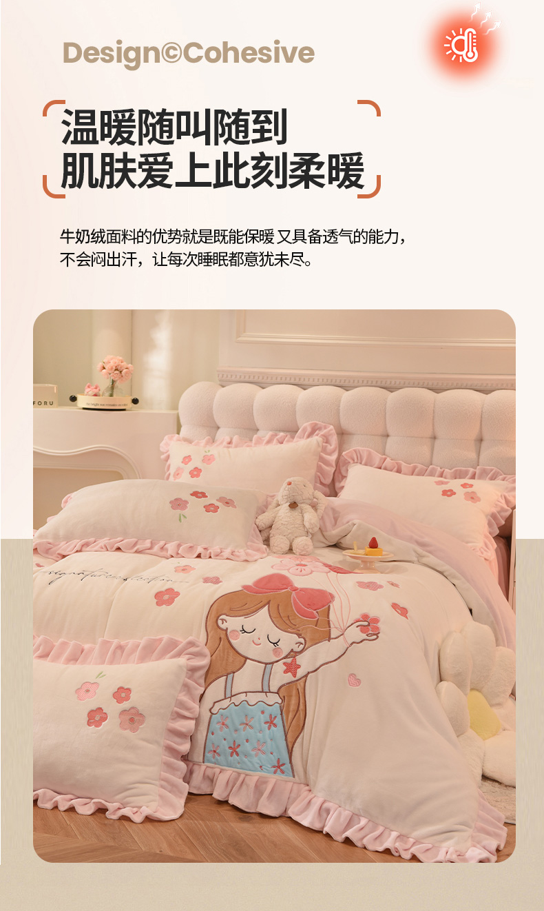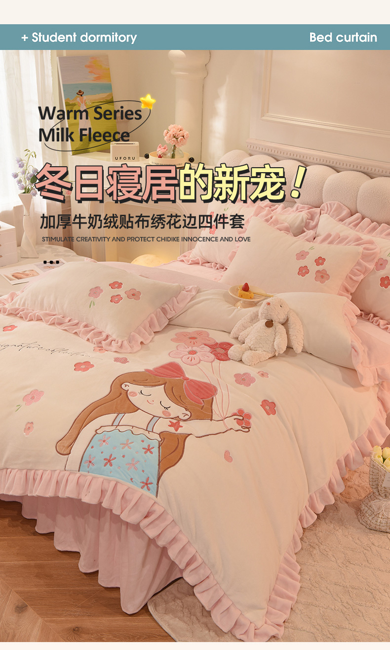 当前位置: 91家纺网 > 商品网购 > 床品套件 > 四件套 > 牛奶绒四件套 > 丝印良品 2023新款高档贴布绣甜心公主牛奶绒四件套 甜心公主-粉白